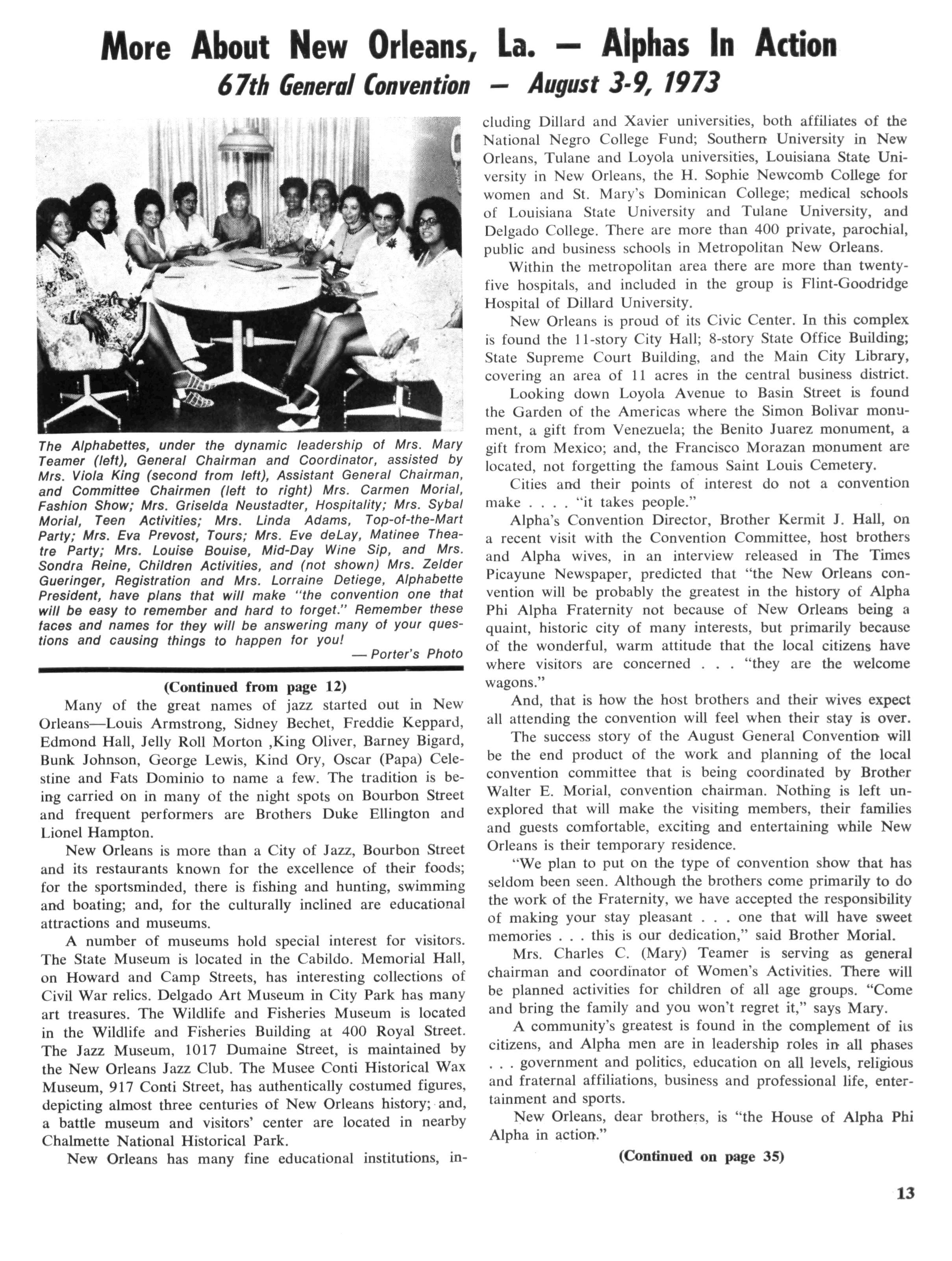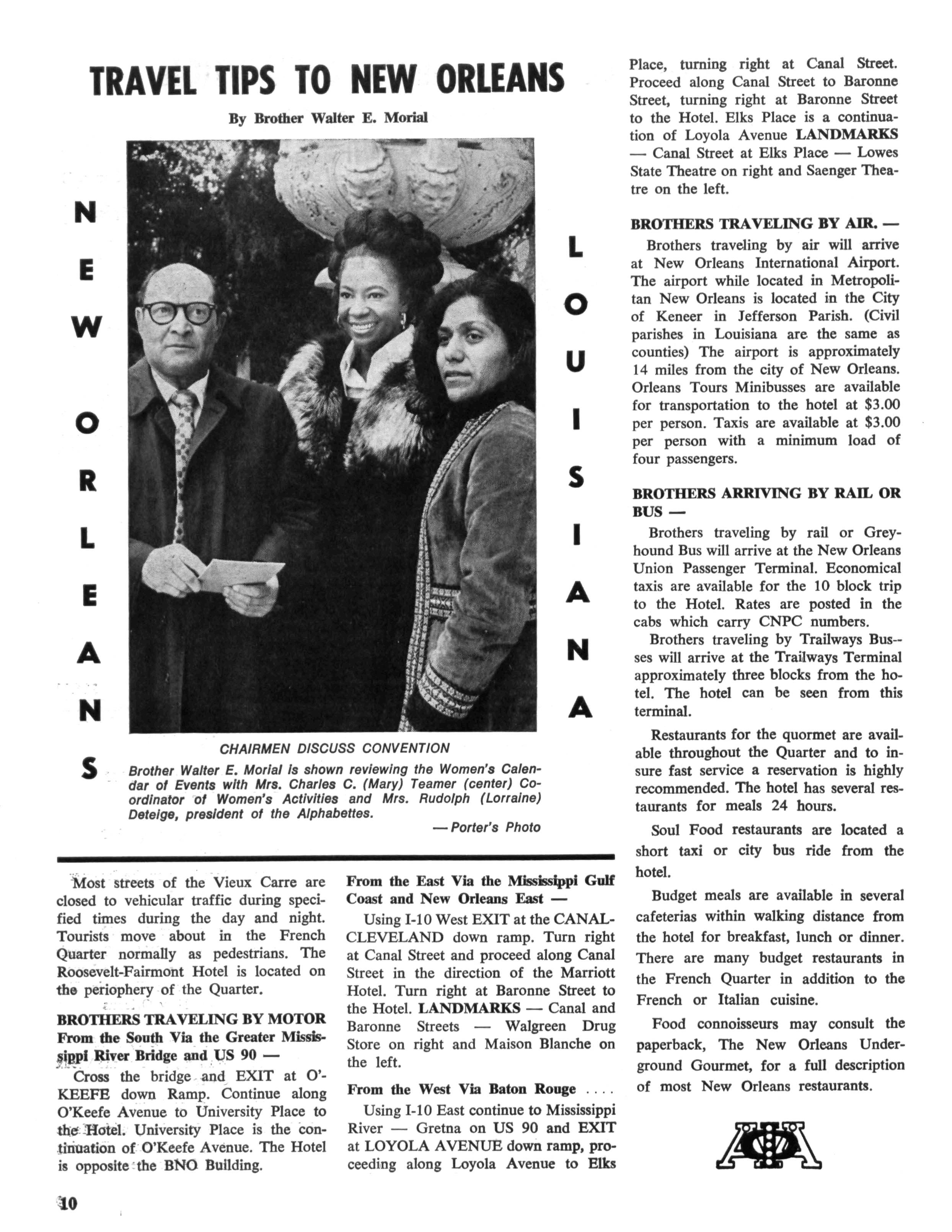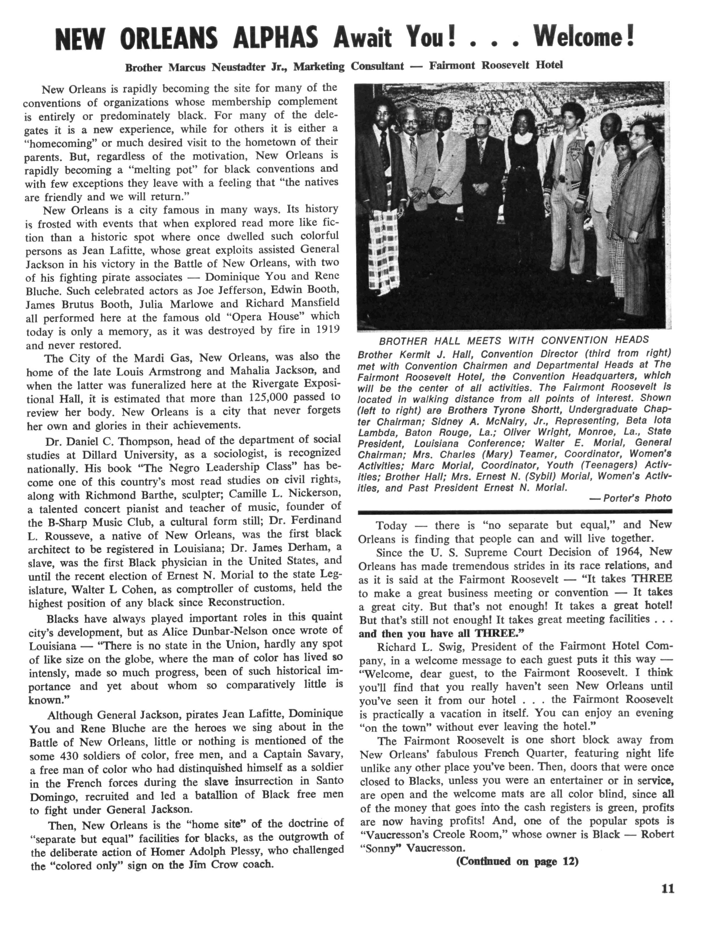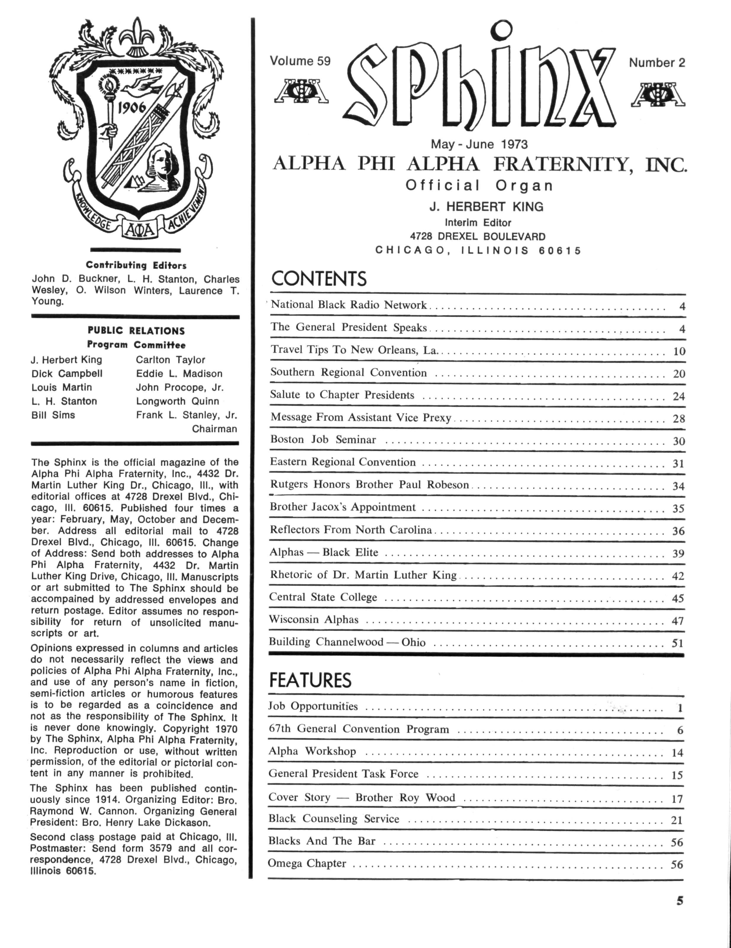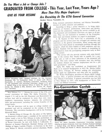 J Herbert King of Chicago, 111., the editor of The Sphinx, the Fraternity's official organ, a member of the national committee, made a visit to New Orleans to make preliminary arrangements for staging and coordinating the program While at Xavier University, he met with Emile J LaBranche, Jr., Director of Student Placement; Rudolph Detiege and James Phillips of Sigma Lambda Chapter, co-chairmen in the local area; Walter E. Morial, convention general chairman; Walter