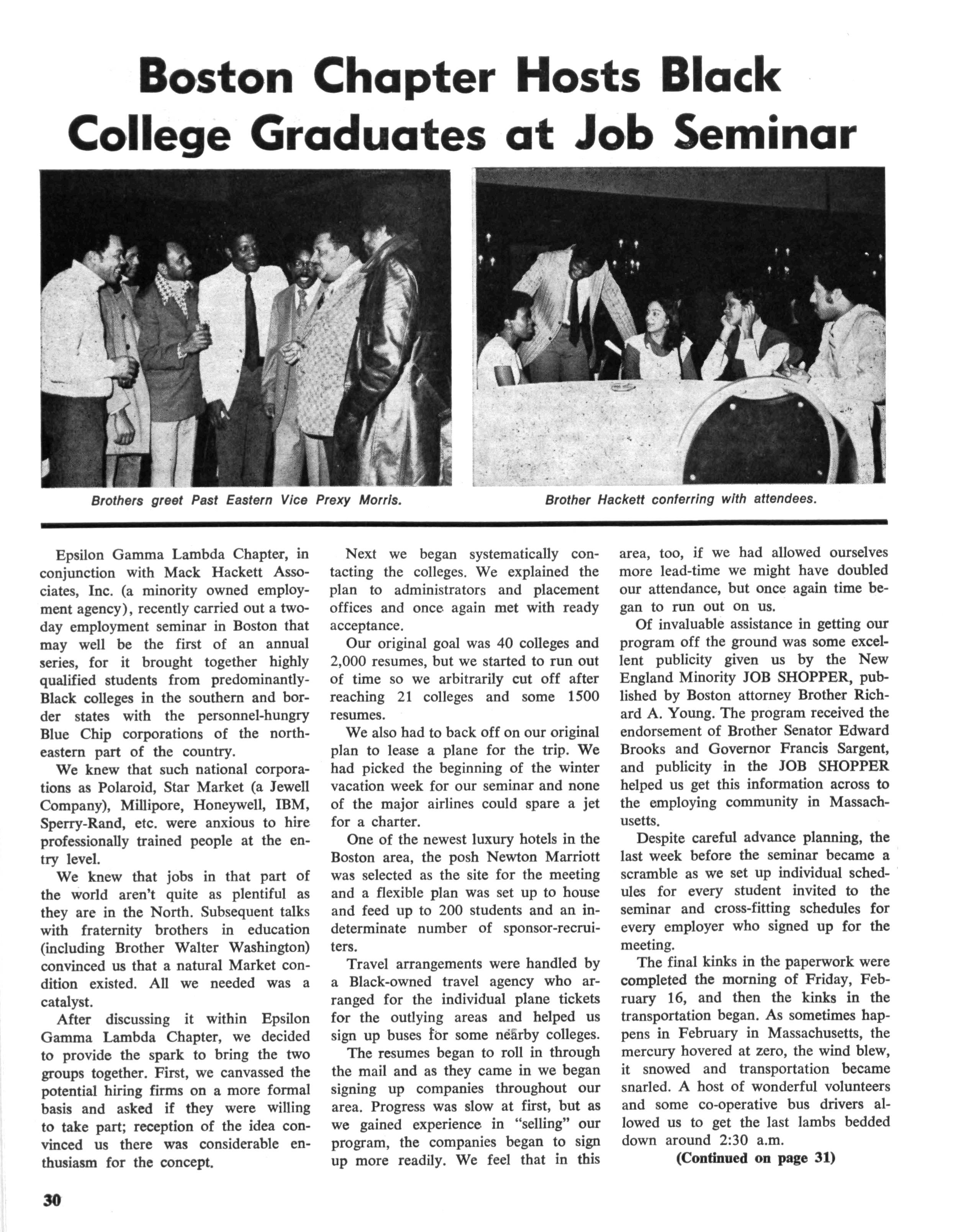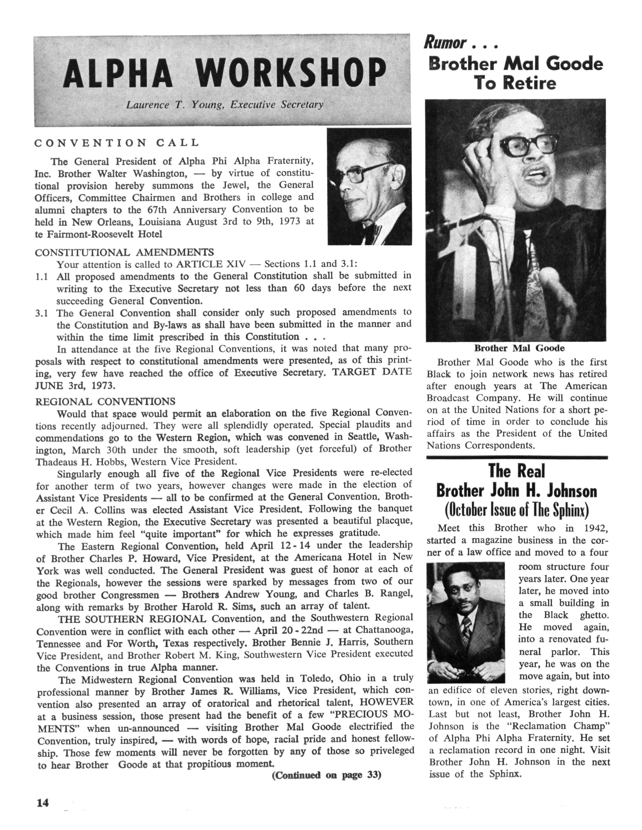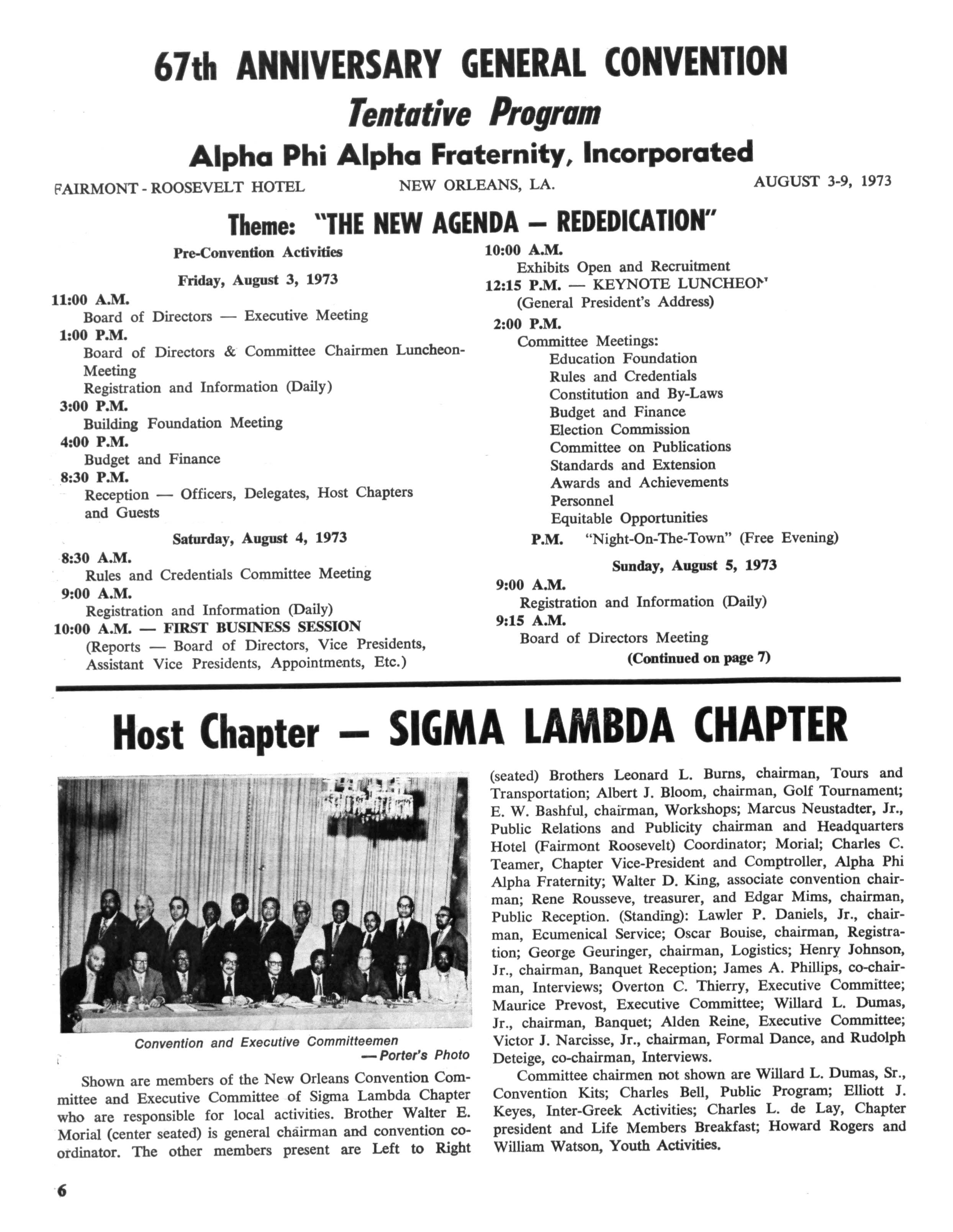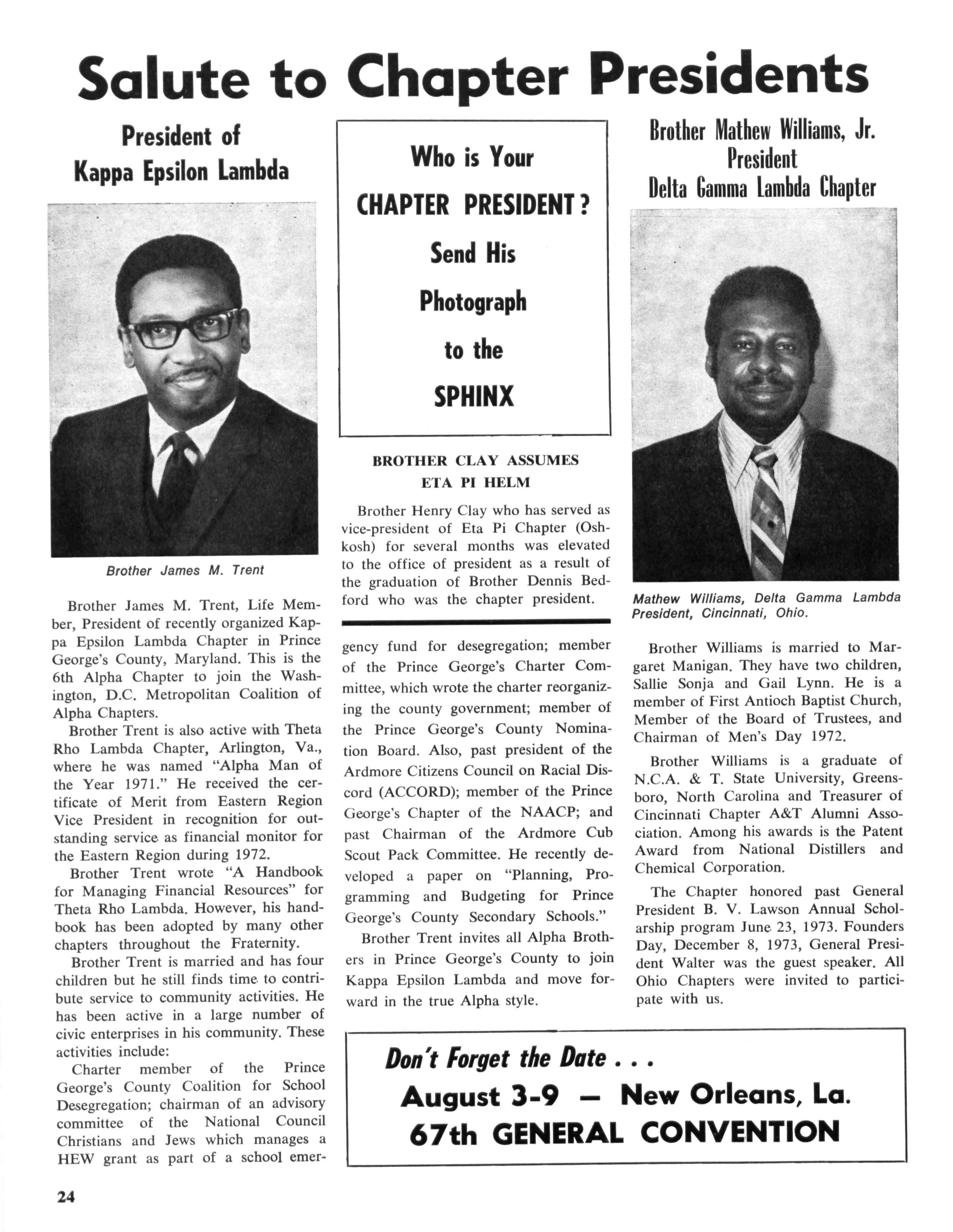 J Herbert King of Chicago, 111., the editor of The Sphinx, the Fraternity's official organ, a member of the national committee, made a visit to New Orleans to make preliminary arrangements for staging and coordinating the program While at Xavier University, he met with Emile J LaBranche, Jr., Director of Student Placement; Rudolph Detiege and James Phillips of Sigma Lambda Chapter, co-chairmen in the local area; Walter E. Morial, convention general chairman; Walter
