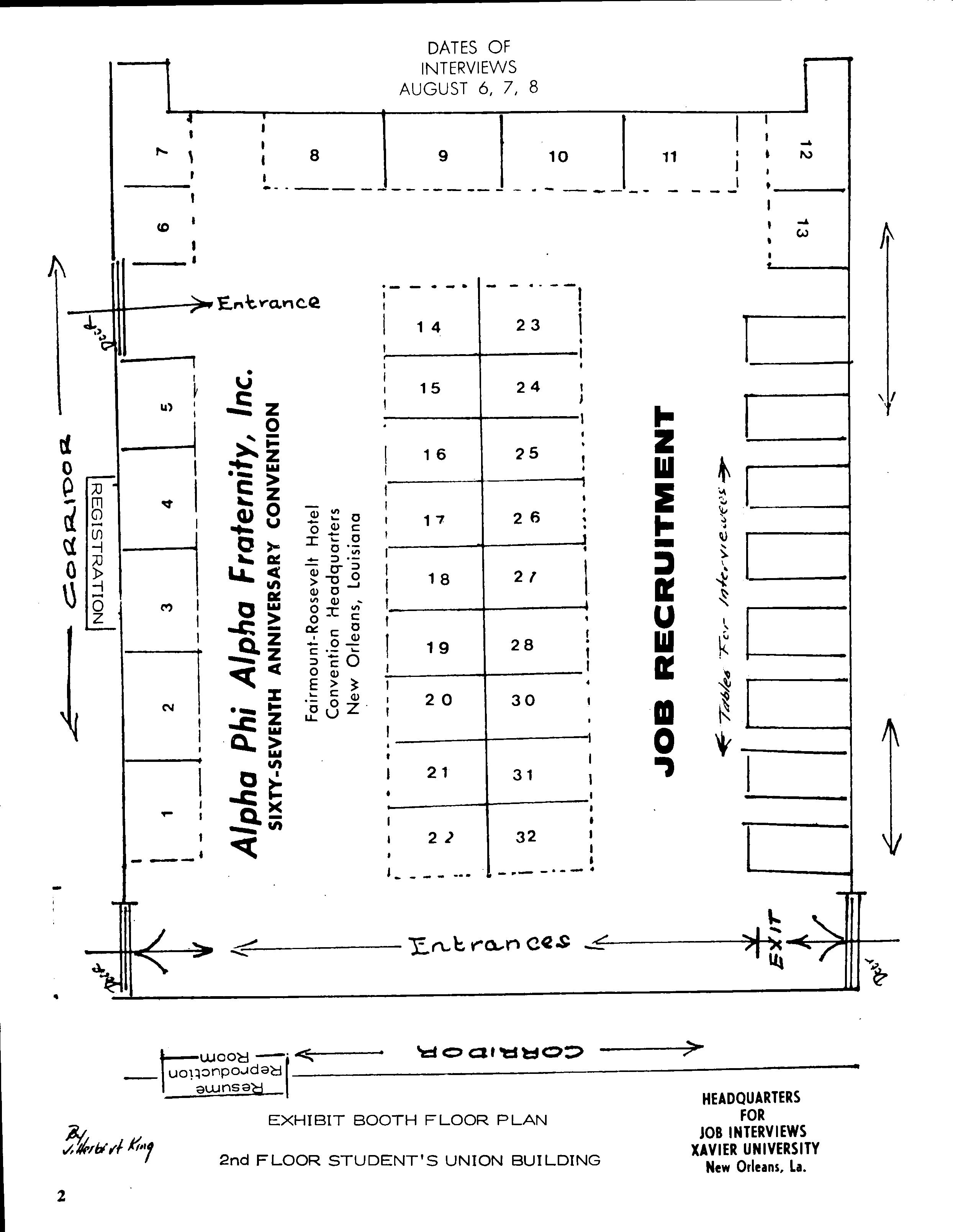 The job interviews will be open to college students and graduates and will be conducted on the campus of Xavier University The convention headquarters will be the Fairmont Roosevelt Hotel.