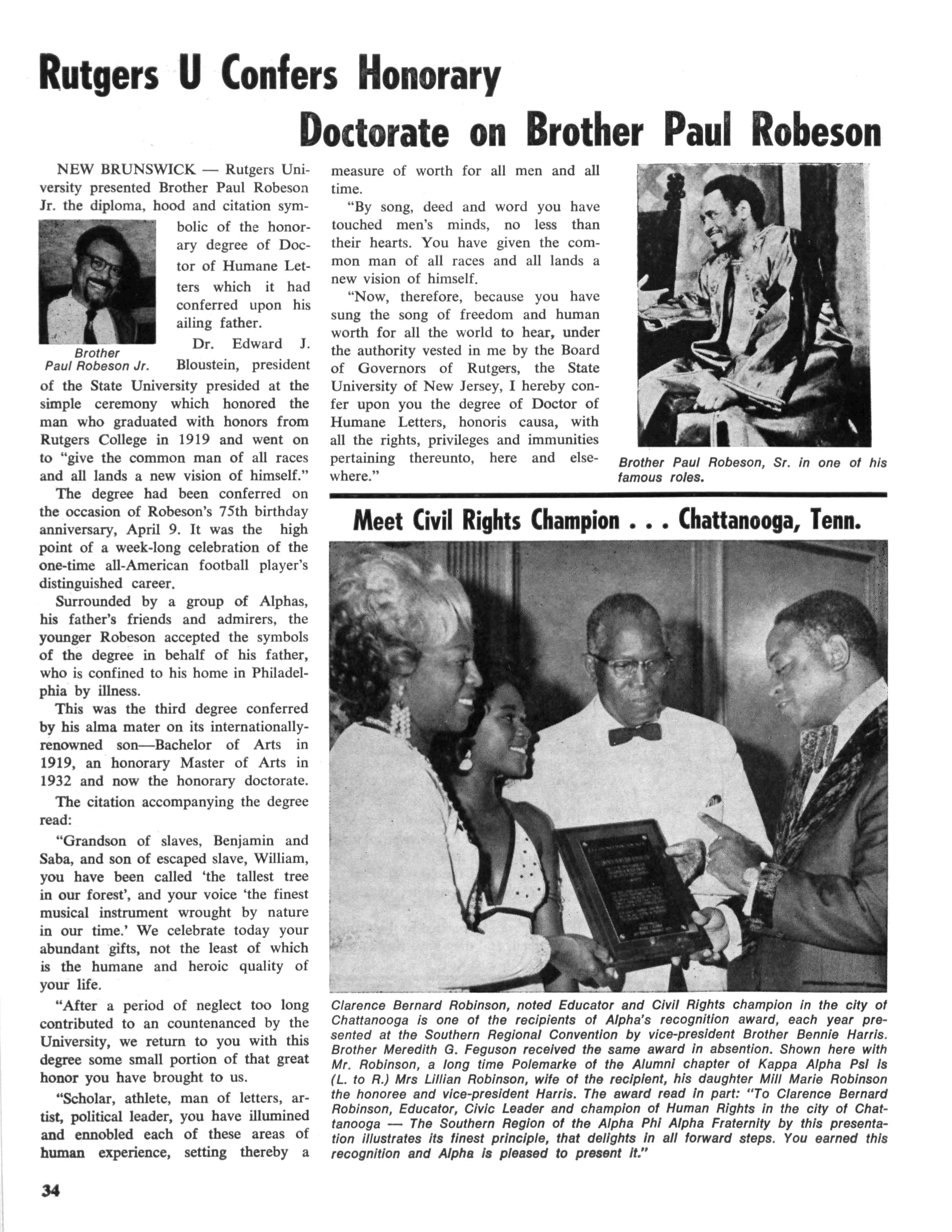 Brother Robinson, 1314 E Jefferson, served as president of the National Association of Teachers in Colored Schools in 1926, was one of its trustees from 1933 to 1938 and was associate editor of the NATCS bulletin