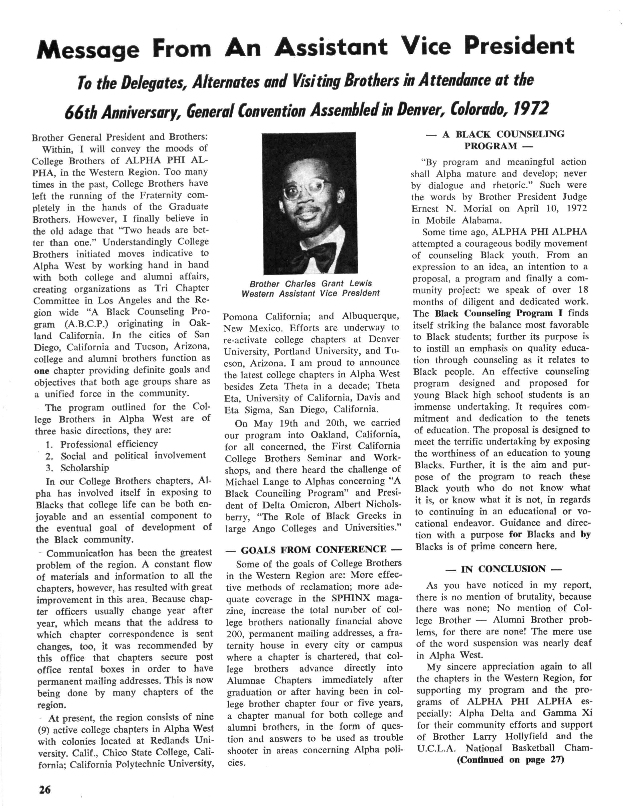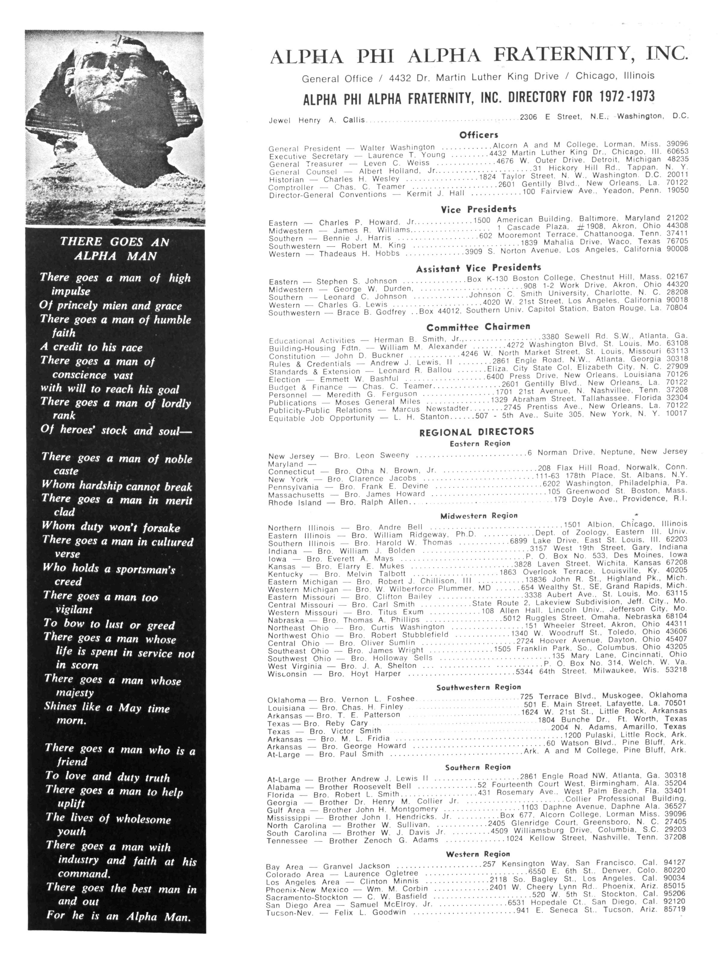 ALPHA PHI ALPHA FRATERNITY, INC. DIRECTORY FOR 1972-1973