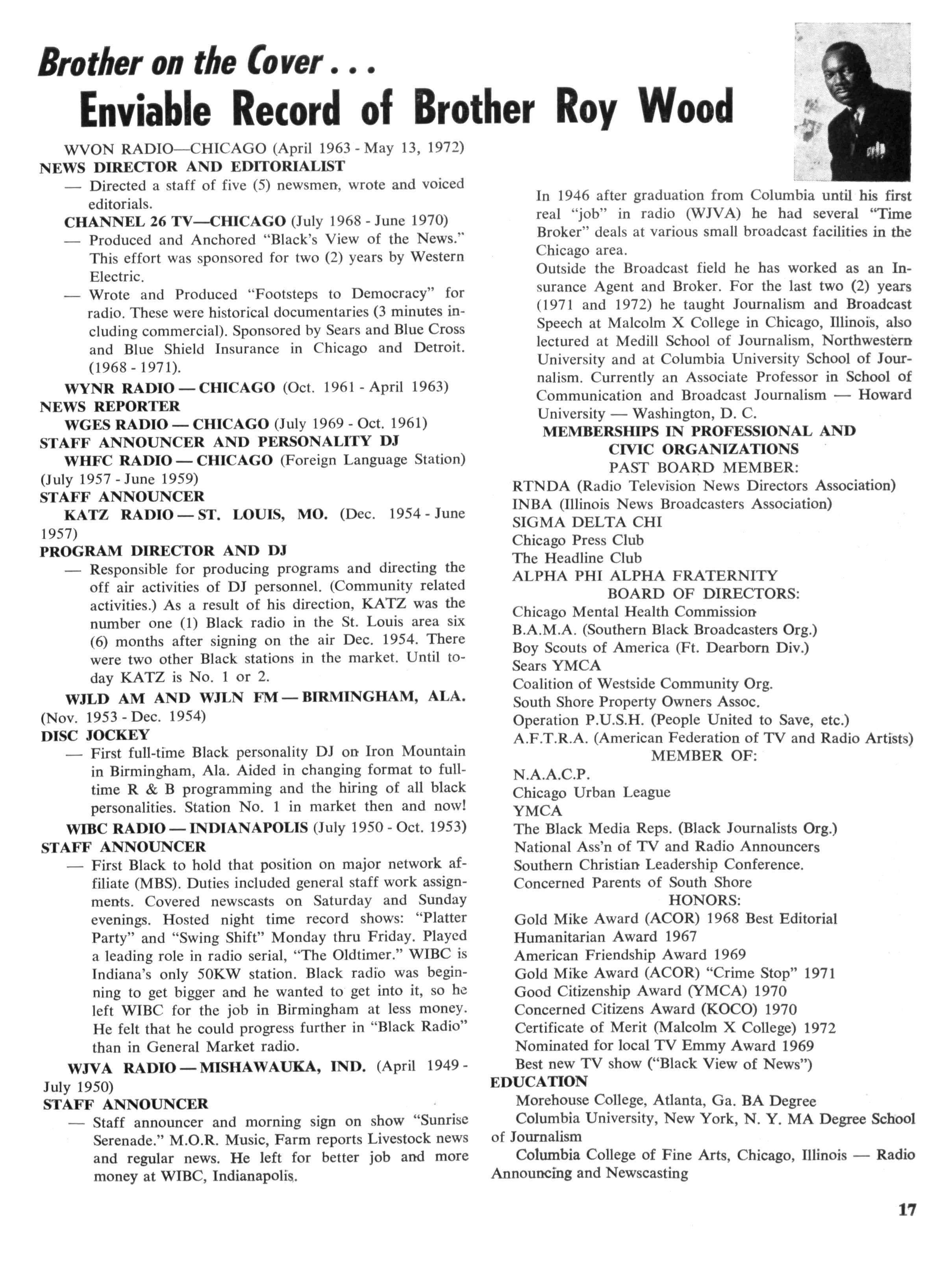 Brother Brown received an A.B degree from Virginia Union University, Richmond: an M.A degree from Columbia University: professional degrees from Columbia University, New York University and Indiana University: and an honorary L.H.D. from Virginia Union University