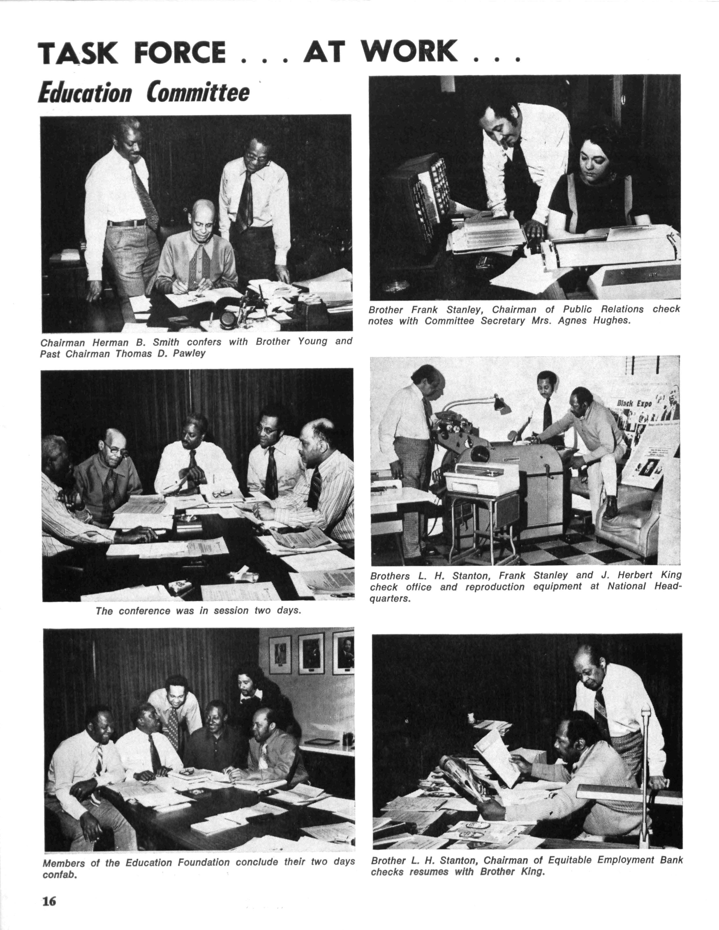 Alpha Phi Alpha Equitable Employment Committee members meeting atXavier University, front row; Brothers Rudolph Debiege, J. Herbert King, and Marcus Neustader, Jr.; standing, Brothers James Phillips and Walter E. Morial, Convention Chairman.