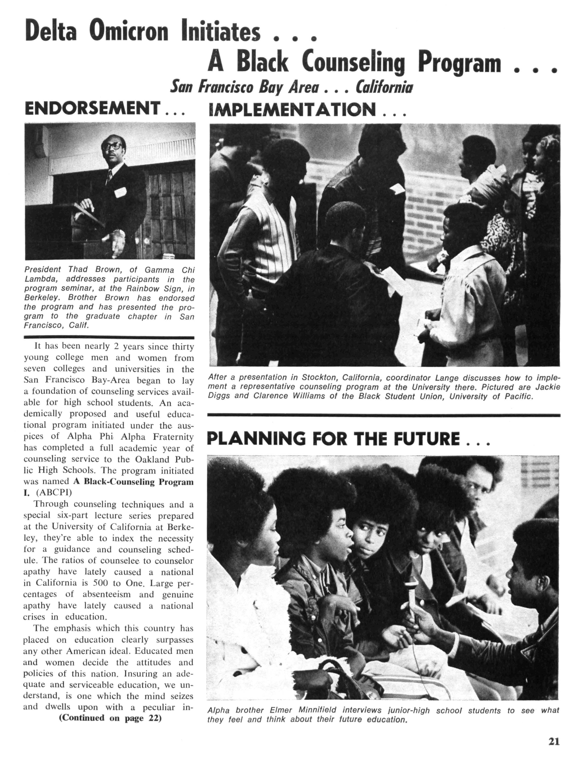 What does the future hold? For one thing, our fraternity is committed to continue its involvement in this project to bring about even more activity and participation We plan to continue our present programs and add additional ones, such as drama training, reading classes for adults, services to the elderly, building a closer relationship between library, school and community, and such other positive programs as may be decided upon mutually with the library.