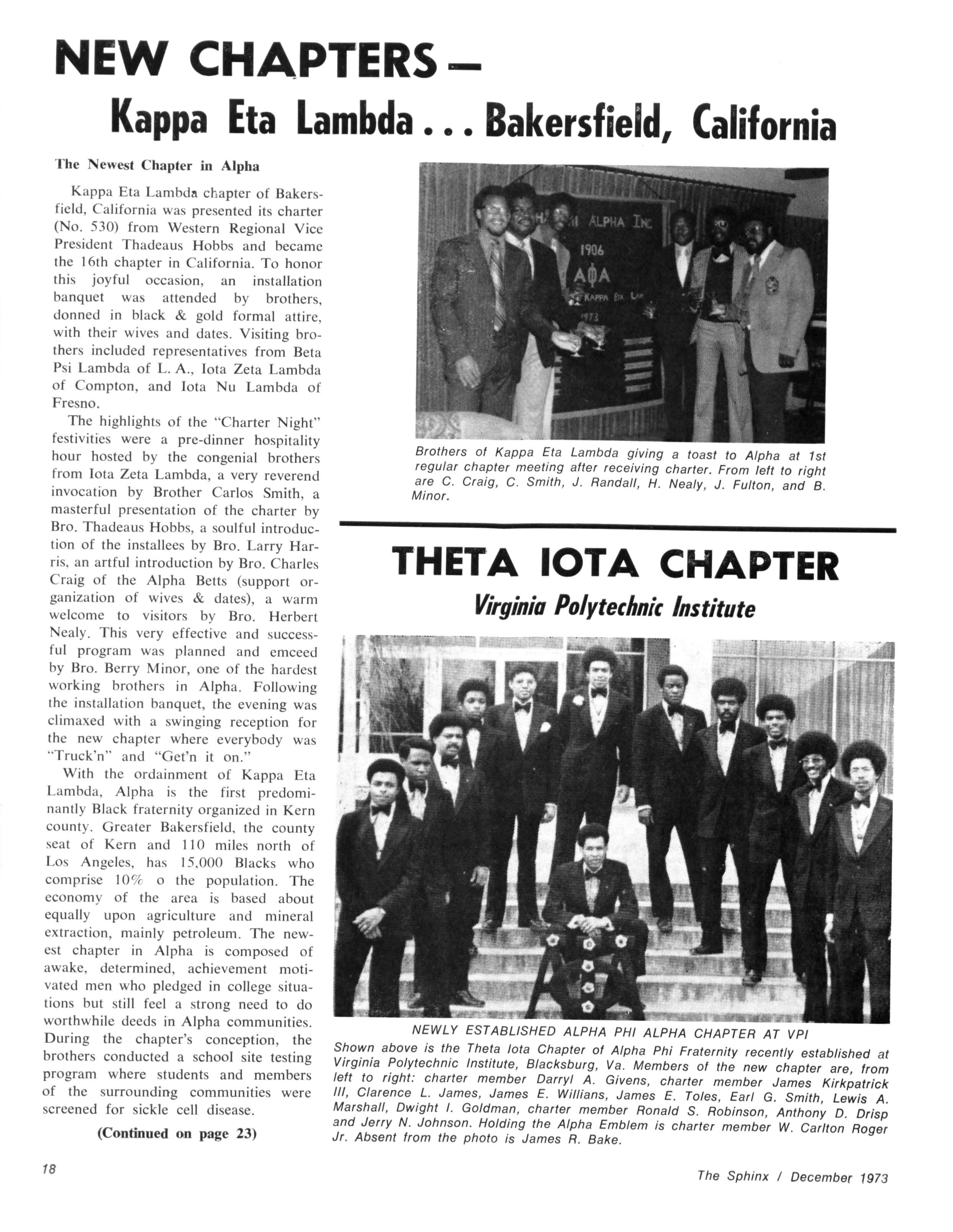 The convention ended on the campus of Virginia Polytechnic Institute where the final installation services were held for the Theta Iota Chapter of Alpha Phi Alpha.