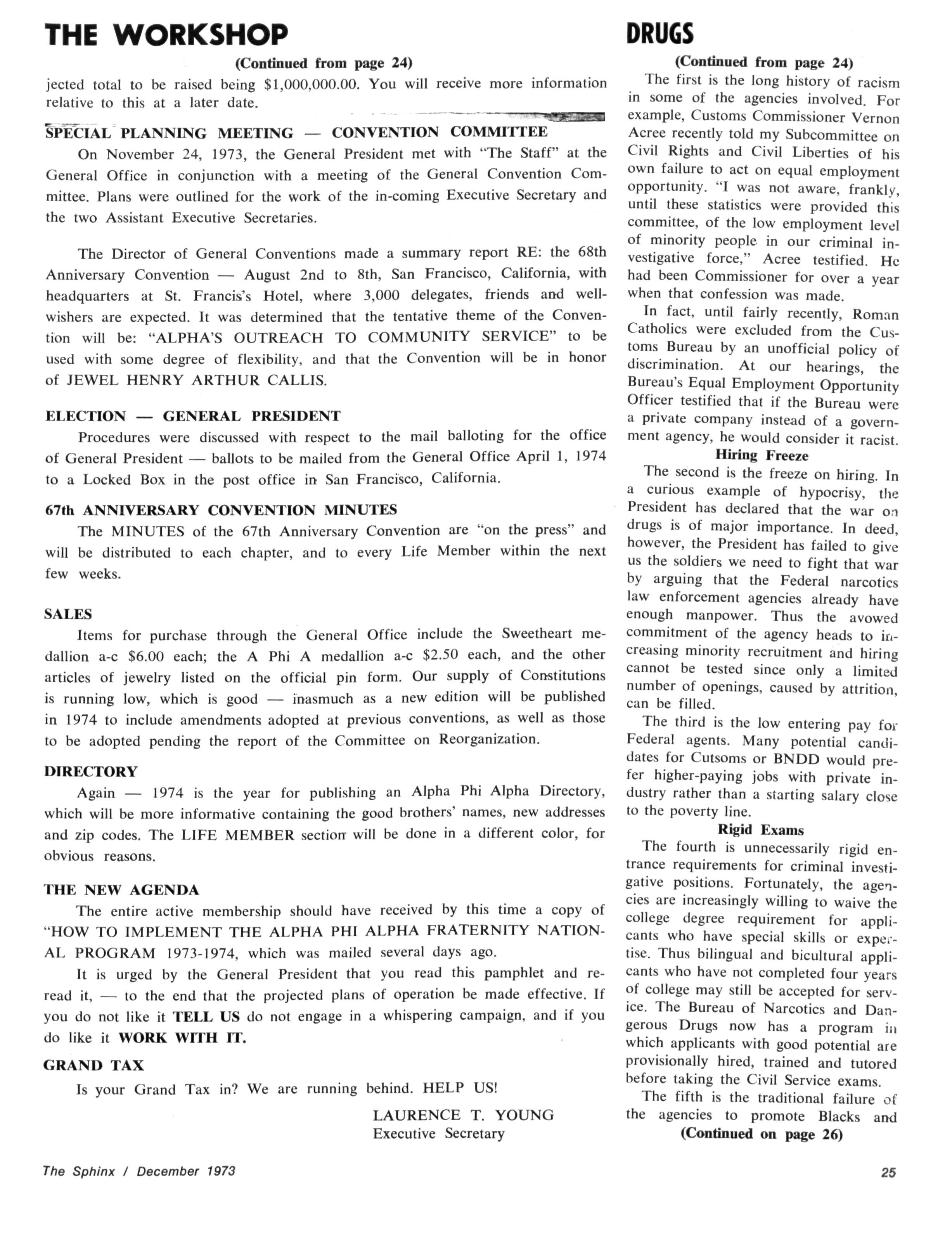 Opinions expressed in columns and articles do not necessarily reflect the views and policies of Alpha Phi Alpha Fraternity, Inc., and use of any person's name in fiction, semi-fiction articles or humorous features is to be regarded as a coincidence and not as the responsibility of The Sphinx It is never done knowingly Copyright 1970 by The Sphinx, Alpha Phi Alpha Fraternity, Inc Reproduction or use, without written permission, of the editorial or pictorial content in any manner is prohibited The Sphinx has been published continuously since 1914 Organizing Editor: Bro Raymond W Cannon Organizing General President: Bro Henry Lake Dickason
