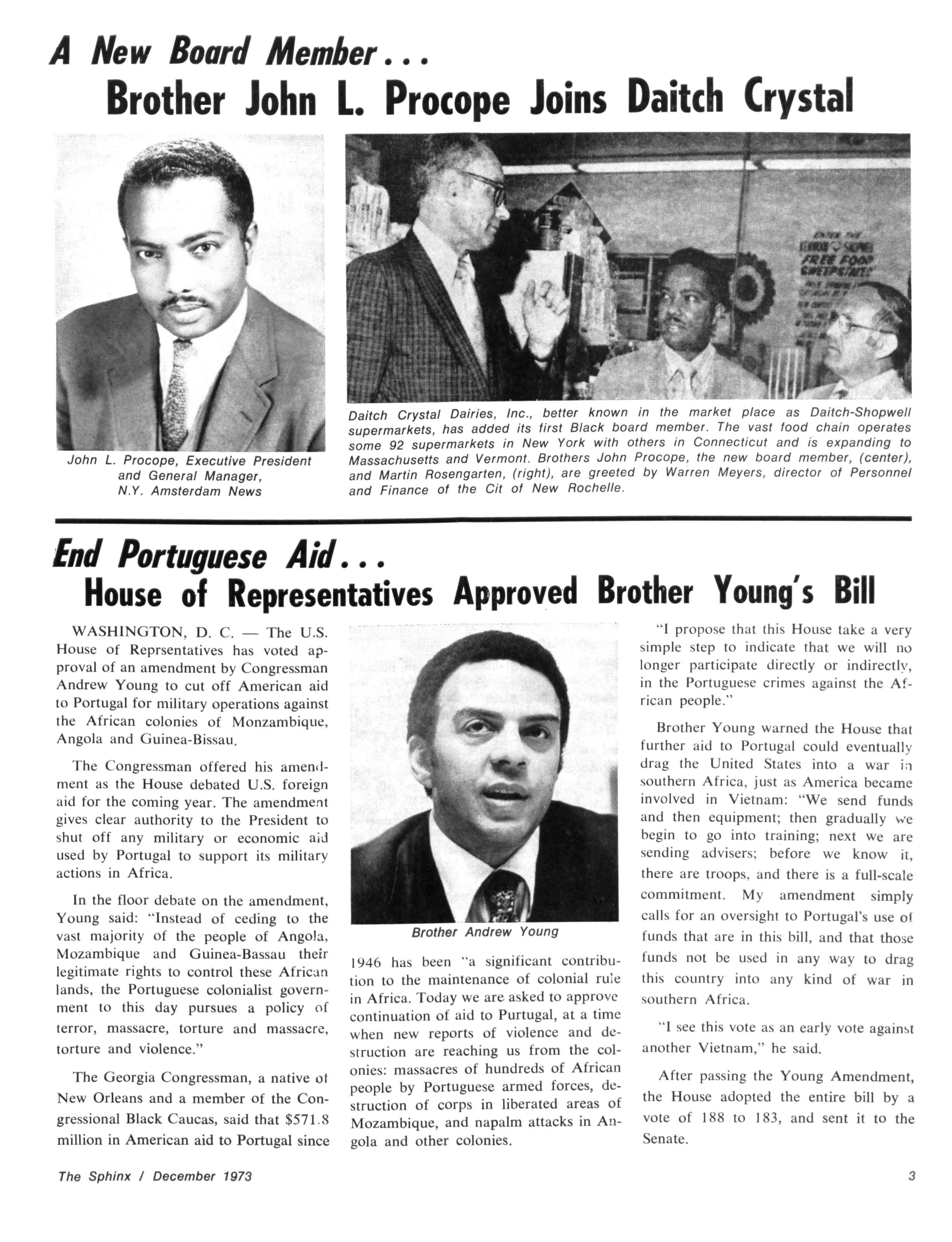 WASHINGTON, D C — The U.S House of Reprsentatives has voted approval of an amendment by Congressman Andrew Young to cut off American aid to Portugal for military operations against the African colonies of Monzambique, Angola and Guinea-Bissau