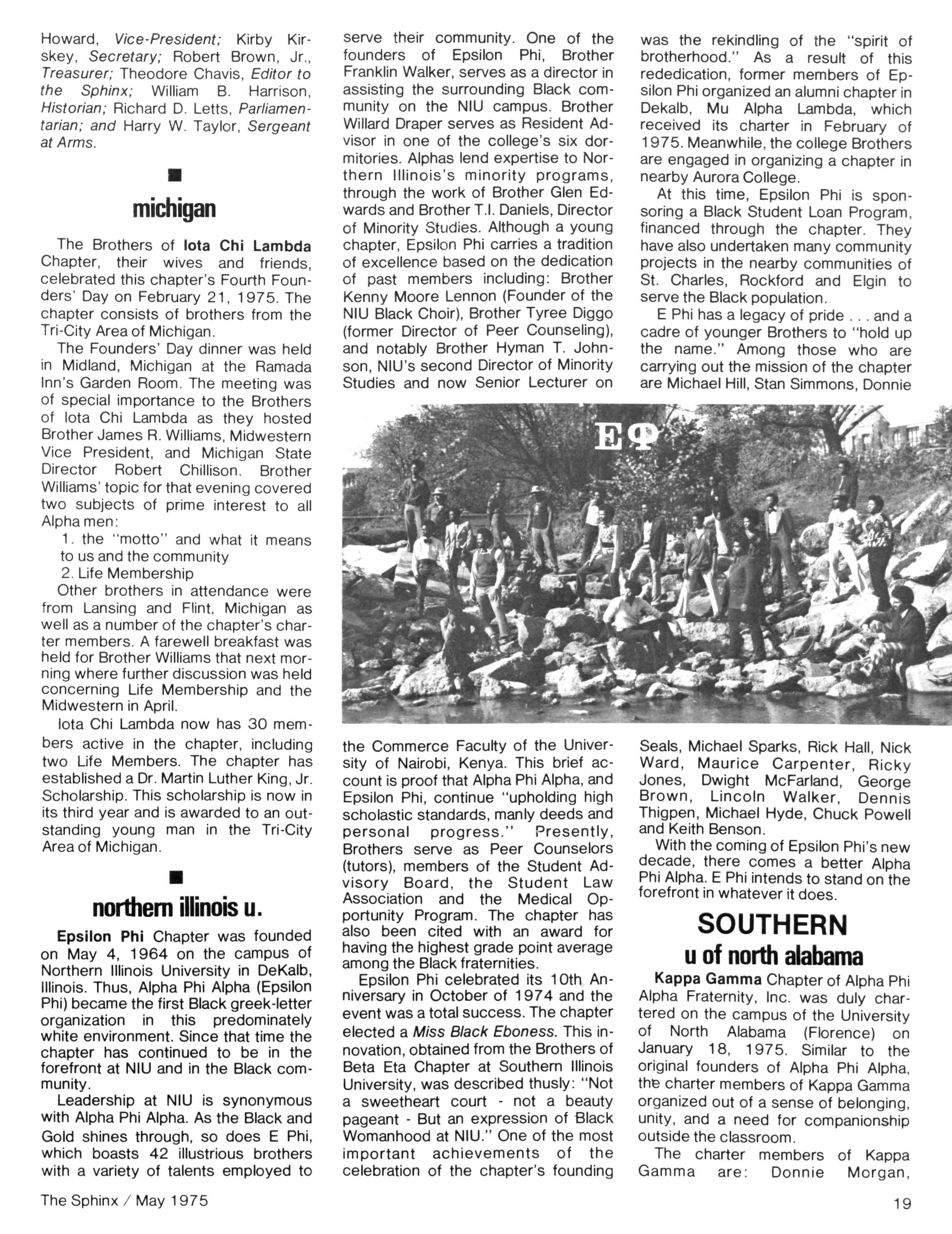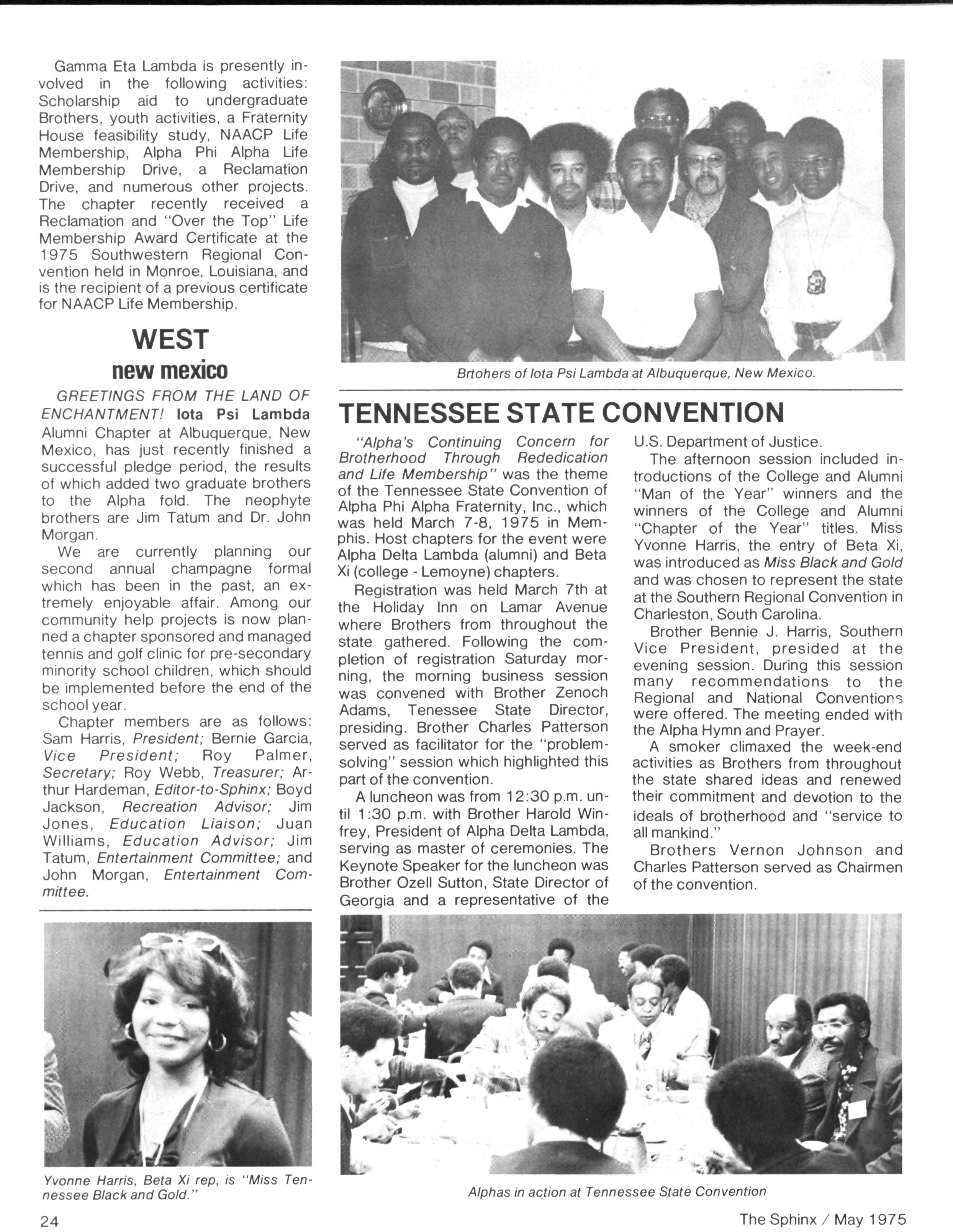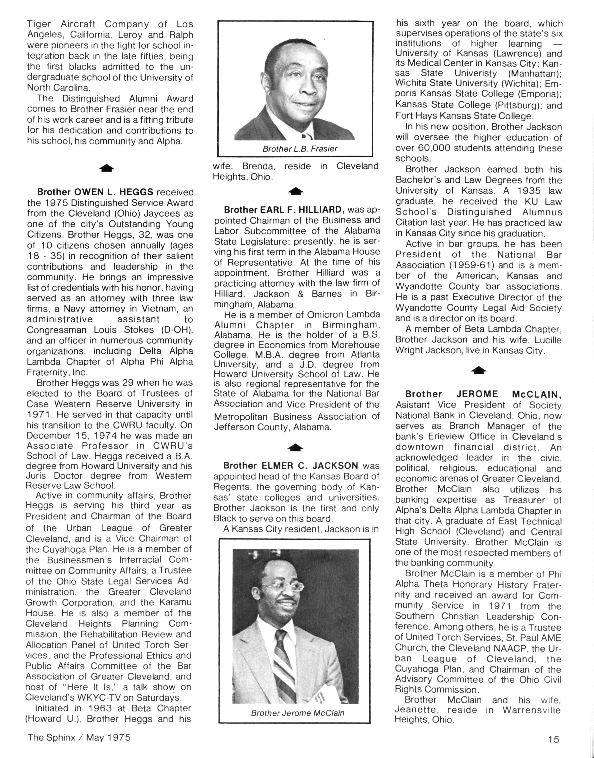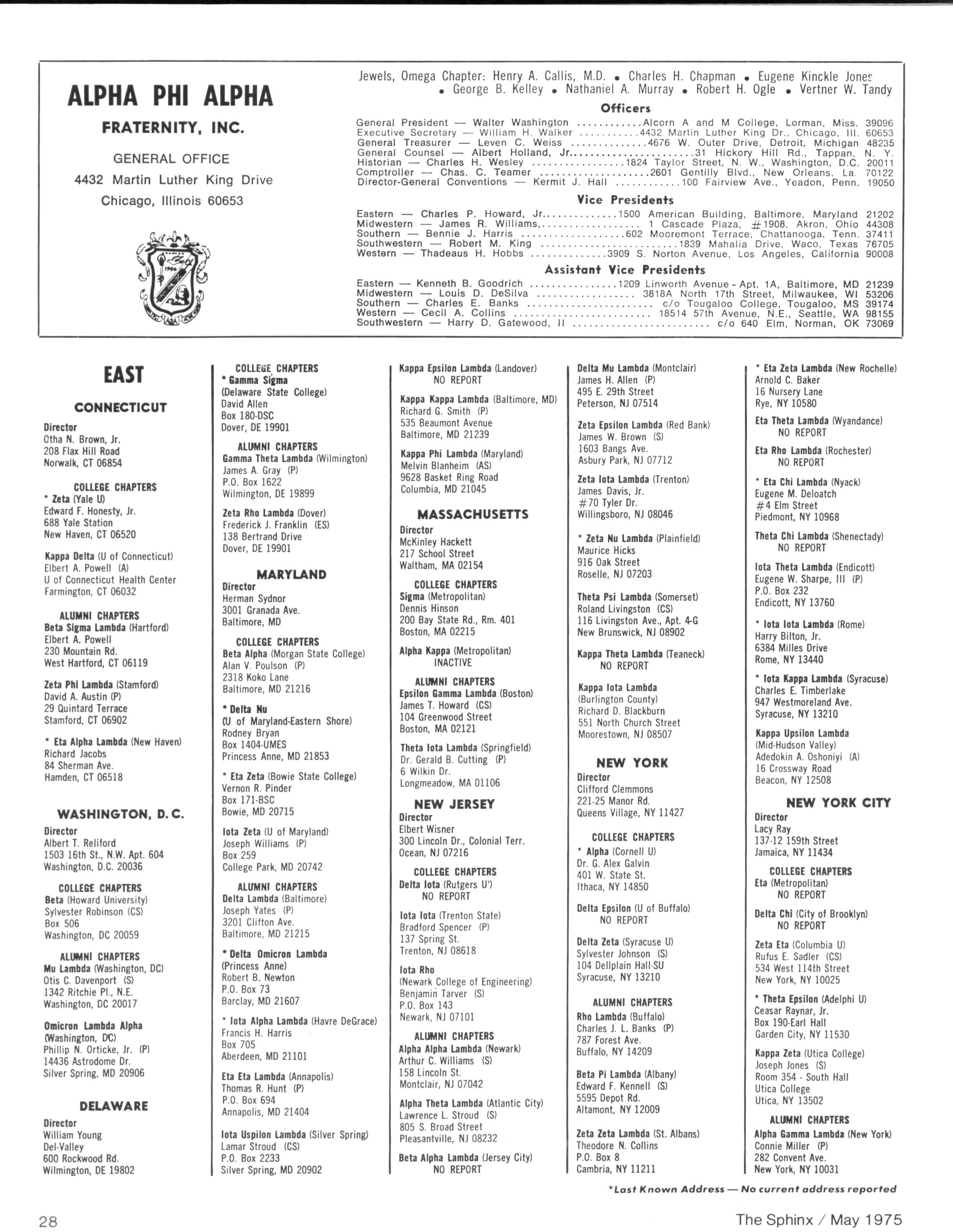 Opinions expressed in columns and articles do not necessarily reflect the views and policies of Alpha Phi Alpha Fraternity, Inc., and use of any person's name in fiction, semi-fiction articles or humorous features is to be regarded as a coincidence and not as the responsibility of The Sphinx It is never done knowingly Copyright 1975 by The Sphinx, Alpha Phi Alpha Fraternity, Inc Reproduction or use, without written permission, of the editorial or pictorial content in any manner is prohibited