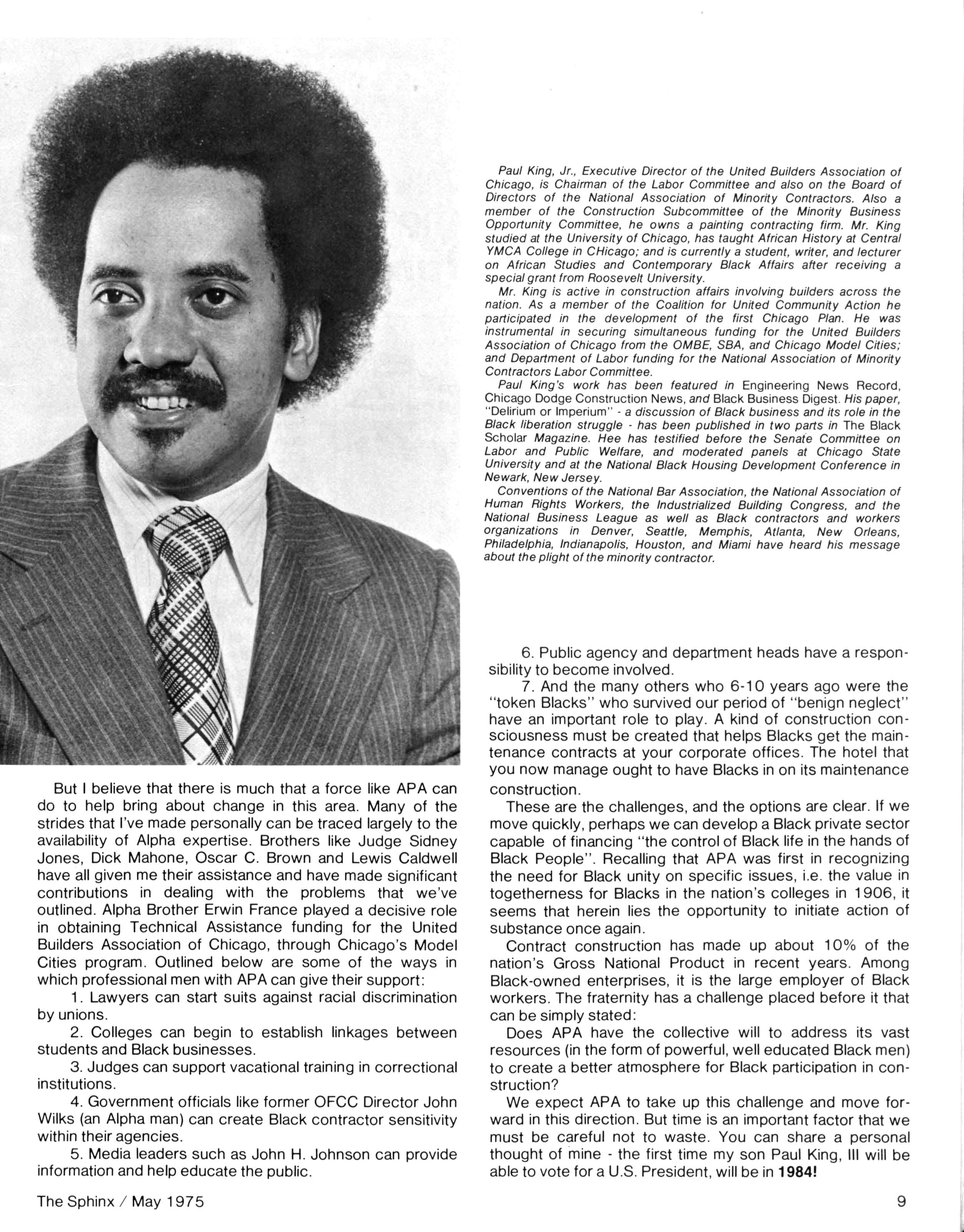 In linewith the theme for the General Convention, "Alpha's Outreach to Business," Brother Paul King, Jr. discusses "Blacks in the Construction industry."
