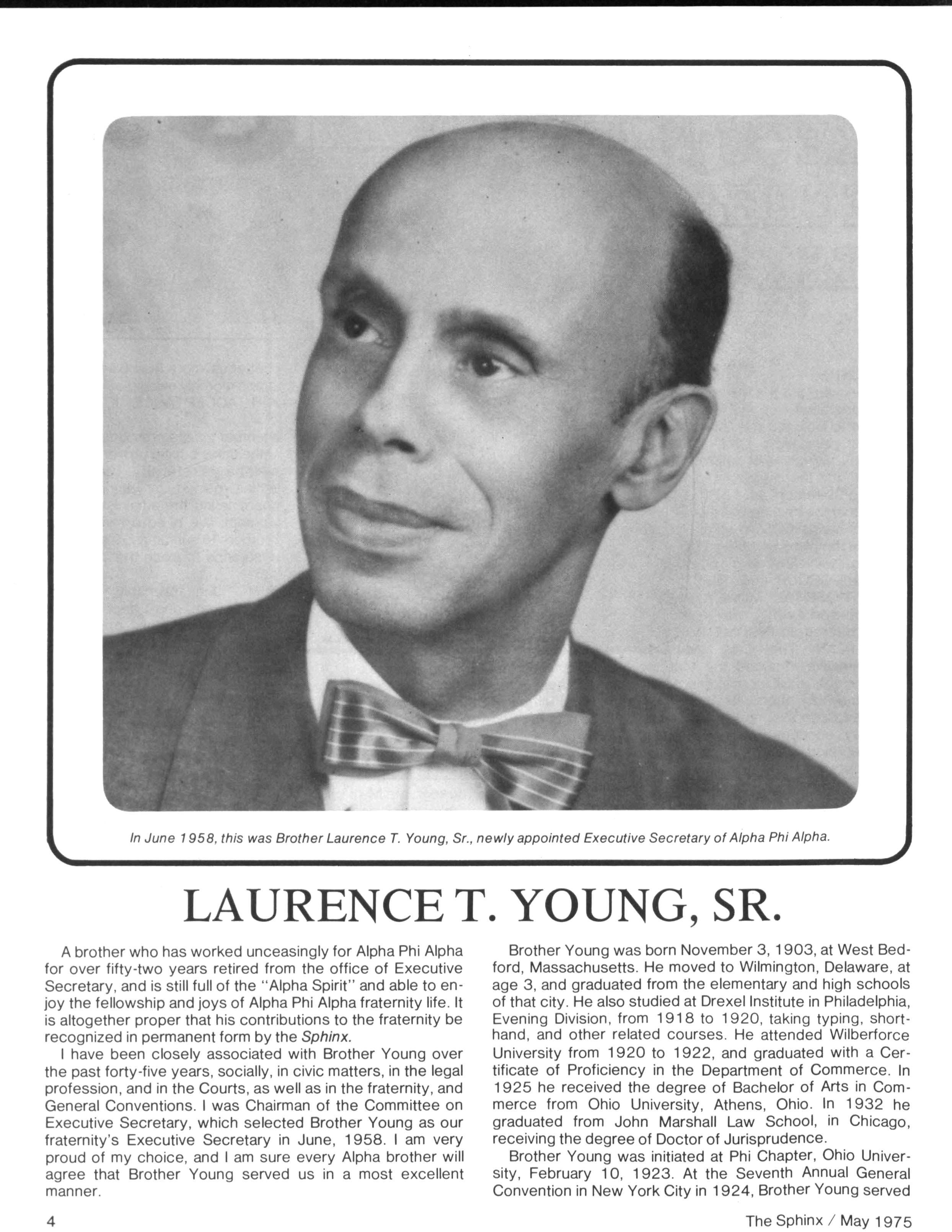 this was Brother Laurence T. Young, Sr., newly appointed Executive Secretary of Alpha Phi Alpha.