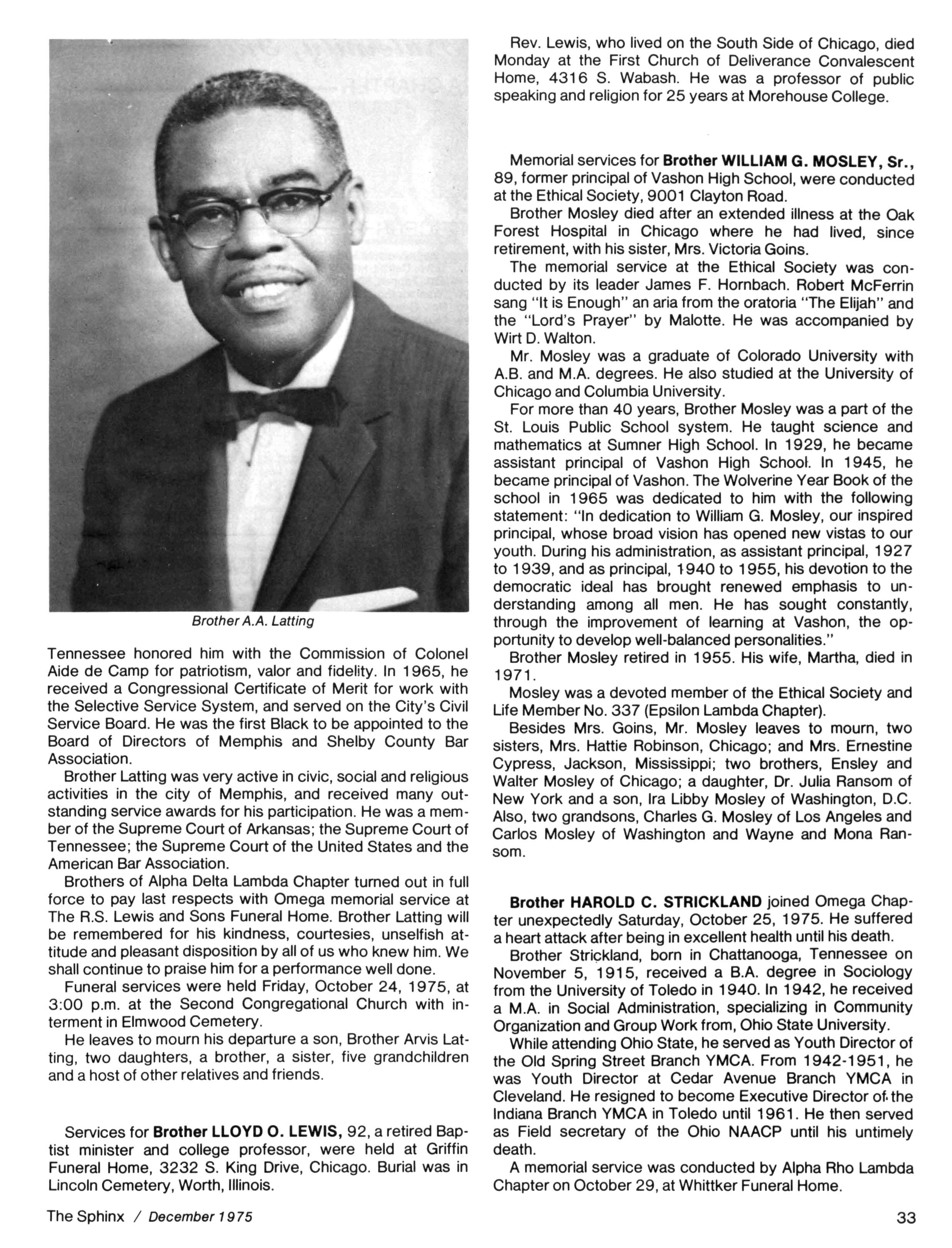 Why have four pages of your magazine been devoted to words and photographs for "reflection"? I admit that this is somewhat of a departure for a fraternal publication like the SPHINX, but one which I feel is justified. In the hustle-bustle of working on various projects, it is sometimes easy to lose sight of the goals toward which we are striving. But these same goals are vital to the work that we are doing So as we enter 1976, let us re-adjust our sights —the result will be a more productive year. . . As I paused to reflect, I was mildly shocked to realize that this is my second year as Editor of the SPHINX Past successes and constant work tend to blur long-range goals and I feel that we have a long way to go before the SPHINX is the first-class publication that the brothers deserve Also, lax deadlines and incomplete communications (including wrong addresses) continue to plague us on a monumental scale The February edition will include a special article on this subject Thanks to Brother E.F S Davies of Ettrick, Virginia for supplying the material on inventor Garrett A Morgan Brother Davies' wife is a niece of Brother Morgan. Talks are on going with the new Chairman of the Education Foundation, Brother William Ross, concerning the establishment of a regular educational column in the magazine... Fees for the 1976 General Convention are included on page 7 Constructive criticism is necessary to continue to improve the SPHINX Please let me know your dislikes and/or things you would like to see included in your journal Profiles of the candidates for General President and information on regional conventions will be presented in the February edition. Deadline for the May Issue is April 1, 1976.. Until next issue.