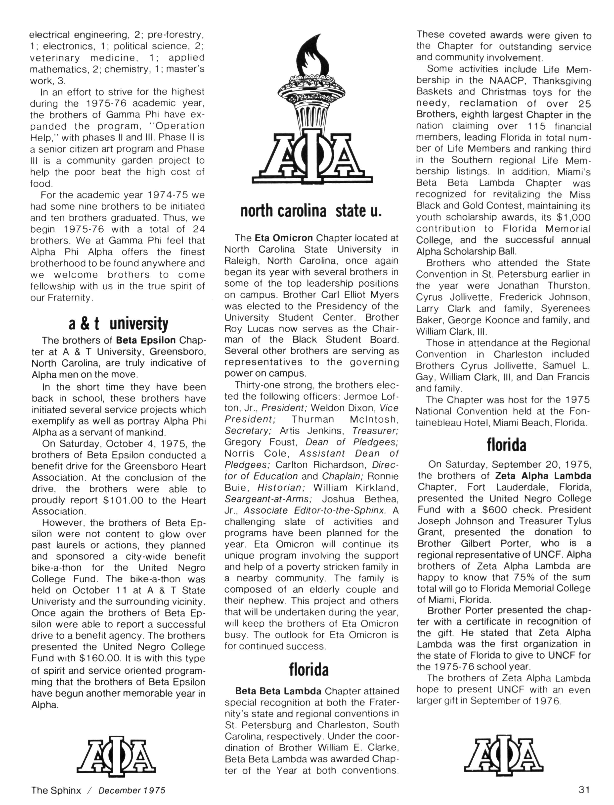 GENERAL CONVENTION: Plans are rapidly being finalized for the historic 1976 New York - Monrovia General Convention. Thisk 70th Anniversary Convention will be alandmark in the history of Alpha Phi Alpha and we urge the participation of each brother. In this issue of the SPHINX you will find a breakdown of the fees for the convention Travel brochures and all other necessary material will be mailed to all chapters and brothers in February We urge you to make plans NOW to join us in New York - Monrovia!
