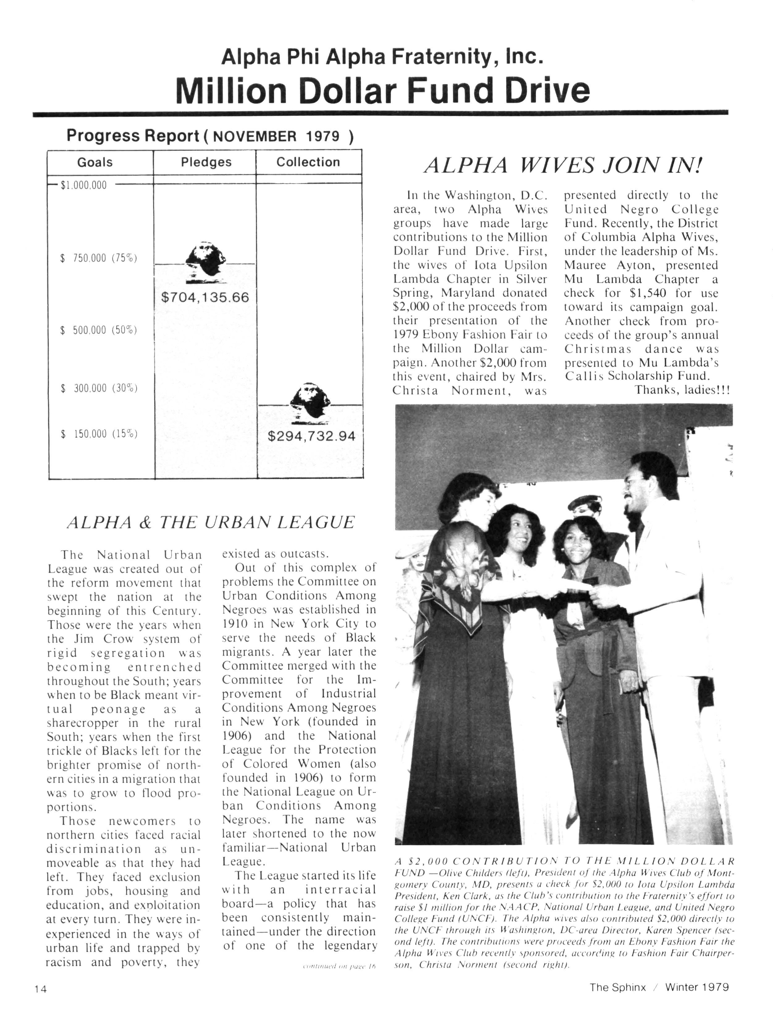 At the forefront of our tasks is the completion of the Million Dollar Fund Drive - perhaps the greatest undertaking in the history of Alpha Phi Alpha.