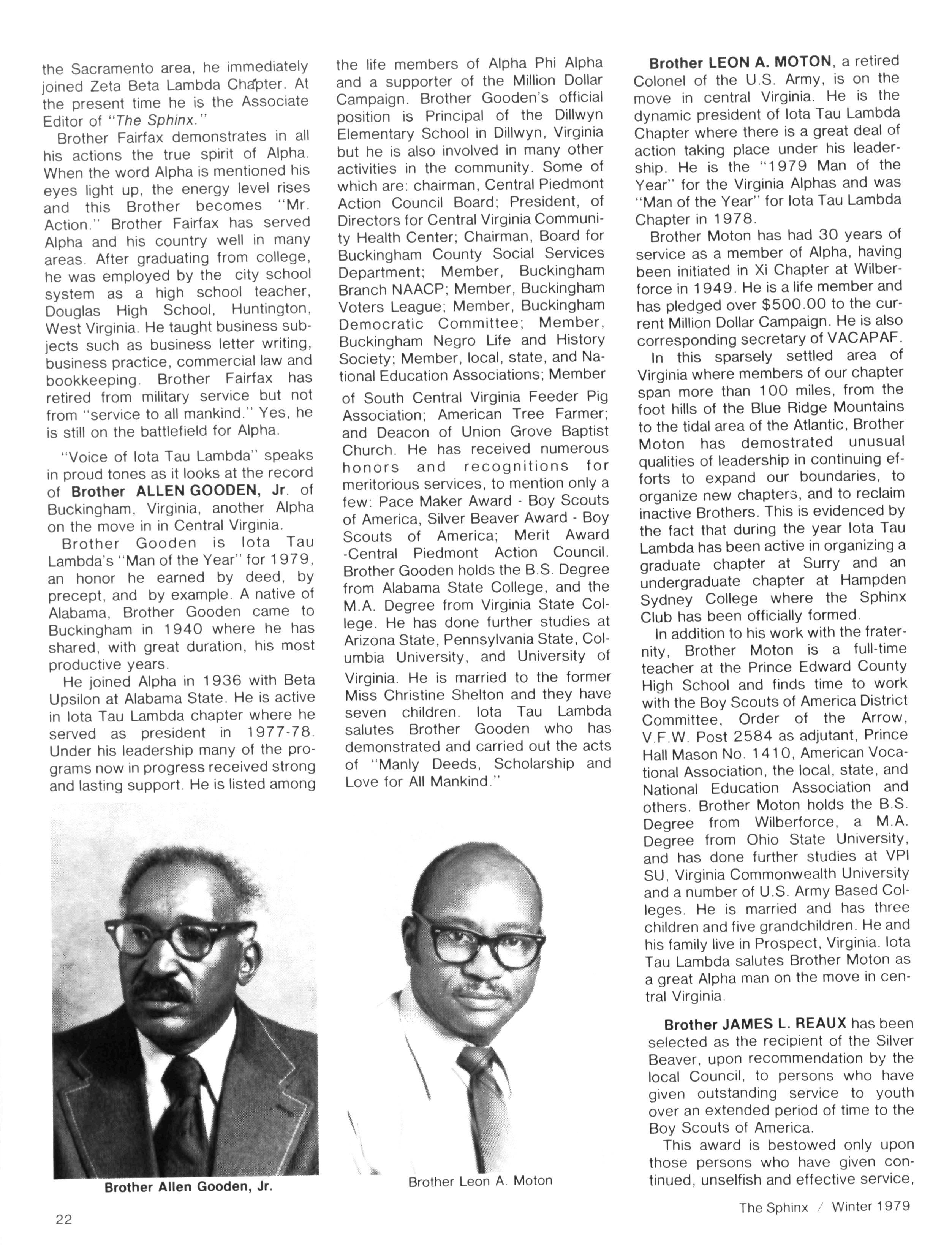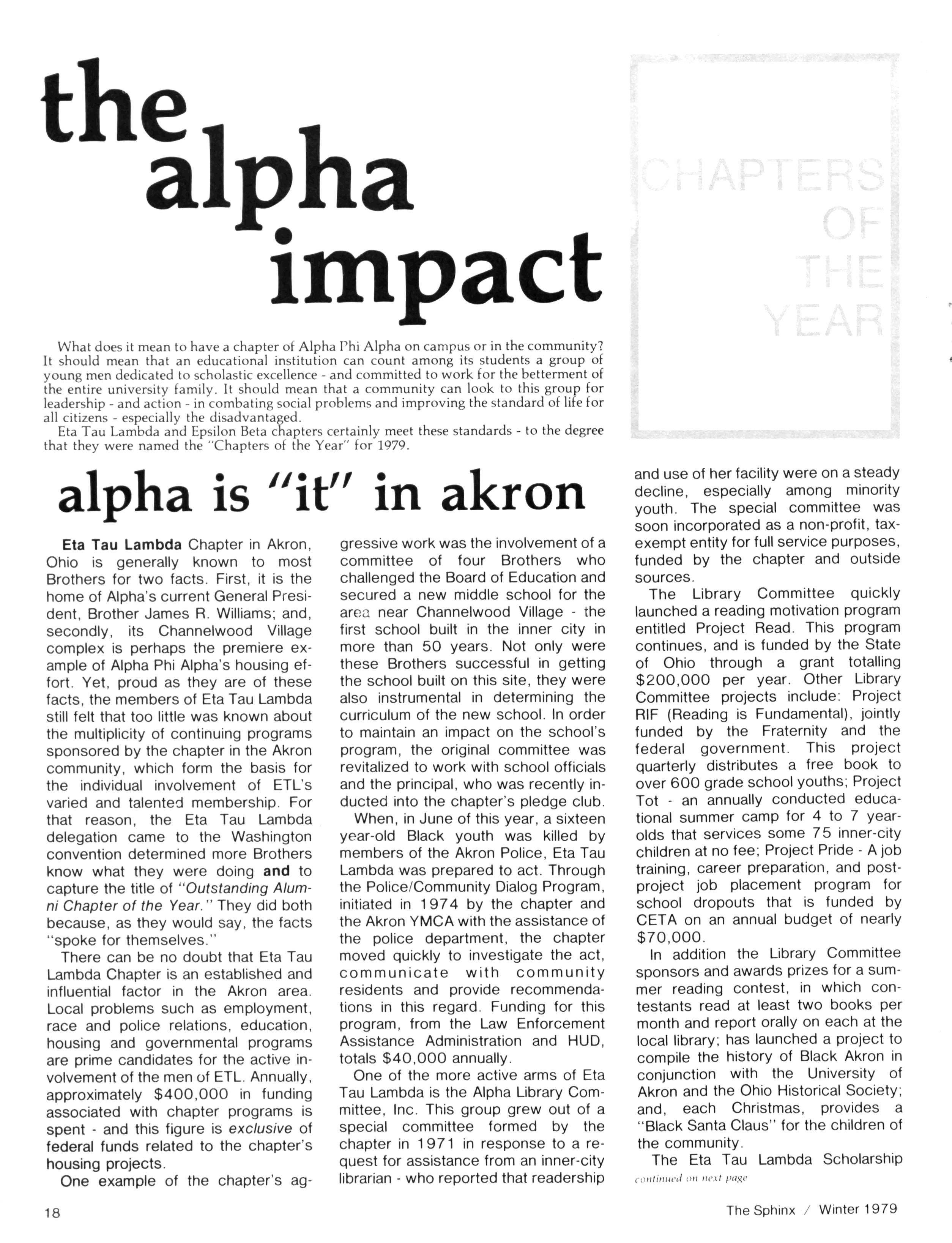 You can expect to hear more from both these programs in 1980 - as we strive to make active membership in Alpha Phi Alpha as attractive as it was when we "crossed the burning sands."