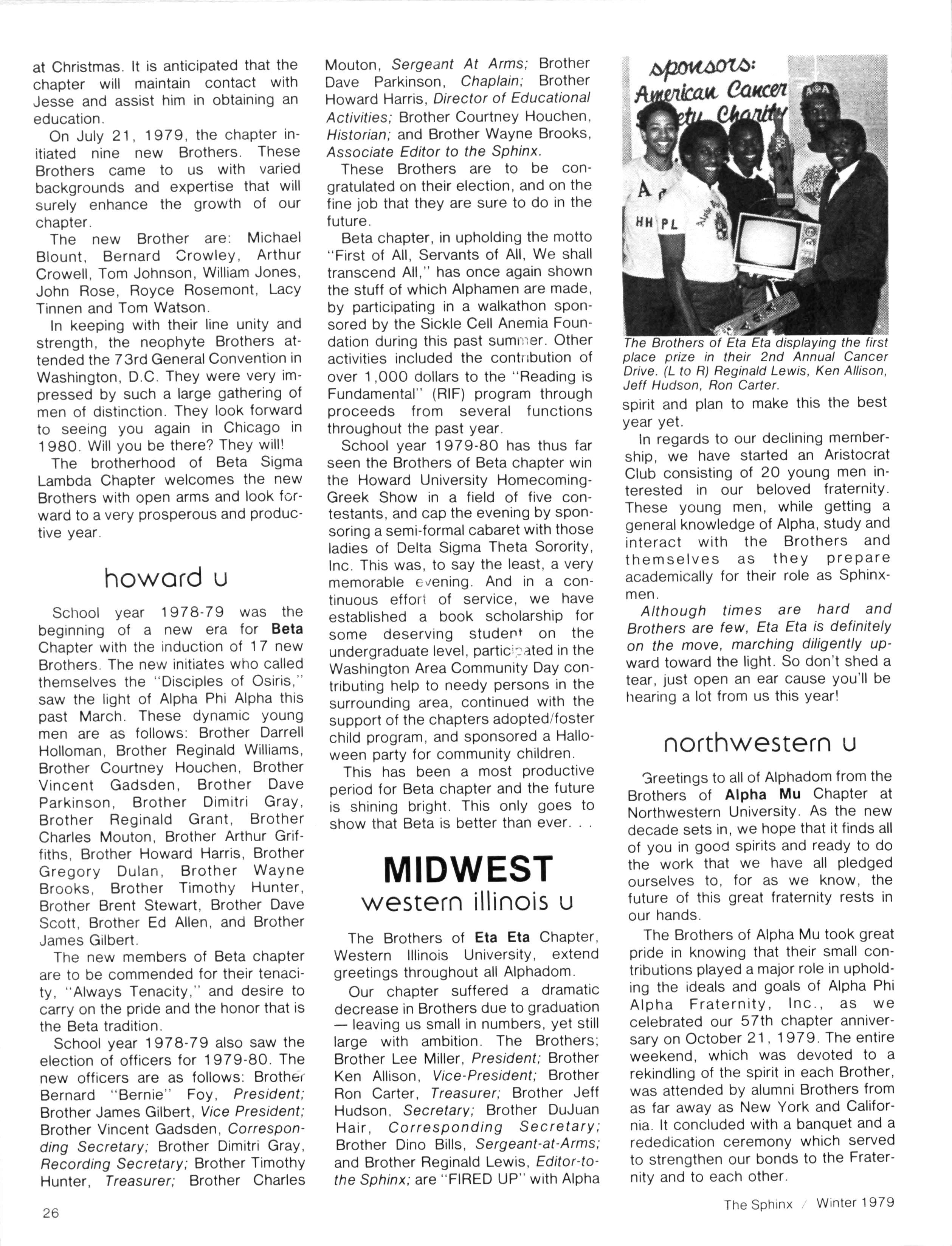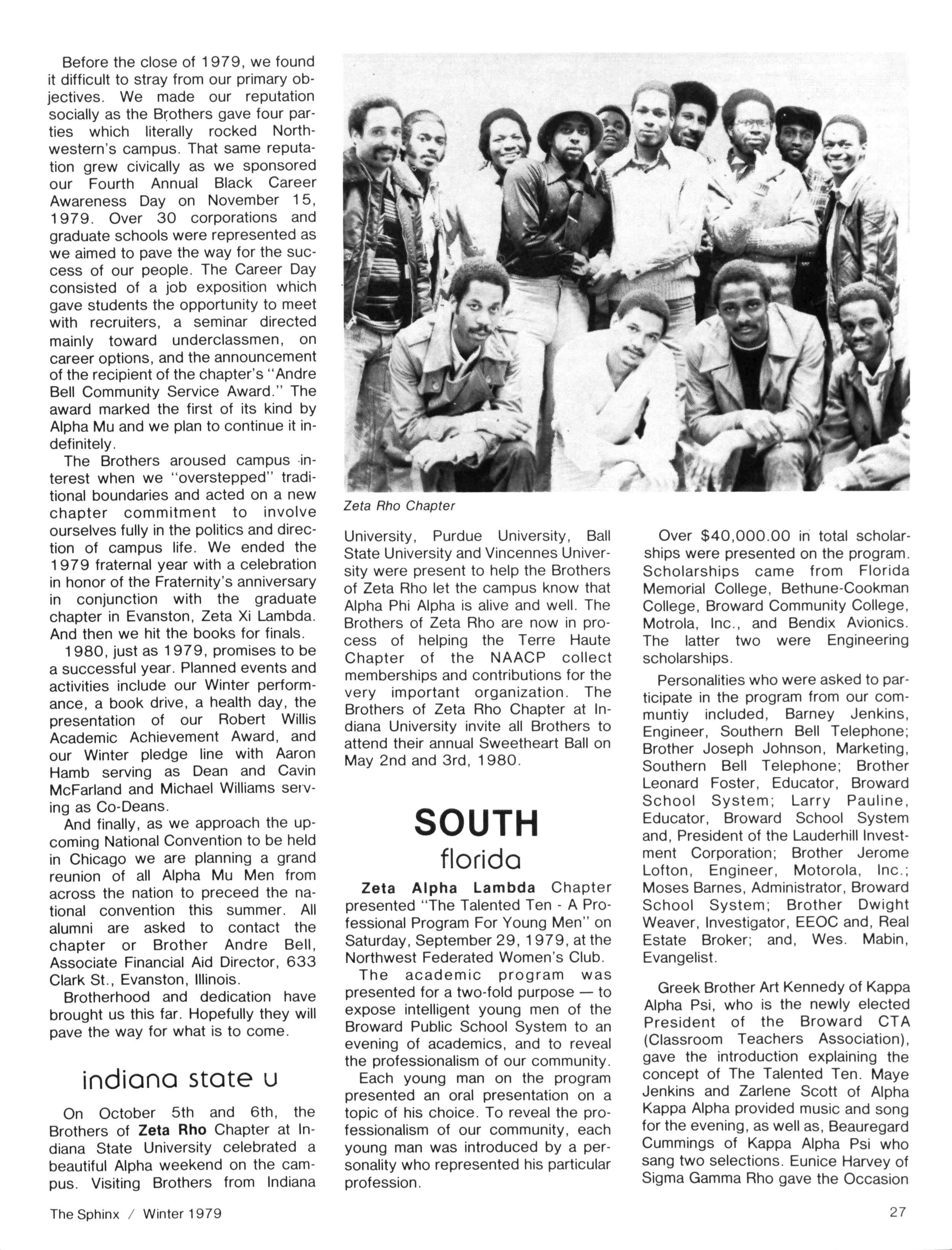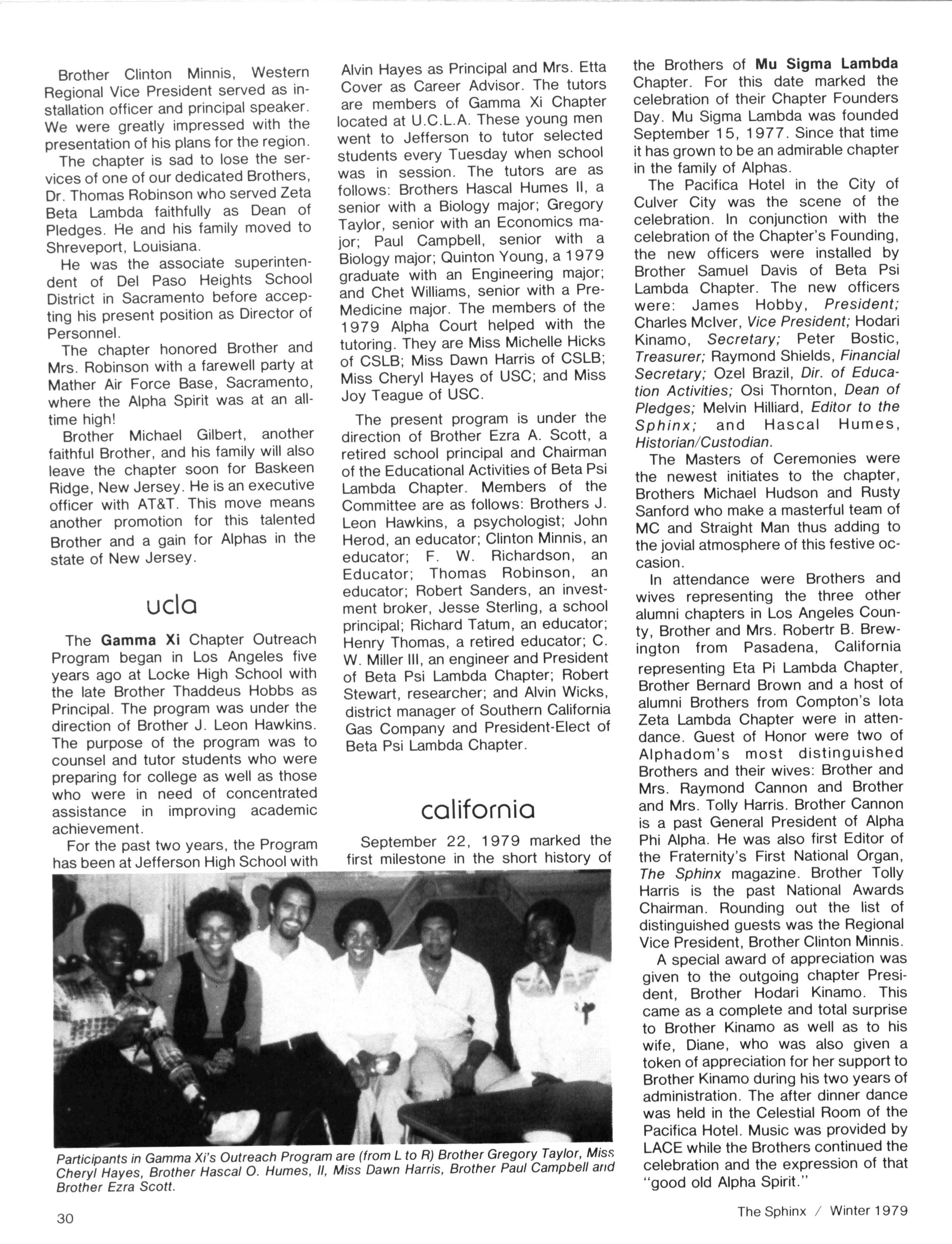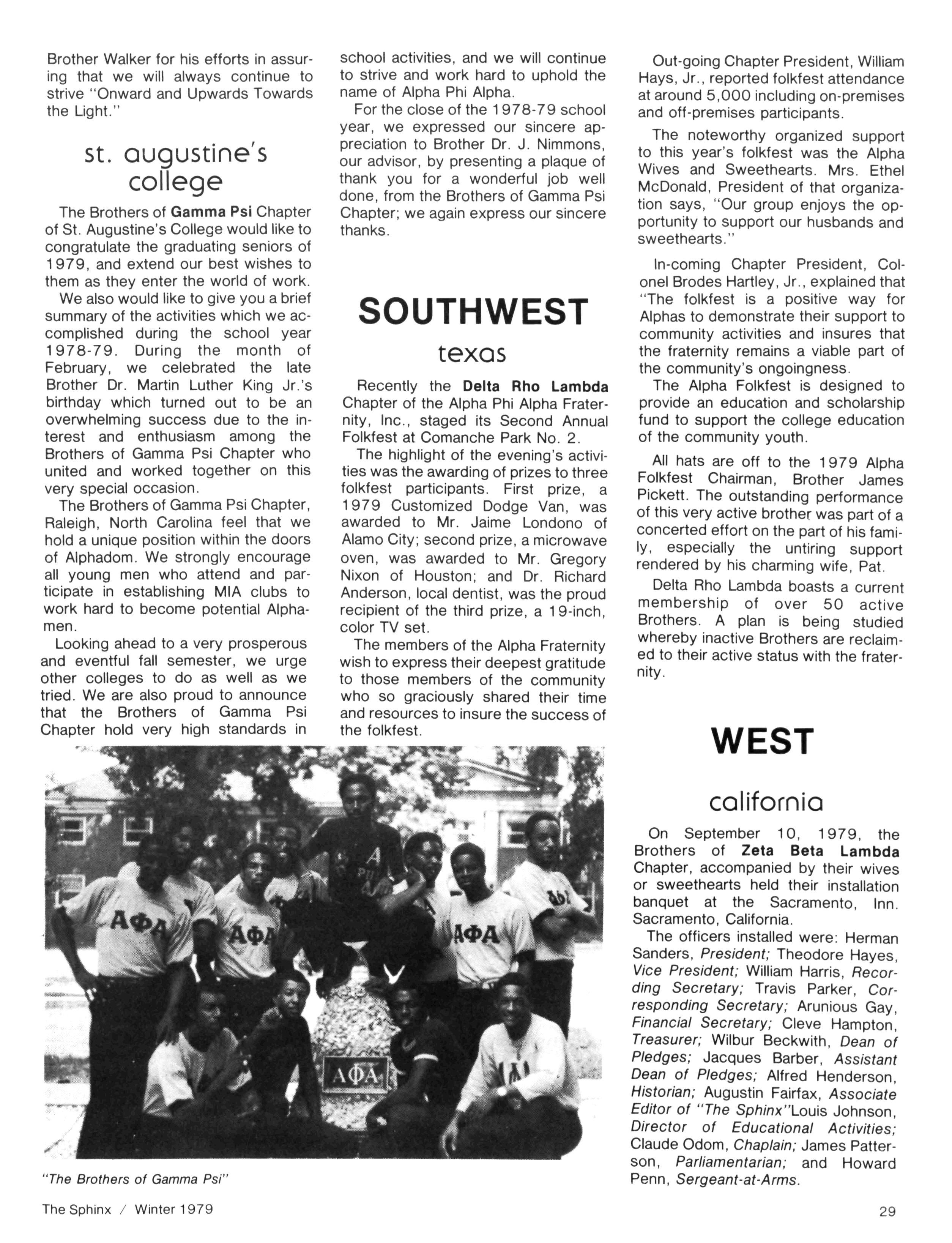 We are very happy to look back at our "OPERATION ALPHA - '79" and see the many chapters that we were able to visit, the workshops we conducted, the programs we participated in and, most of all, the many Brothers that we were able to fellowship with throughout the year Our visits reached from the East coast of Newark, NJ to the West coast of San Diego, CA; from the Northwest coast of Seattle, WA to the Southern tip of Miami, FL — and "OPERATION ALPHA - '80" will, we hope, be just as exciting.