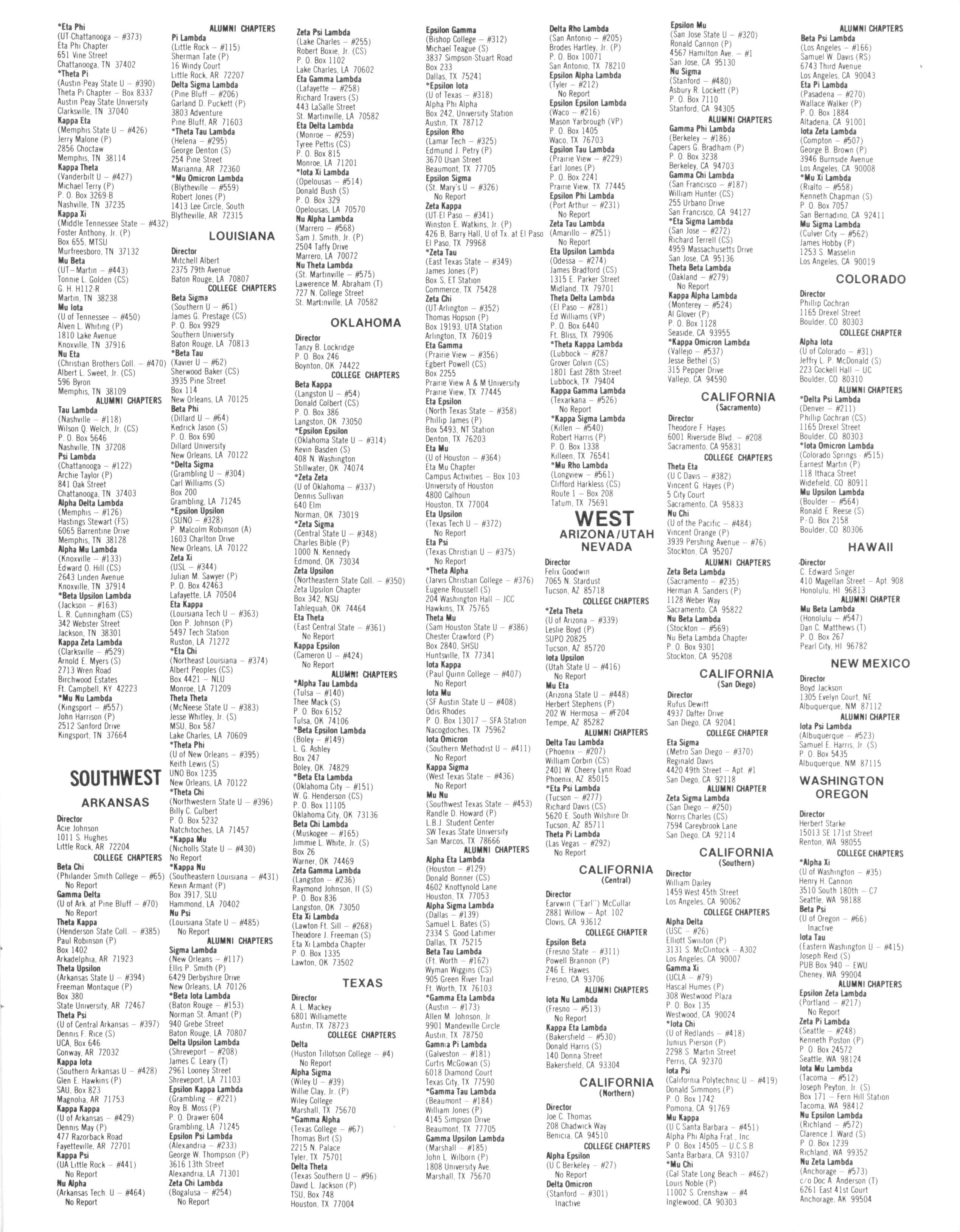 Gamma Xi (UCLA - #79) Hascal Humes (P) 308 Westwood Plaza P 0 Box 135 Westwood CA 90024