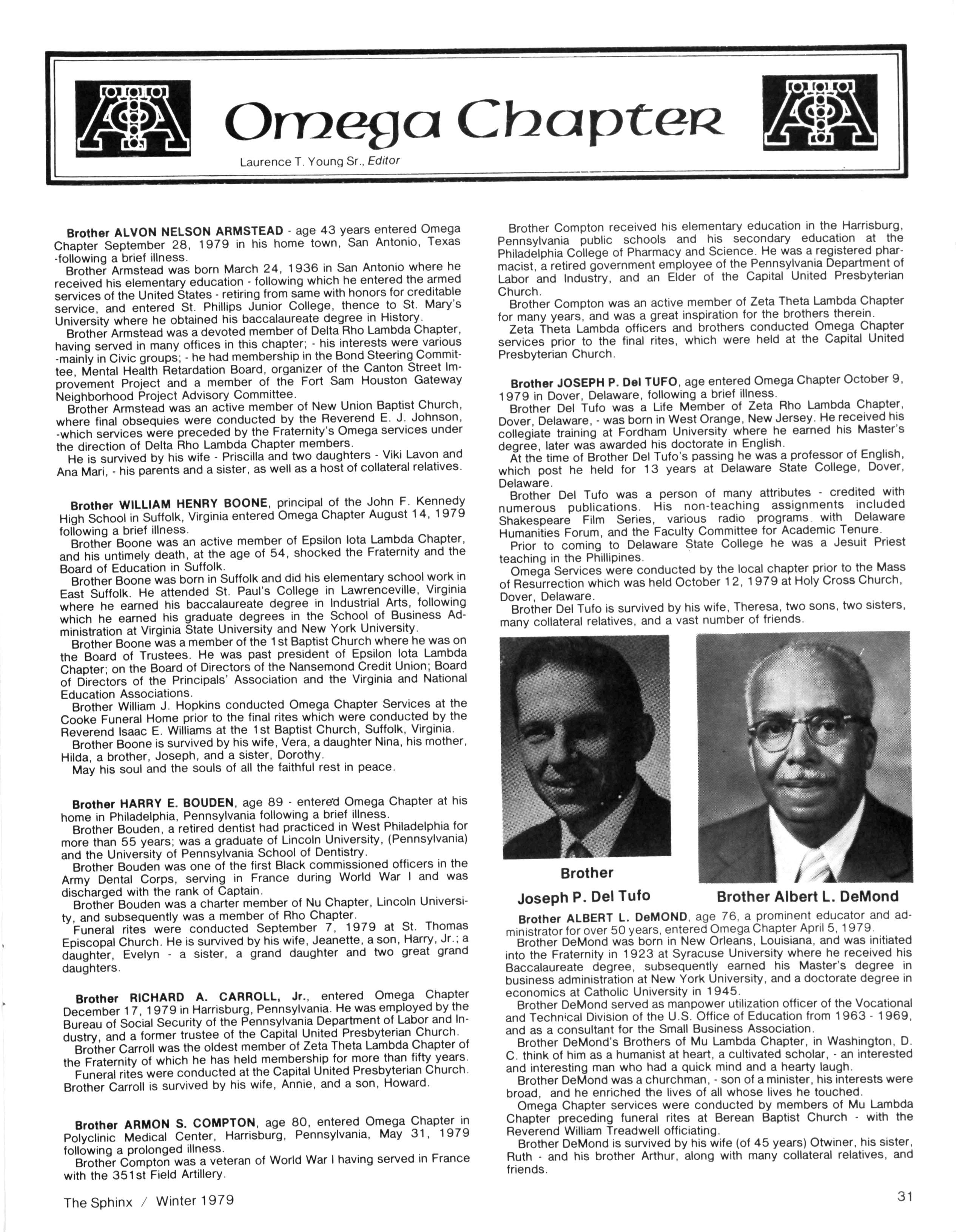 LAURENCE T YOUNG, SR Omega Chapter JAMES R WILLIAMS Ex Officio