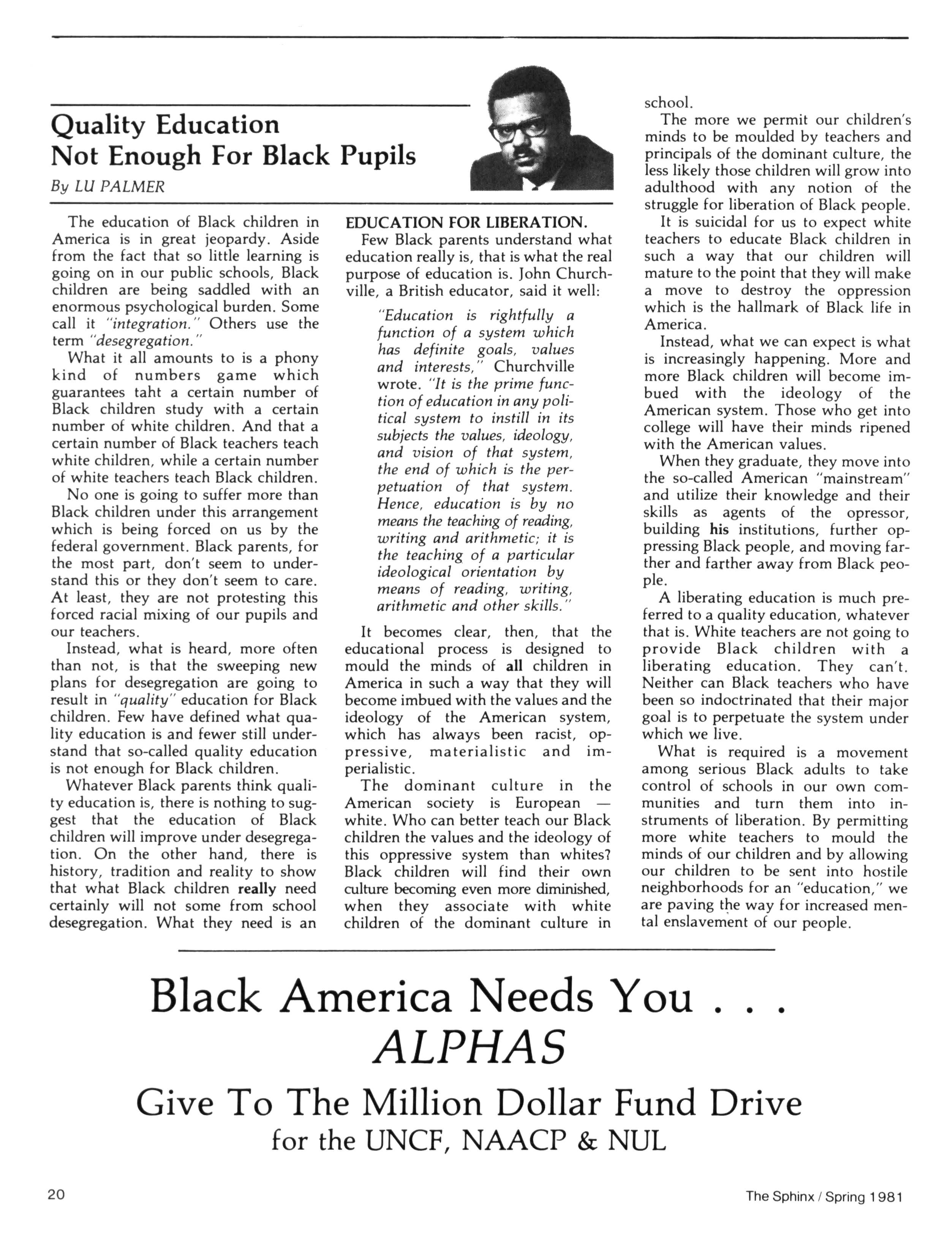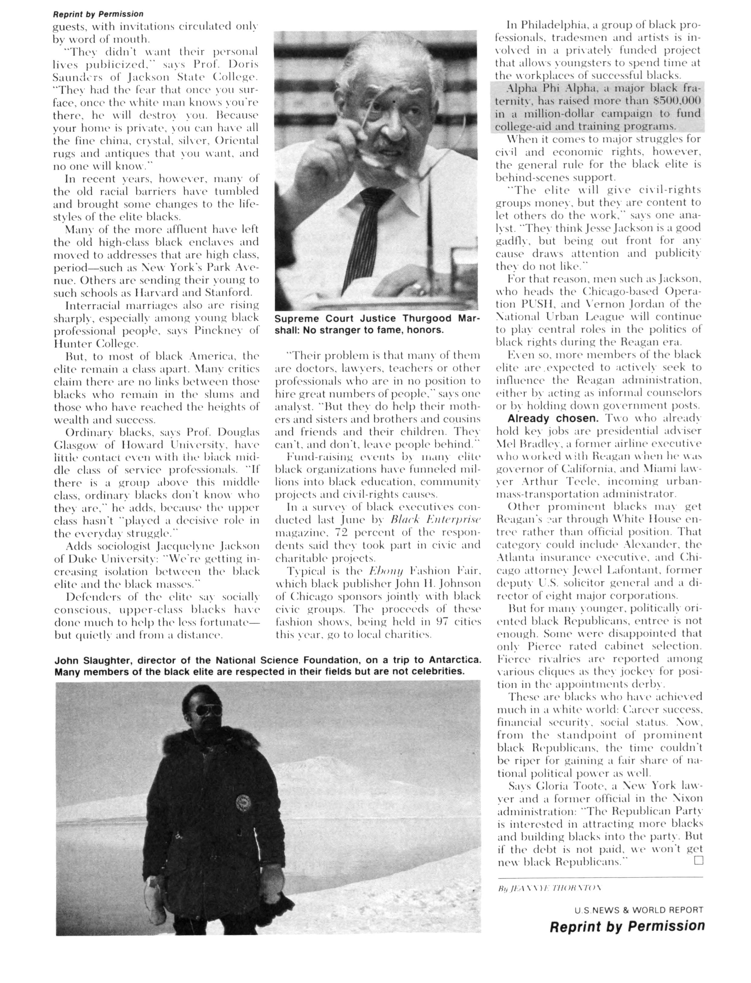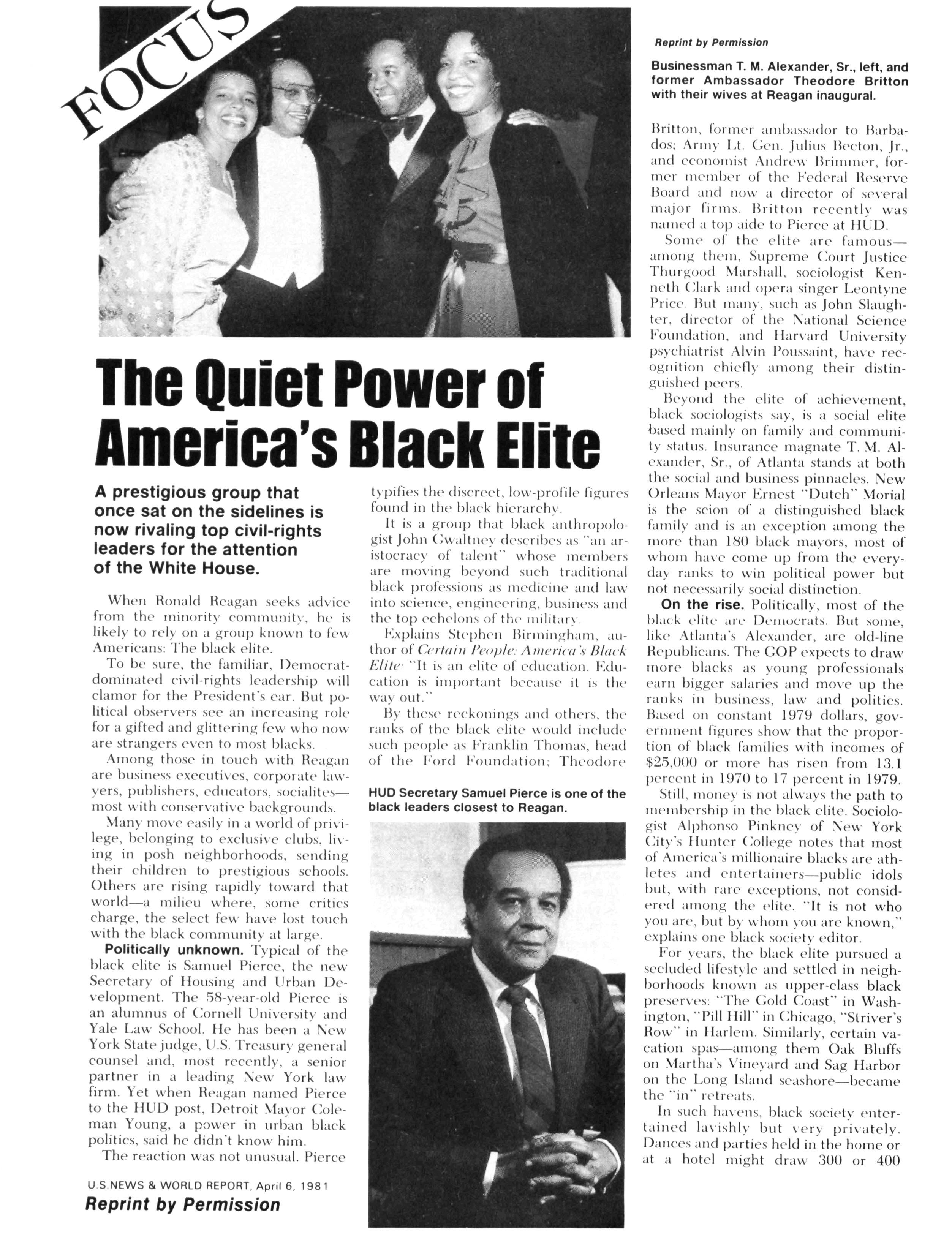 — A special article (reprinted from U S News & World Report) spotlights the contributions of educated Blacks