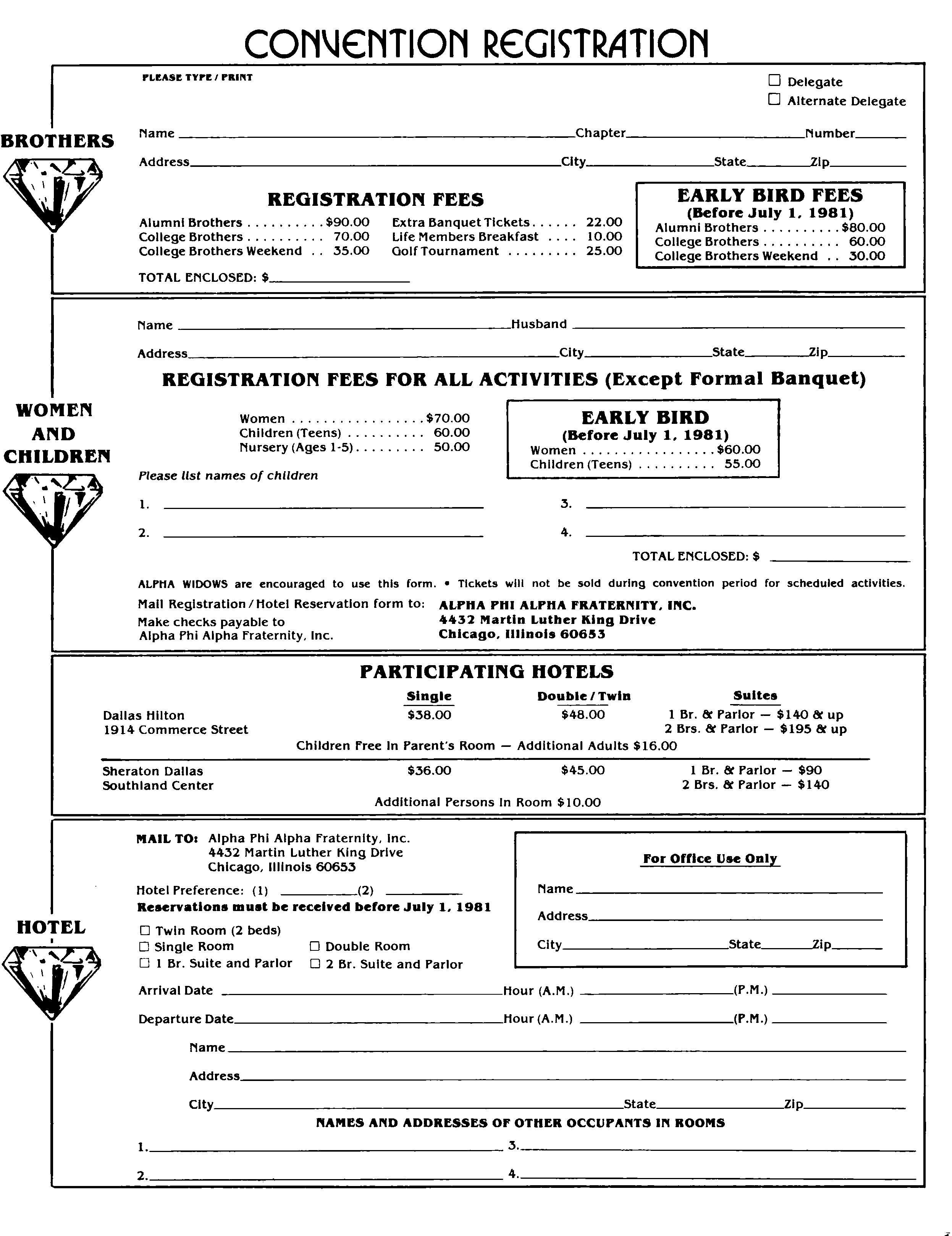 In any event, as a result of this effort, we are confident that 99% of the Brothers who paid fees prior to March 1st (the cut-off date for the first mailing list) have received the General Convention brochure (the first mailing using the 1981 list) If you fit this category and DID NOT RECEIVE THIS MAILING — please contact the General Office immediately! Before calling, please contact your Chapter Secretary and make sure your payment was submitted on time — and include your Passcard or Life Number when calling or writing. We promise a prompt response in all cases