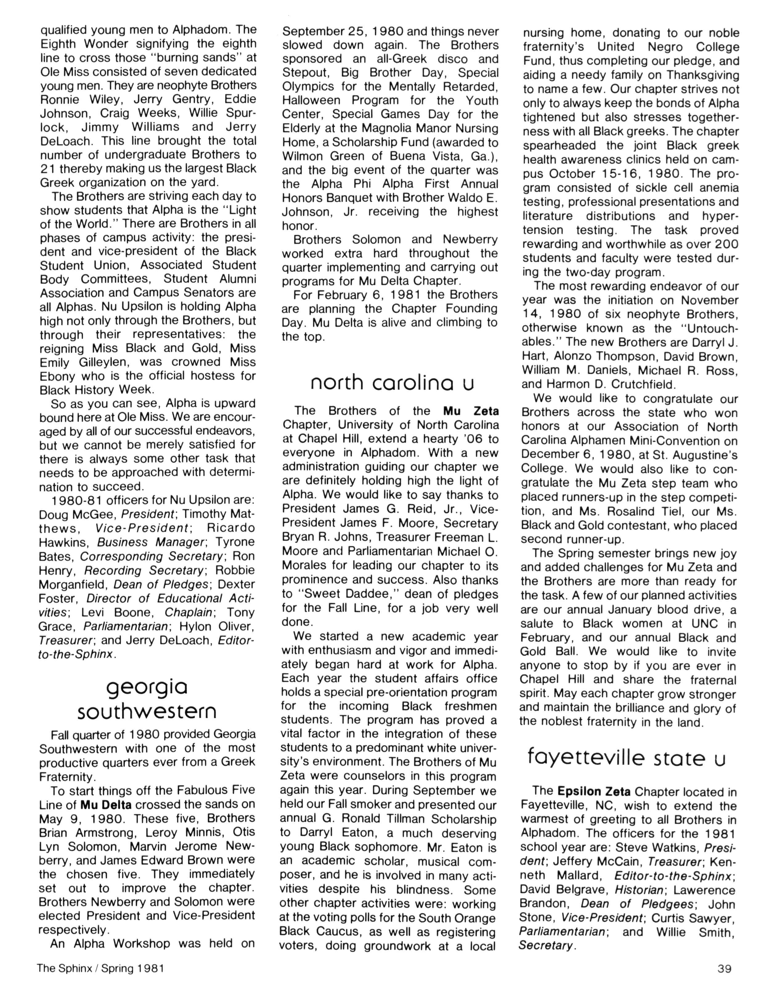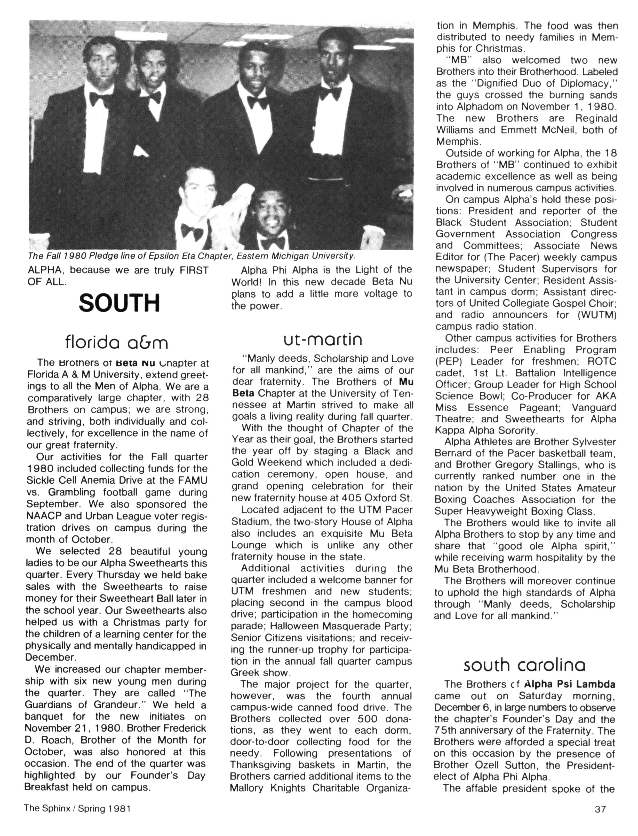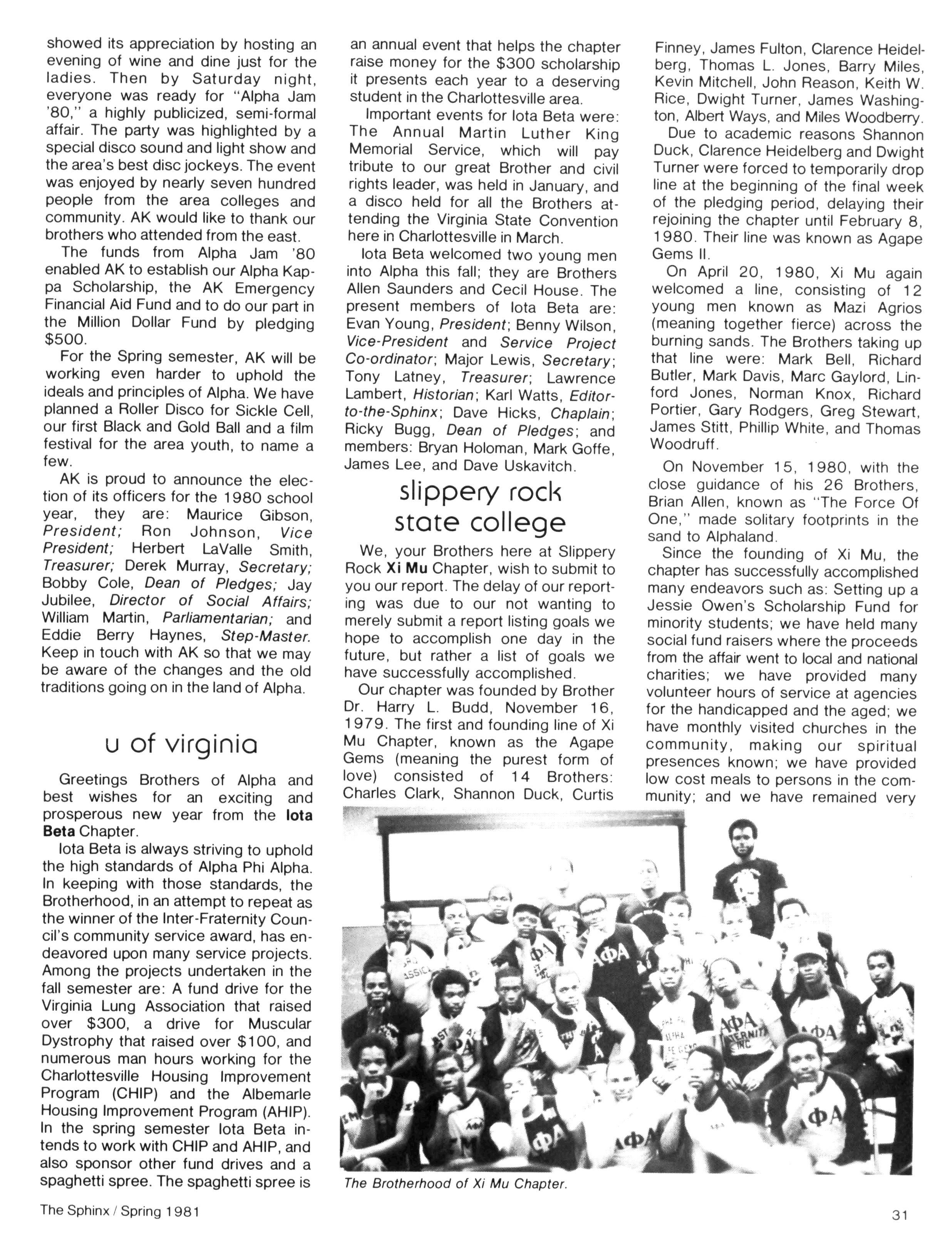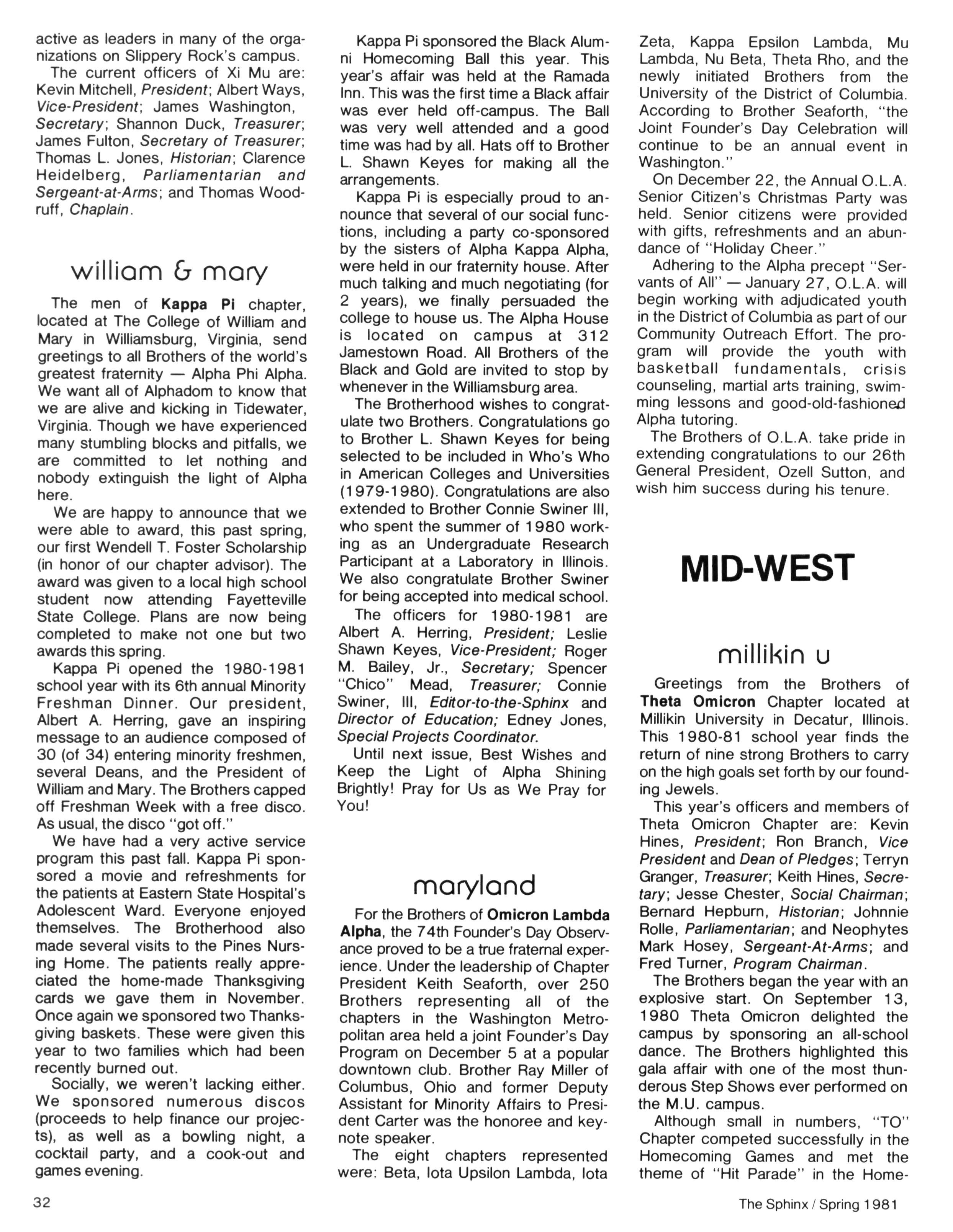• Communications (including the Sphinx and increased national mailings) in an effort to inform and involve the Brotherhood in all Fraternity affairs;