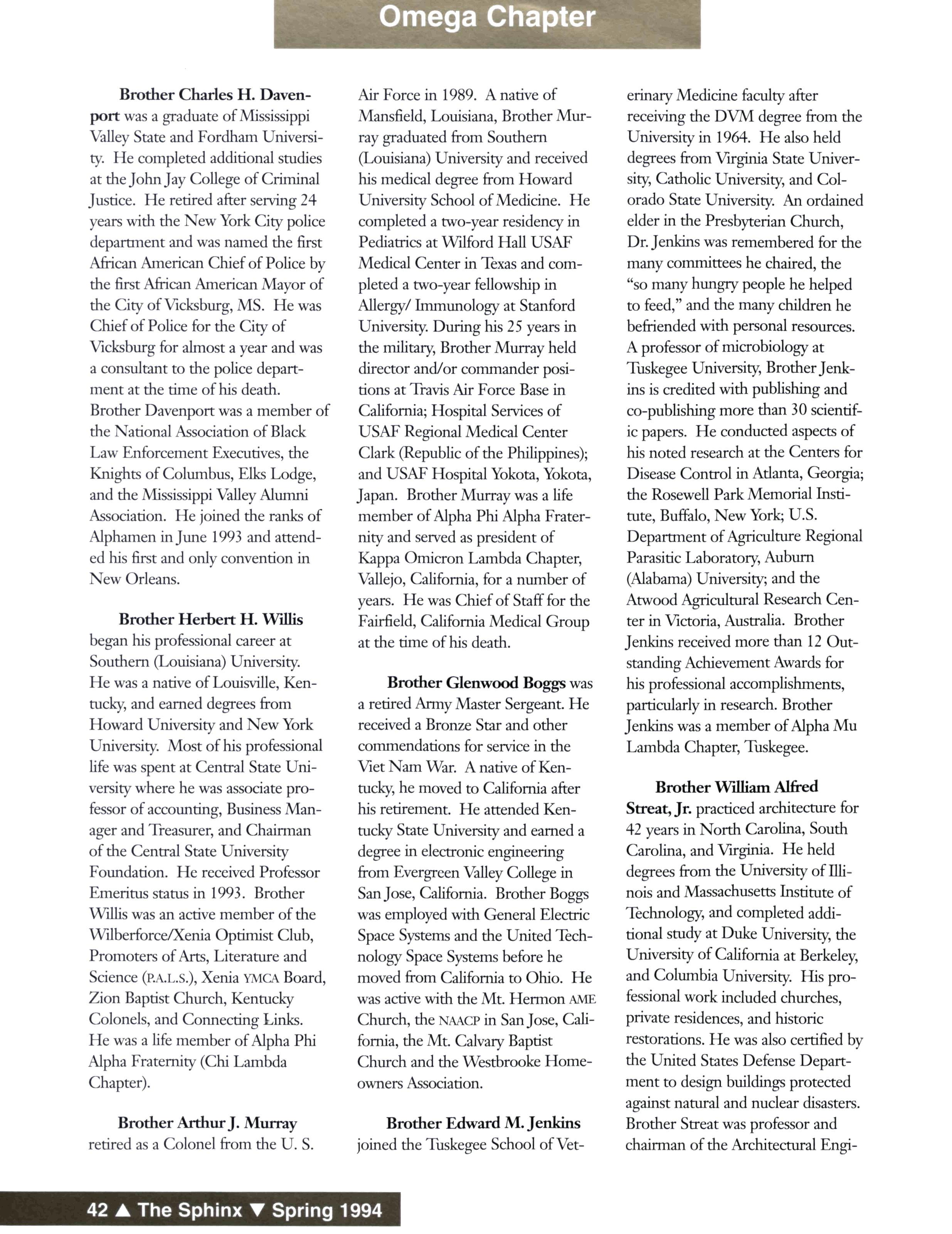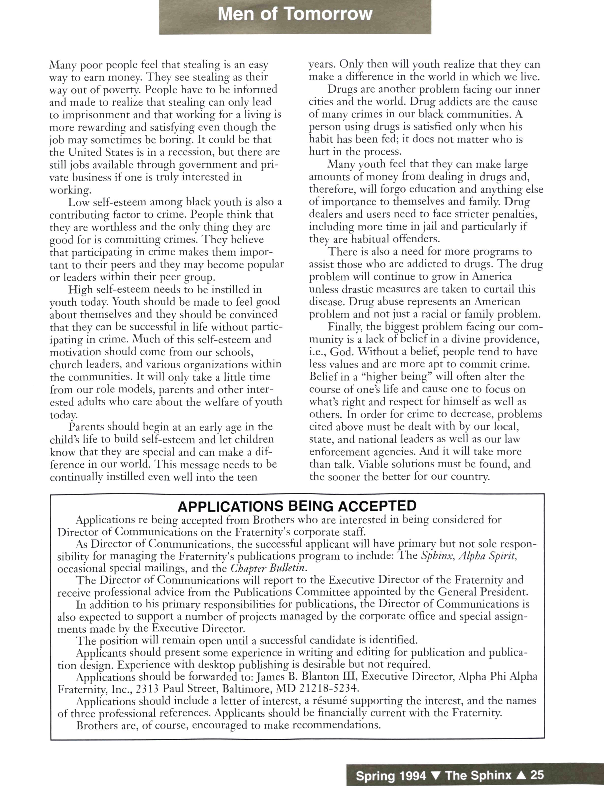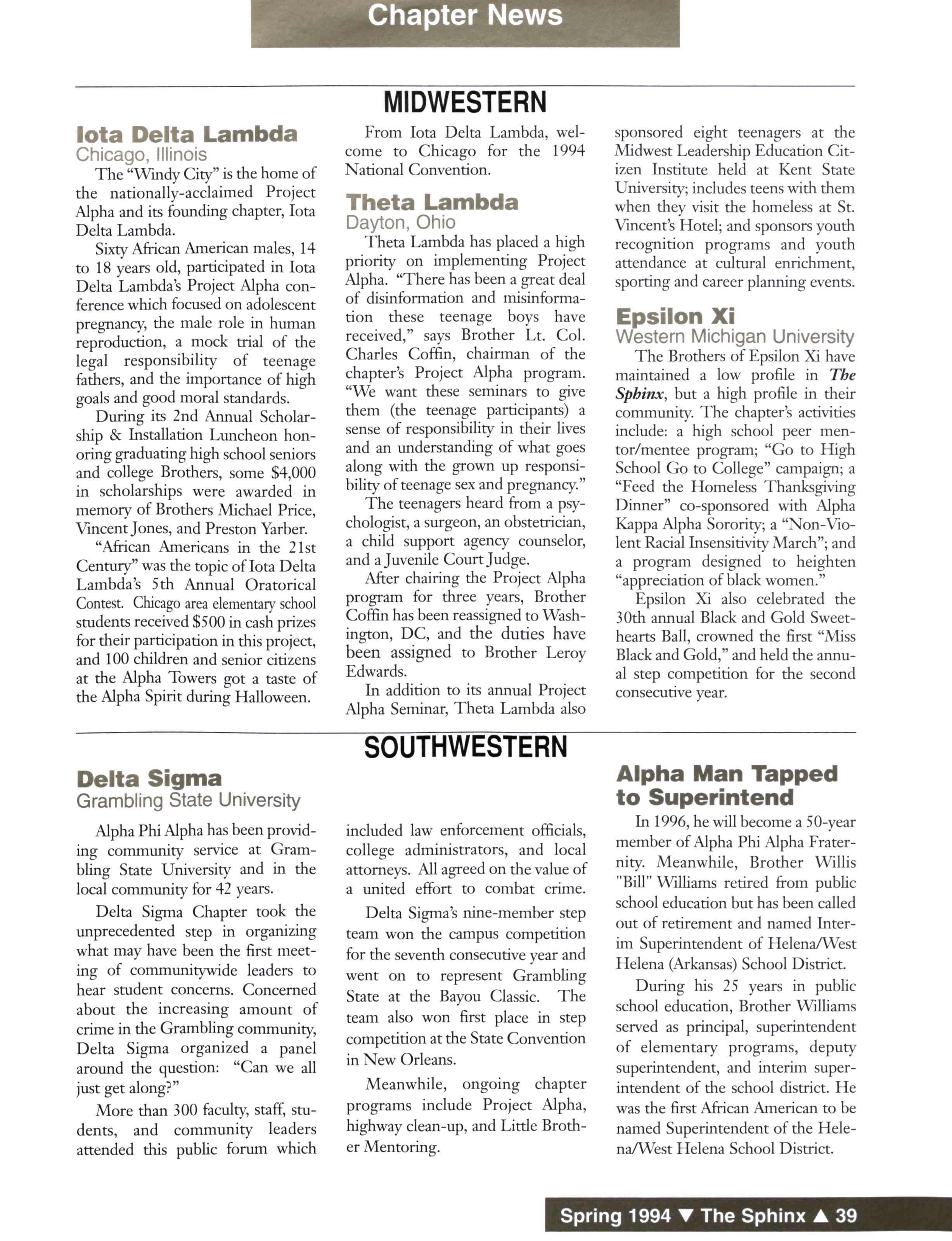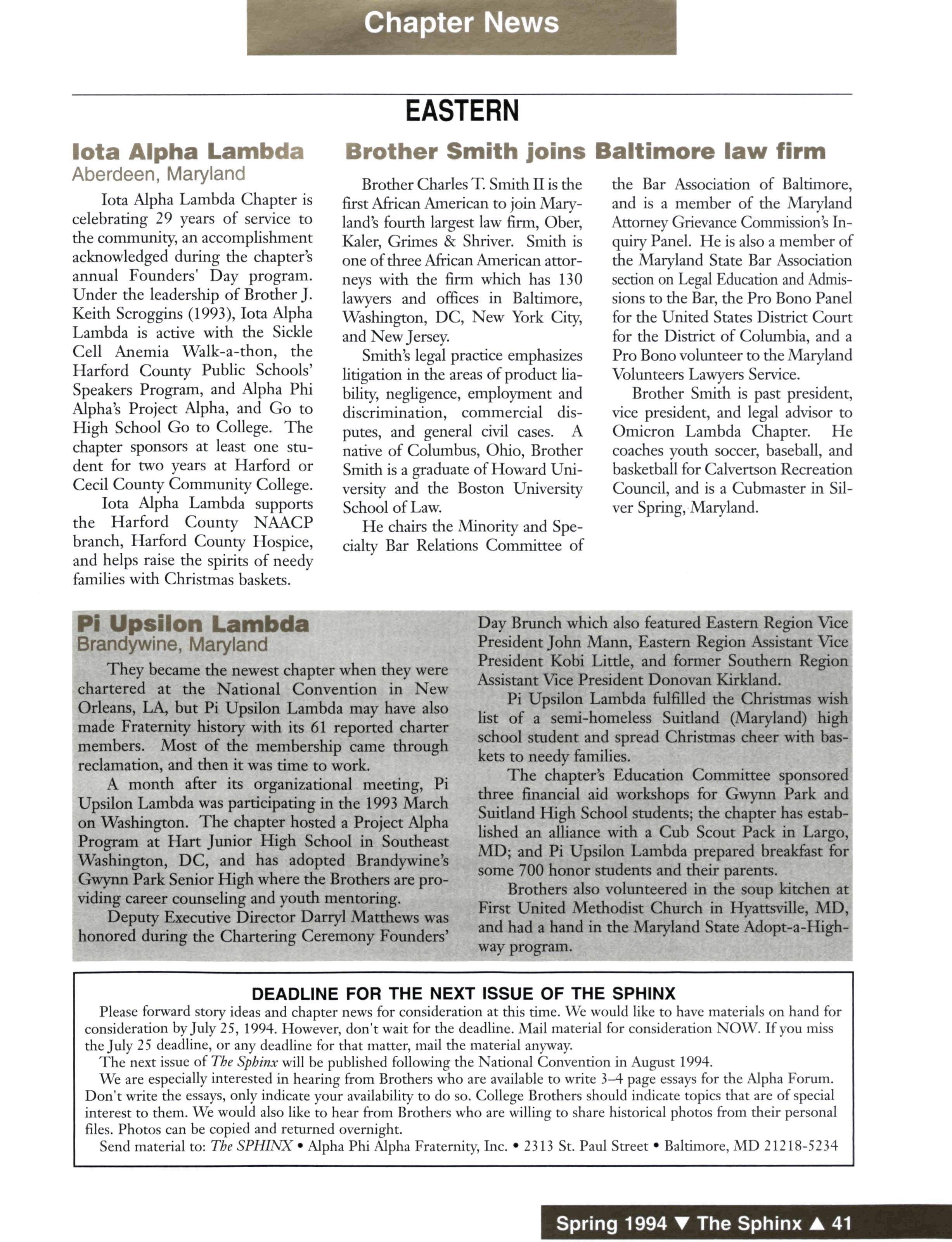 The Sphinx (USPS 510-440) is published quarterly for $10 a year by Alpha Phi Alpha Fraternity, Inc., 2313 St Paul Street, Baltimore, MD 21218-5234 Second-class postage paid at Baltimore, MD and additional mailing offices Postmaster: Send address changes to The Sphinx, 2313 St Paul Street, Baltimore, MD 21213
