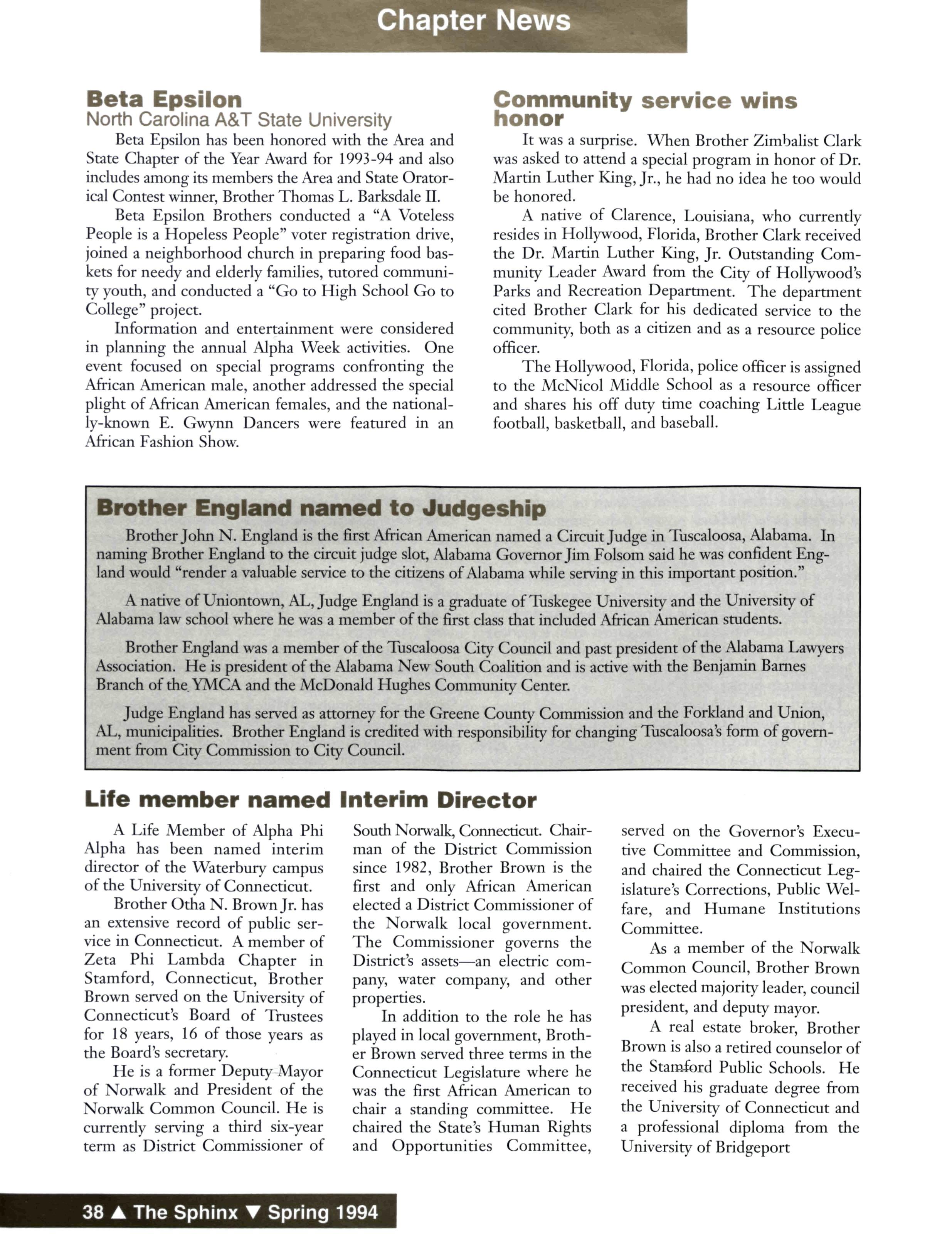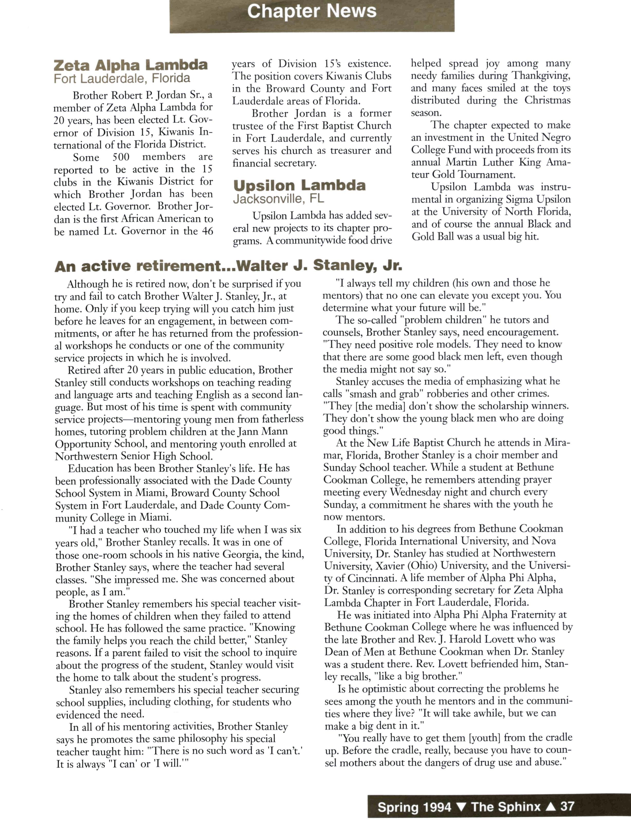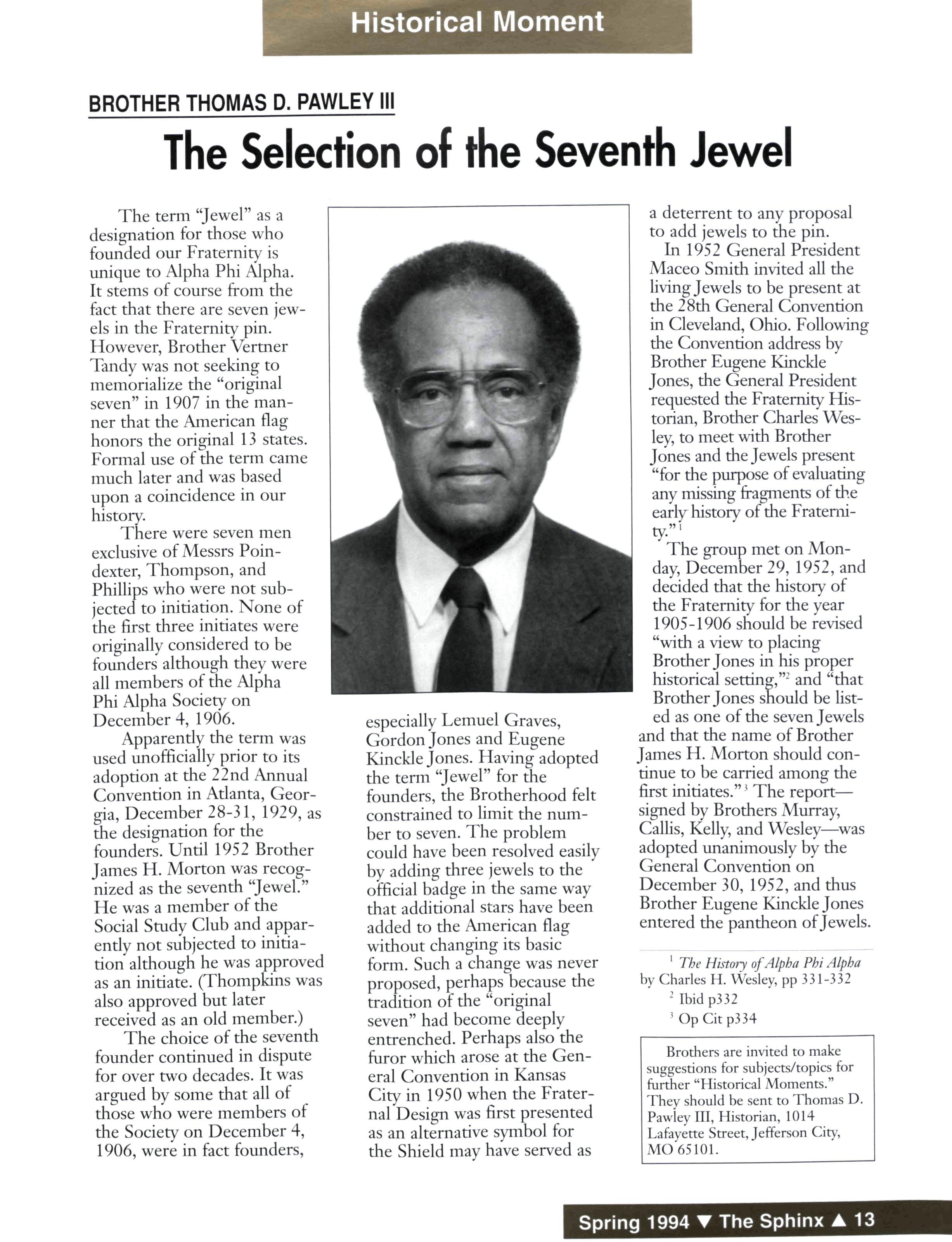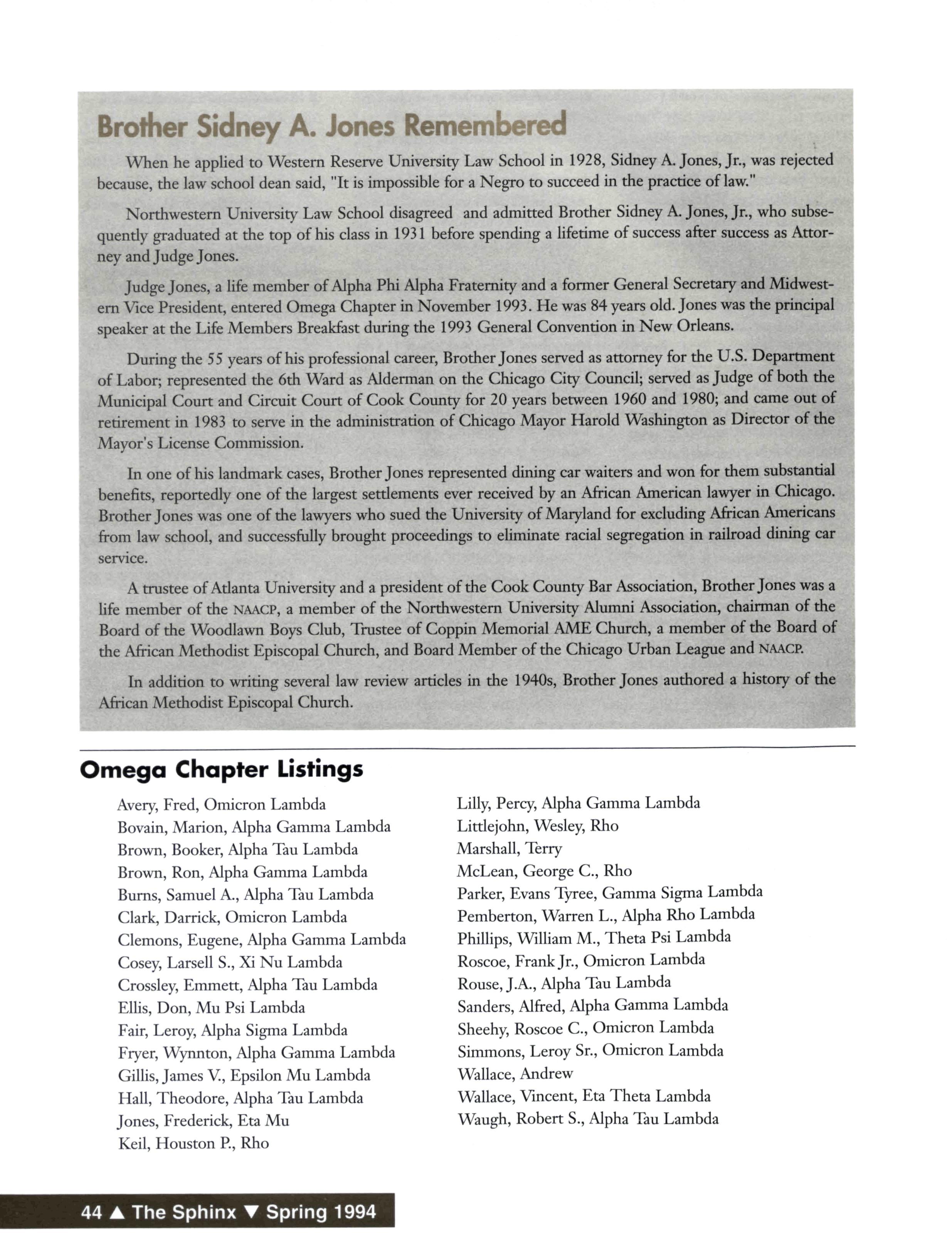 Judge Jones, a life member of Alpha Phi Alpha Fraternity and a former General Secretary and Midwestern Vice President, entered Omega Chapter in November 1993 He was 84 years old Jones was the principal speaker at the Life Members Breakfast during the 1993 General Convention in New Orleans