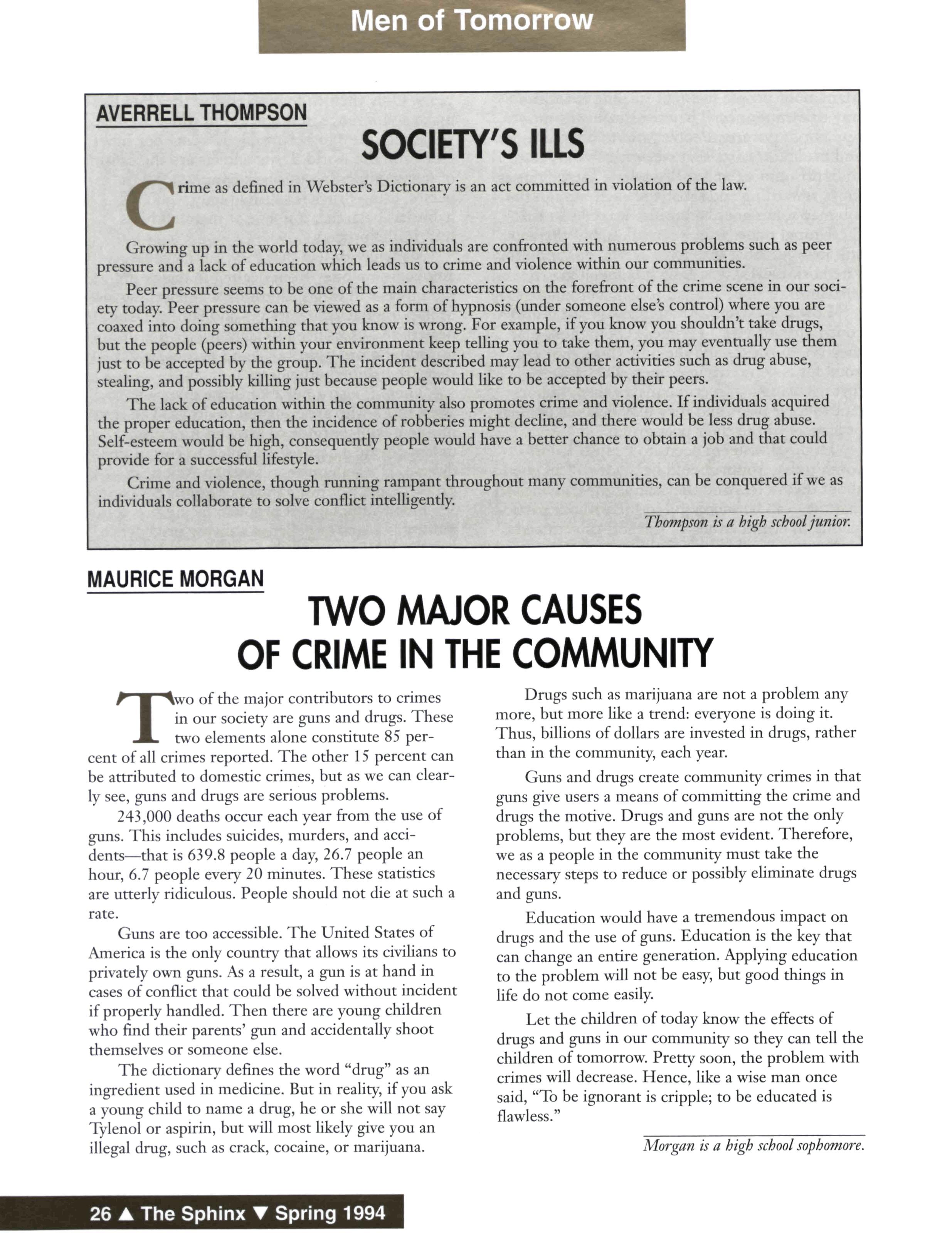 Marian Wright Edelman, president of the Children's Defense Fund, reminds us that "we lost more black men to guns in our cities in one year than we lost to all the lynchings after the Civil War." One might quarrel with the accuracy of the numbers, but the analogy is appropriate. The killers to which Dr. Edelman refers are urban terrorists by any definition— nothing more or nothing less. They have perpetrated lethal destruction in our communities and upon our people. They rain bullets, they distribute drugs, and they generally create terror The sad fact is that we make excuses for them and hide them from the law