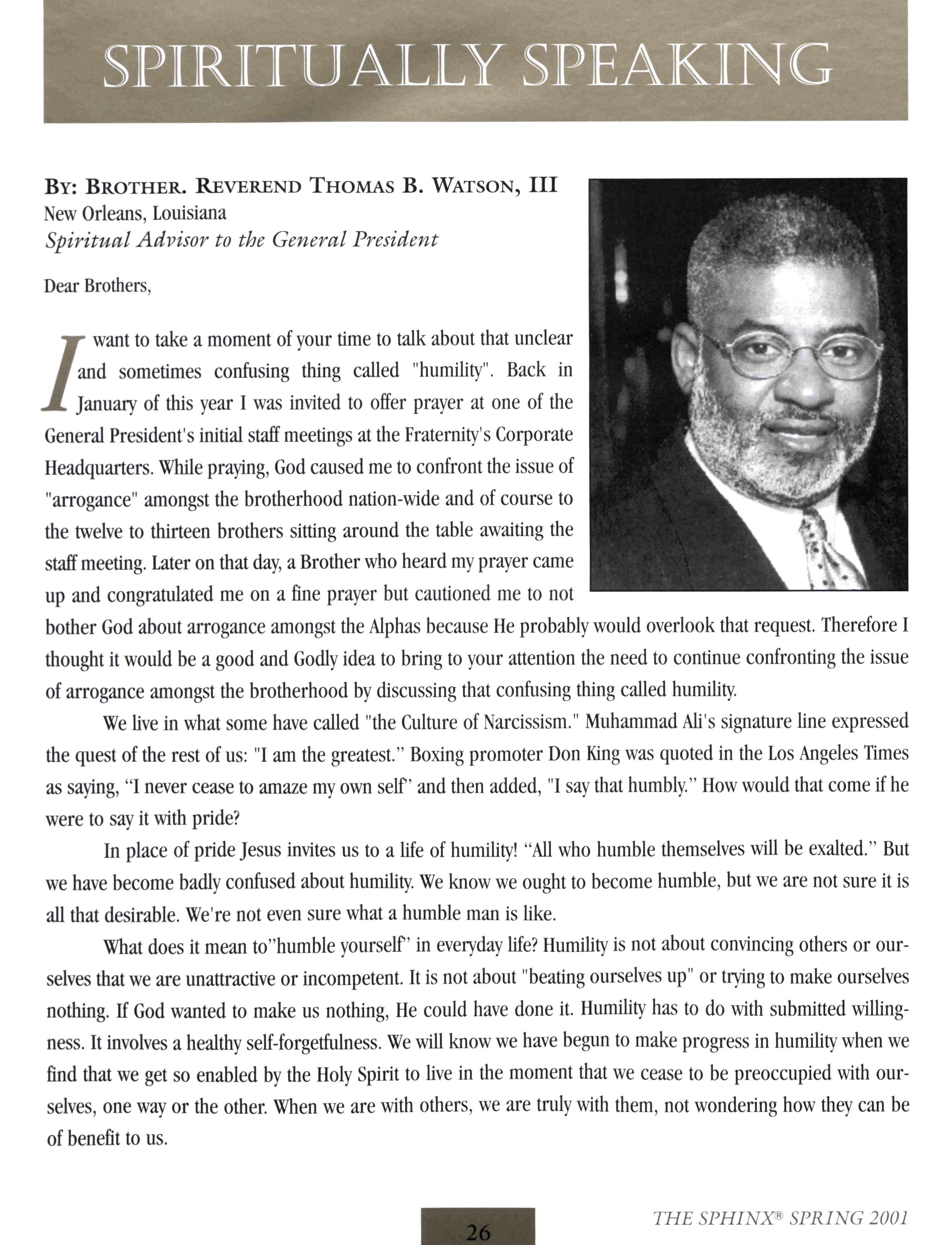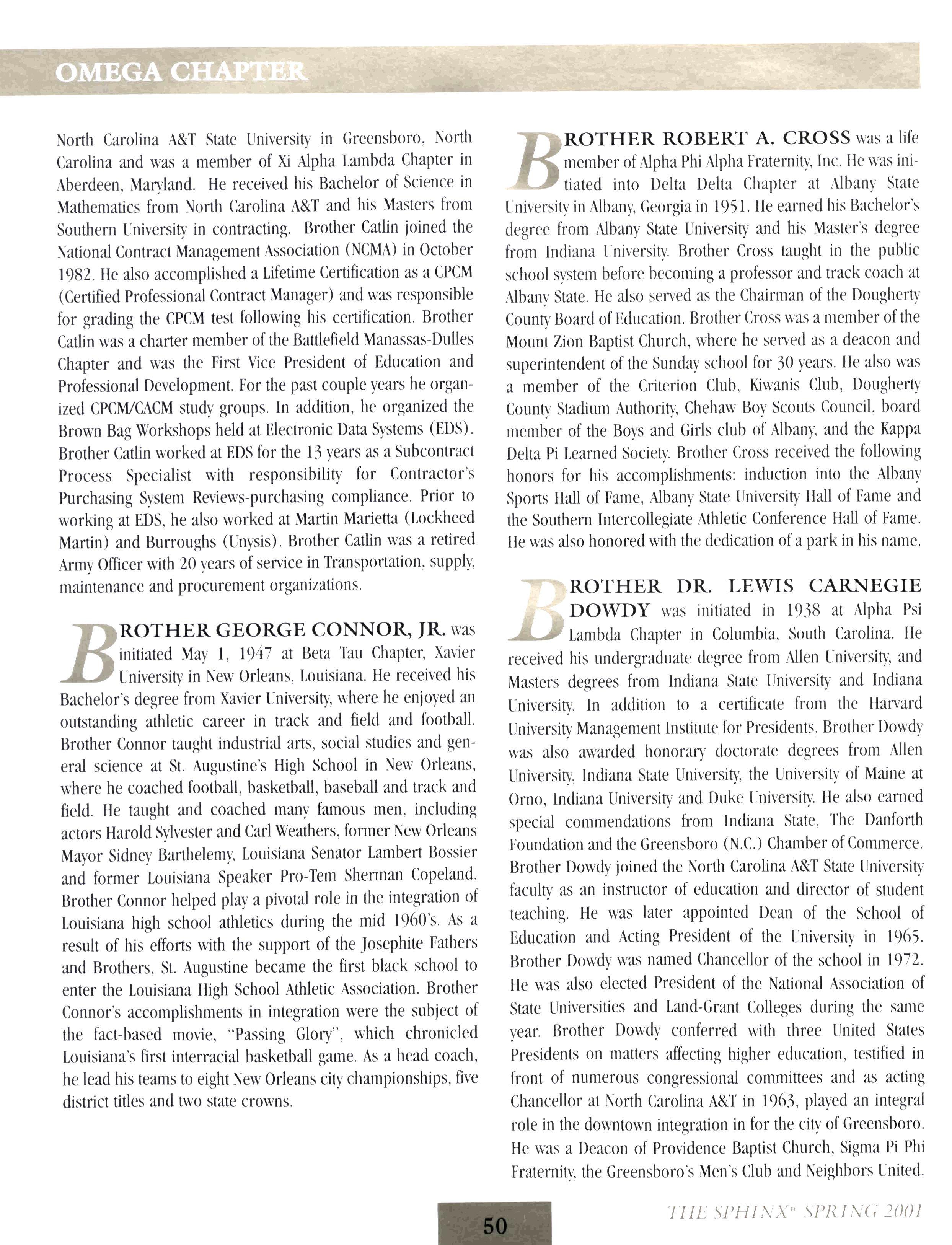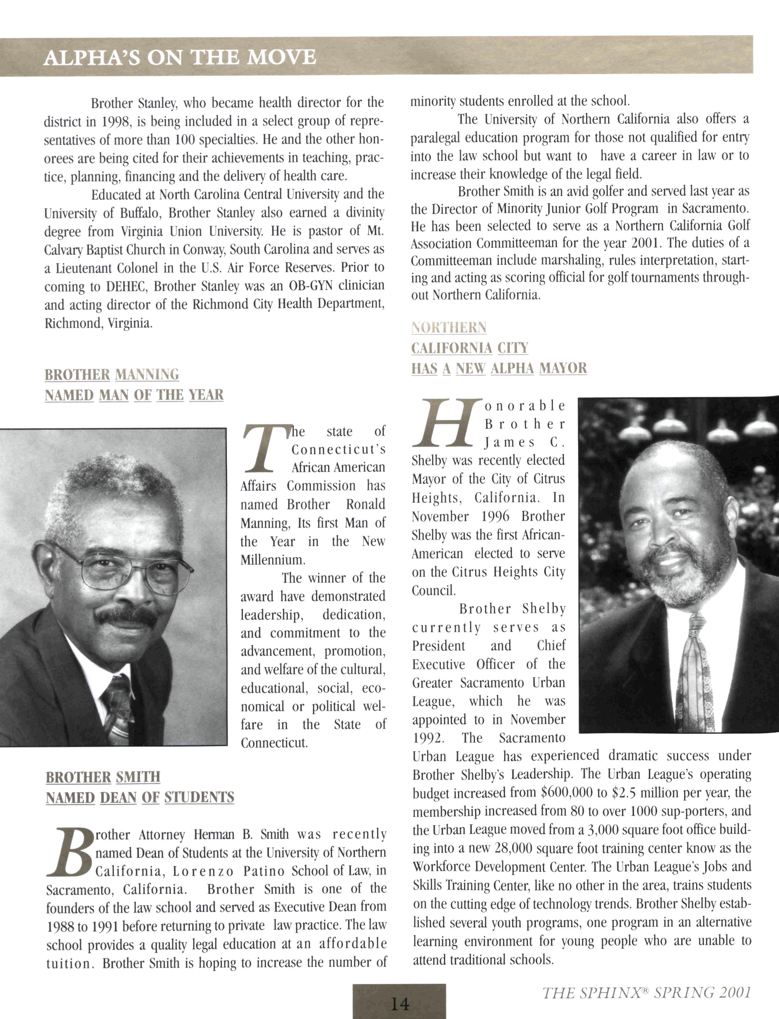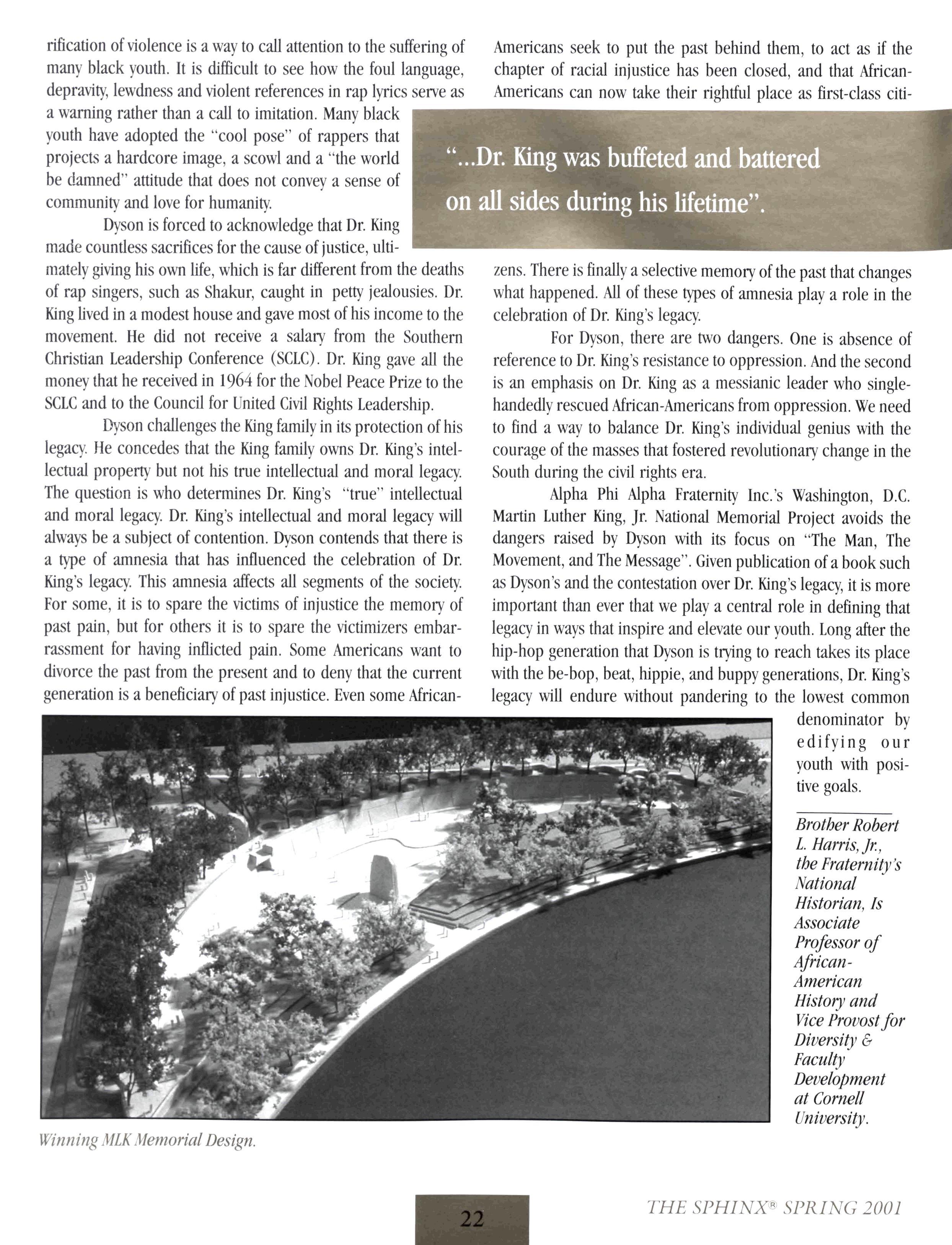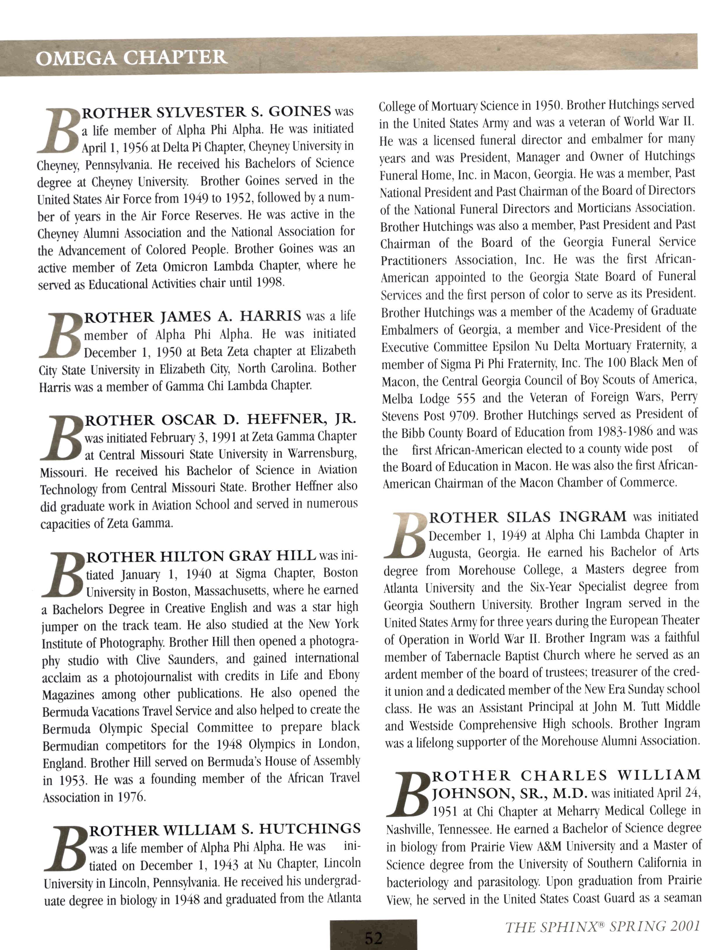 The SPHINX® is the official magazine of the Alpha Phi Alpha Fraternity, Inc ® Send all editorial mail and changes of address to Alpha Phi Alpha Fraternity, Inc.® manuscripts of art. Opinions expressed incolumns and articlesdo not necessarily reflect the views and policies of Alpha Phi Alpha Fraternity, Inc ® Use ofany person s name in fiction, semi-fiction, articles or humorous features is to be regarded as a coincidence andnot as the responsibility of The SPHINX®, and is never done knowingly Copyright 2000 Alpha PhiAlpha Fraternity, Inc.® ALLRIGHTS RESERVED Reproduction, or use without permission, of the editorial or pictorial content ofthe magazine in any manner is prohibited The SPHINX® has been published continuously since 1914 Organizing Editor, Brother Raymond W Cannon Organizing General President, Bromer Henry Lake Dickerson