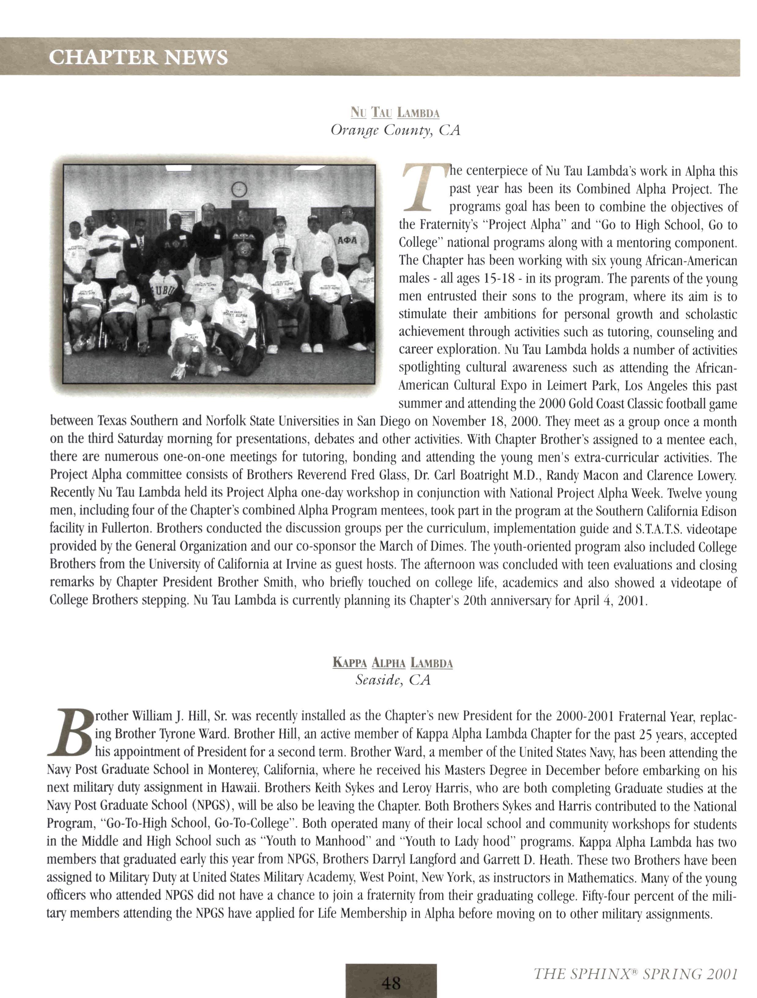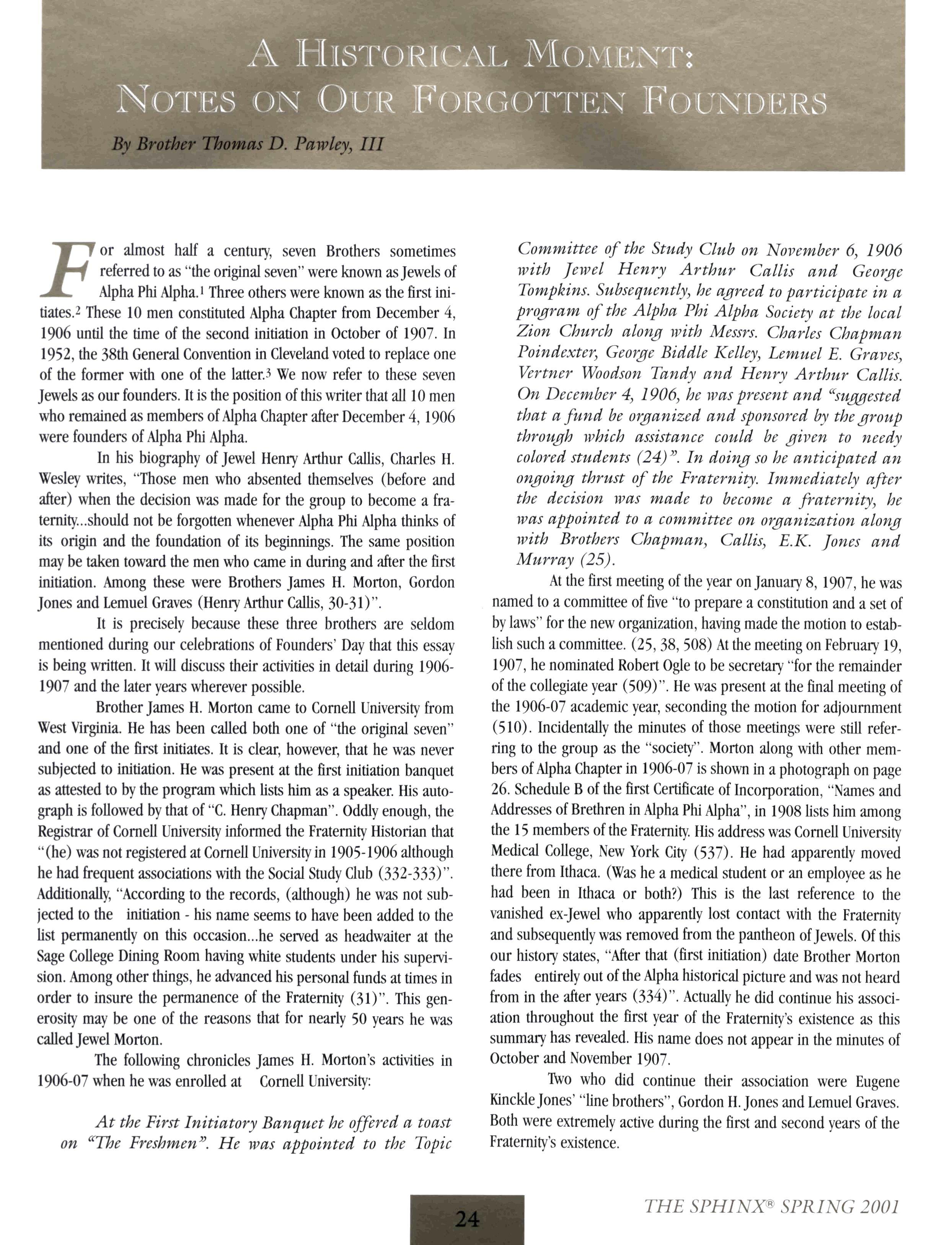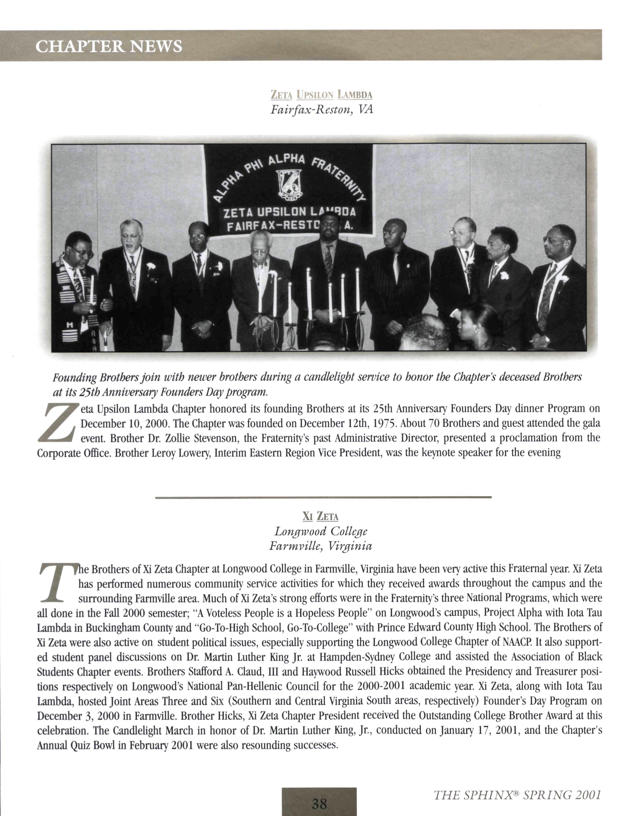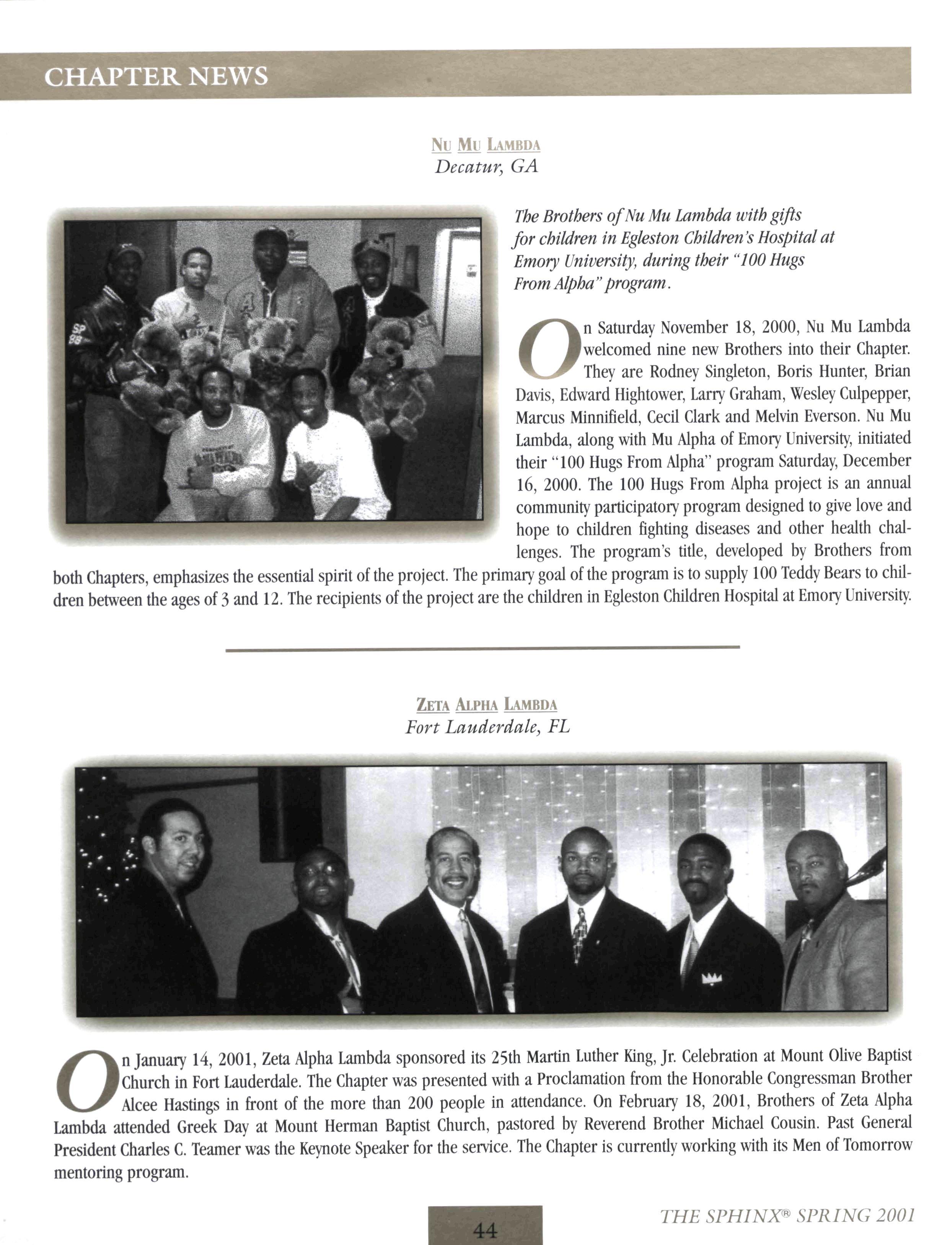 The SPHINX® is the official magazine of the Alpha Phi Alpha Fraternity, Inc ® Send all editorial mail and changes of address to Alpha Phi Alpha Fraternity, Inc.® manuscripts of art. Opinions expressed incolumns and articlesdo not necessarily reflect the views and policies of Alpha Phi Alpha Fraternity, Inc ® Use ofany person s name in fiction, semi-fiction, articles or humorous features is to be regarded as a coincidence andnot as the responsibility of The SPHINX®, and is never done knowingly Copyright 2000 Alpha PhiAlpha Fraternity, Inc.® ALLRIGHTS RESERVED Reproduction, or use without permission, of the editorial or pictorial content ofthe magazine in any manner is prohibited The SPHINX® has been published continuously since 1914 Organizing Editor, Brother Raymond W Cannon Organizing General President, Bromer Henry Lake Dickerson