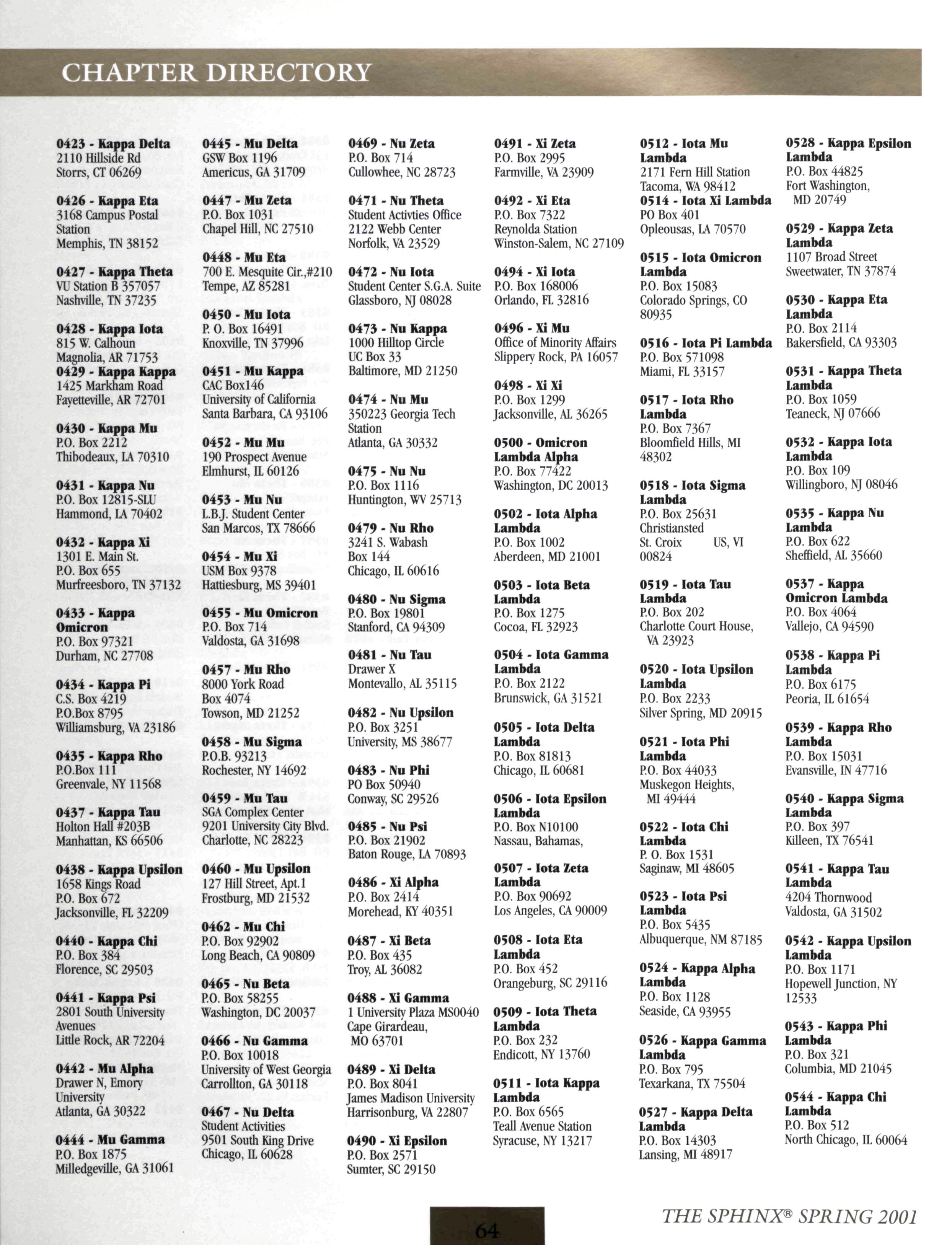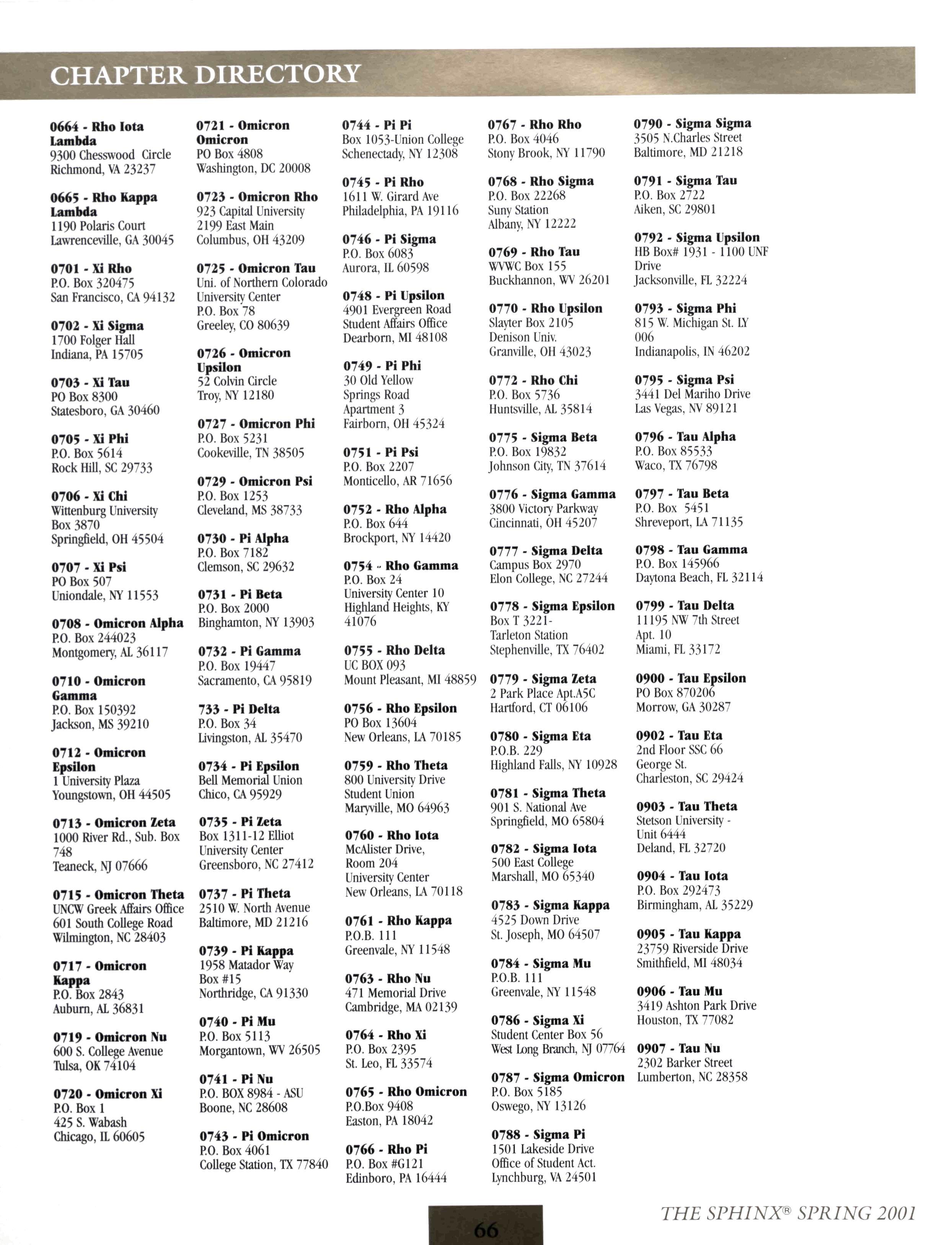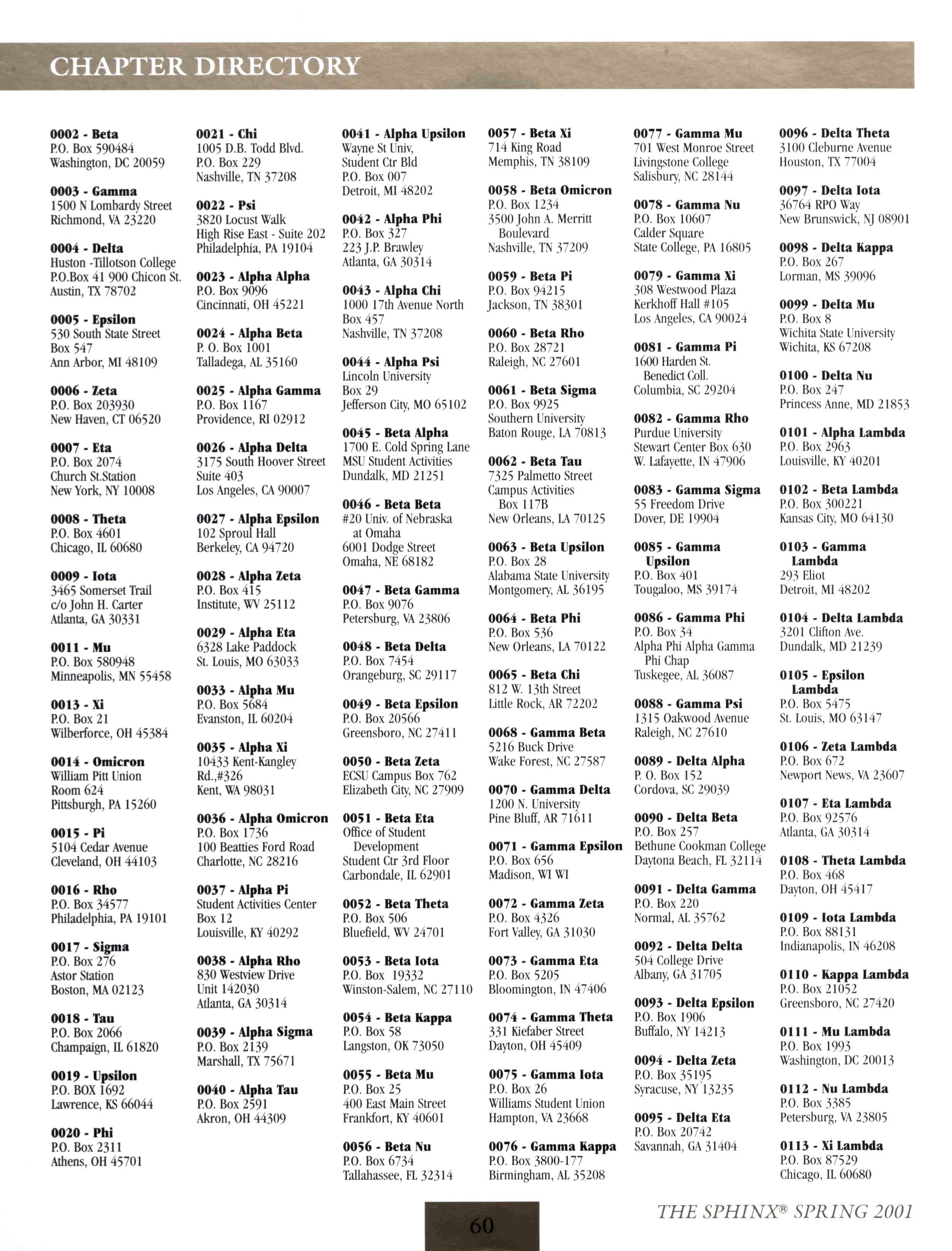 The SPHINX | Spring 2001 | Volume 86 | Number 1 200108601