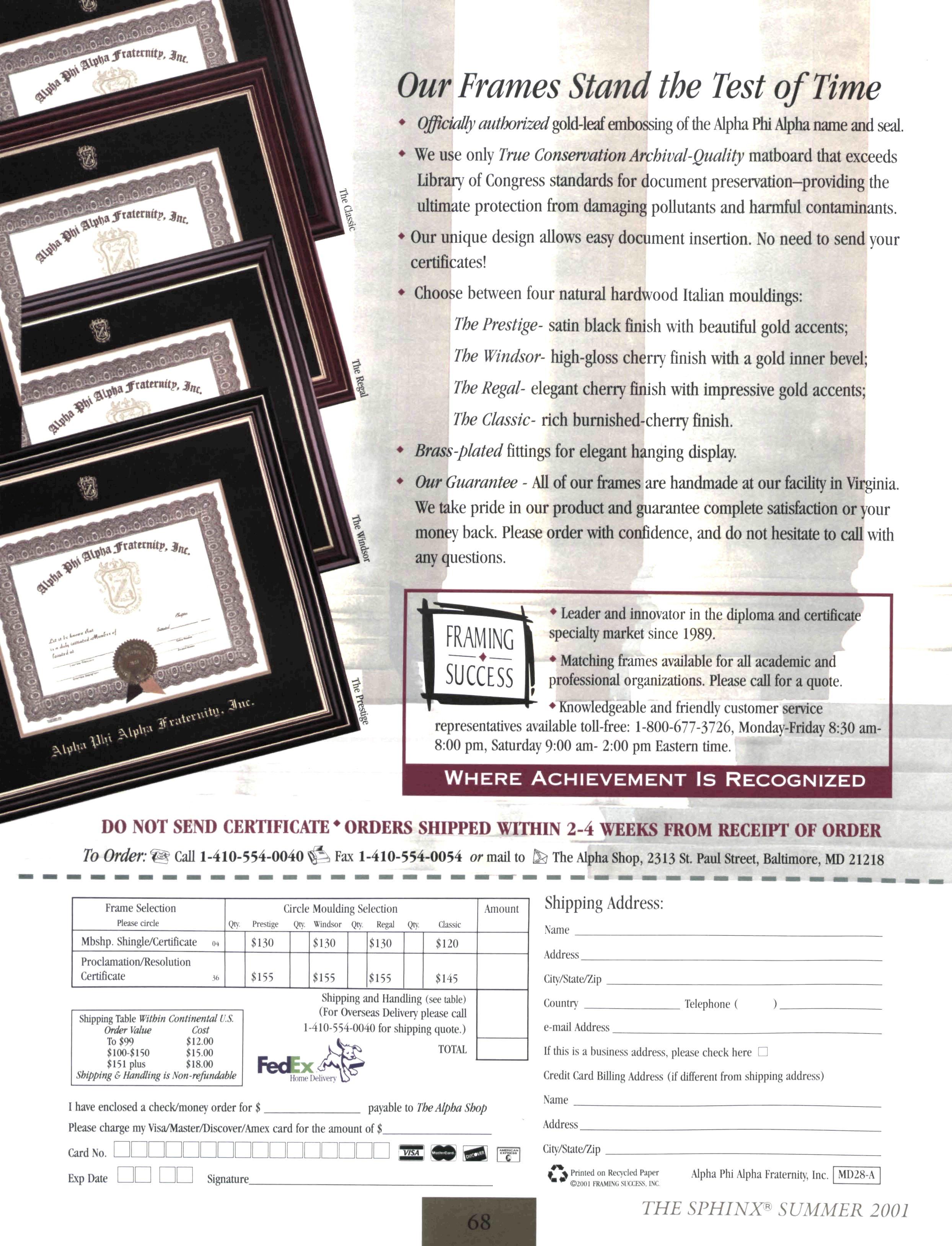 Orders should be mailed or faxed to ALPHA PHI ALPHA Fraternity, Inc? at the following address and number: