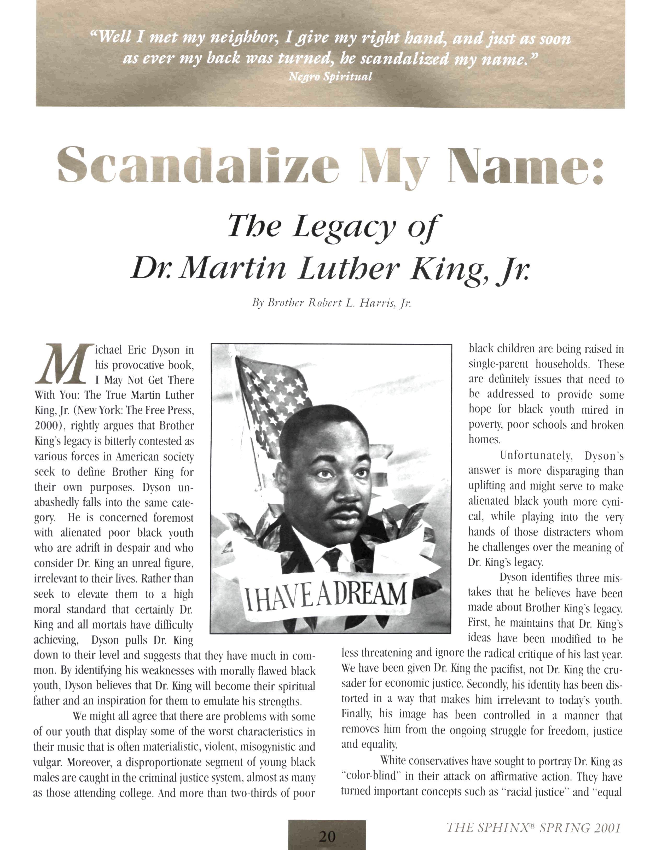 Jn his poignant yet prophetic address to the Men of Alpha Phi Alpha, Brother Dr. Martin Luther King, Jr. so humbly implored our God to give us leaders: "This is a tense period through which we are passing, and there is a growing need all over this nation of ours for leaders to carry on. We need leaders who are not in love with money, but in love with justice. We need leaders who are not in love with publicity, but in love with humanity... God, give us leaders... *