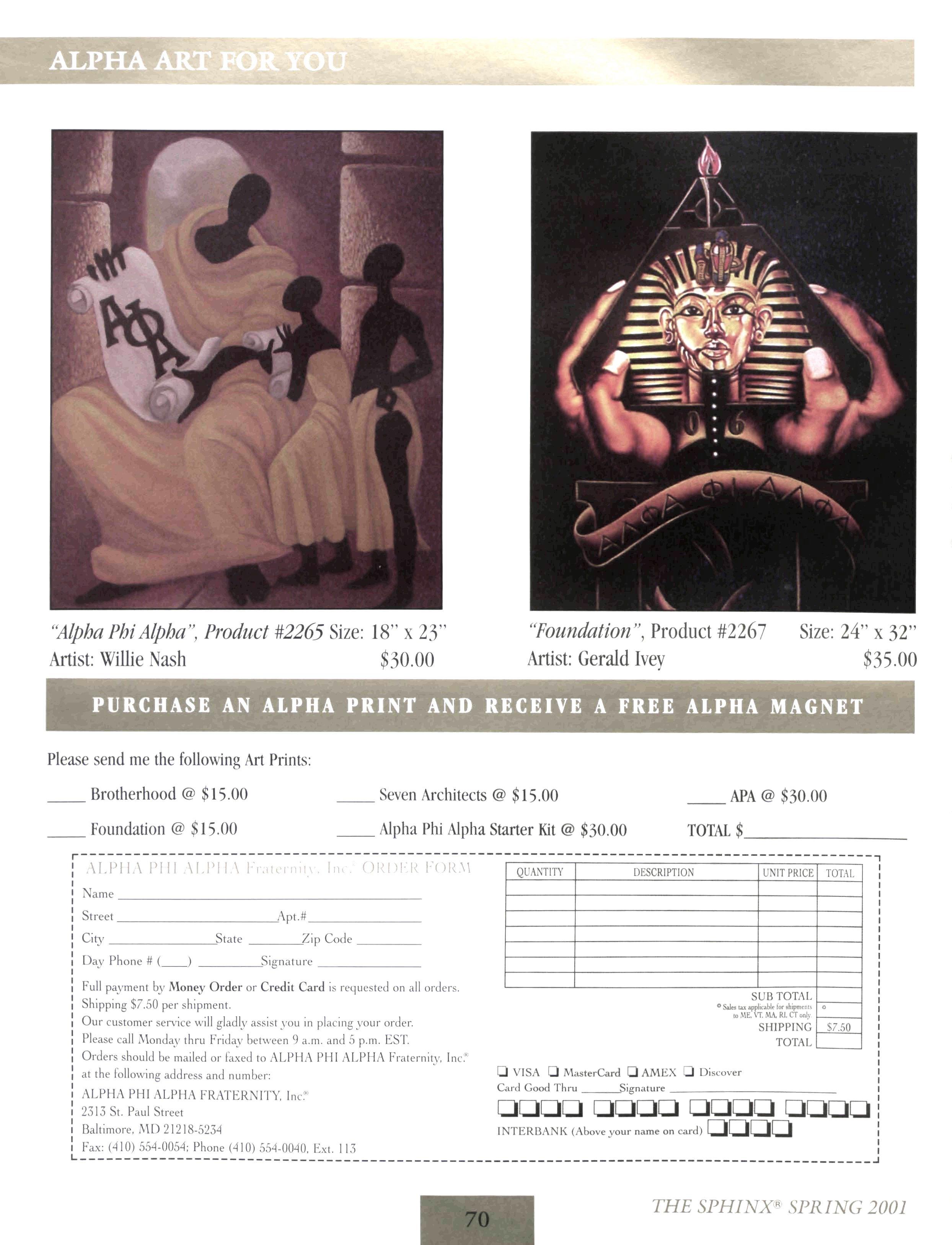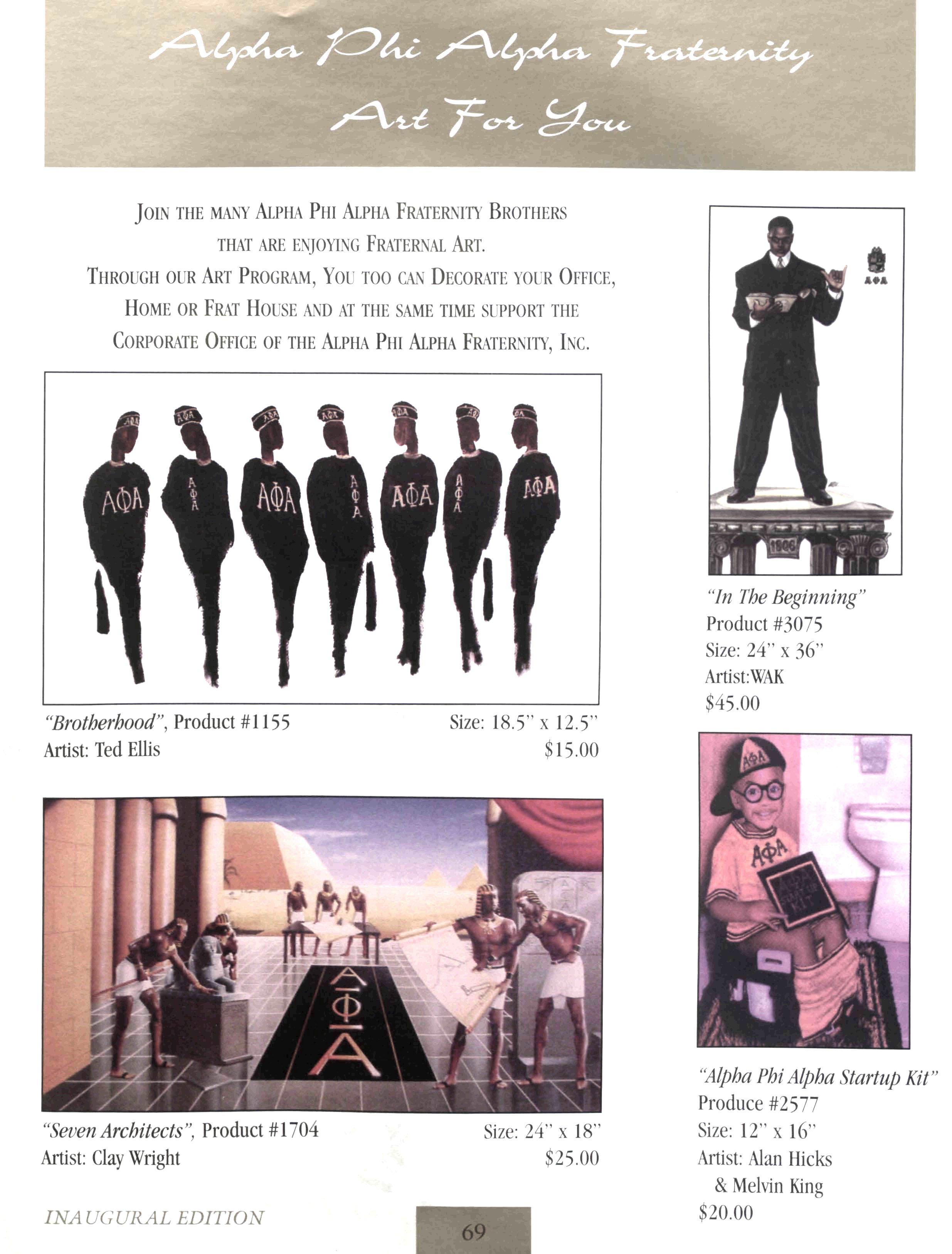 THROUGH OUR ART PROGRAM, YOU TOO CAN DECORATE YOUR OFFICE, HOME ORFRAT HOUSE AND AT THE SAME TIME SUPPORT THE CORPORATE OFFICE OF THE ALPHA PHIALPHA FRATERNITY, INC.