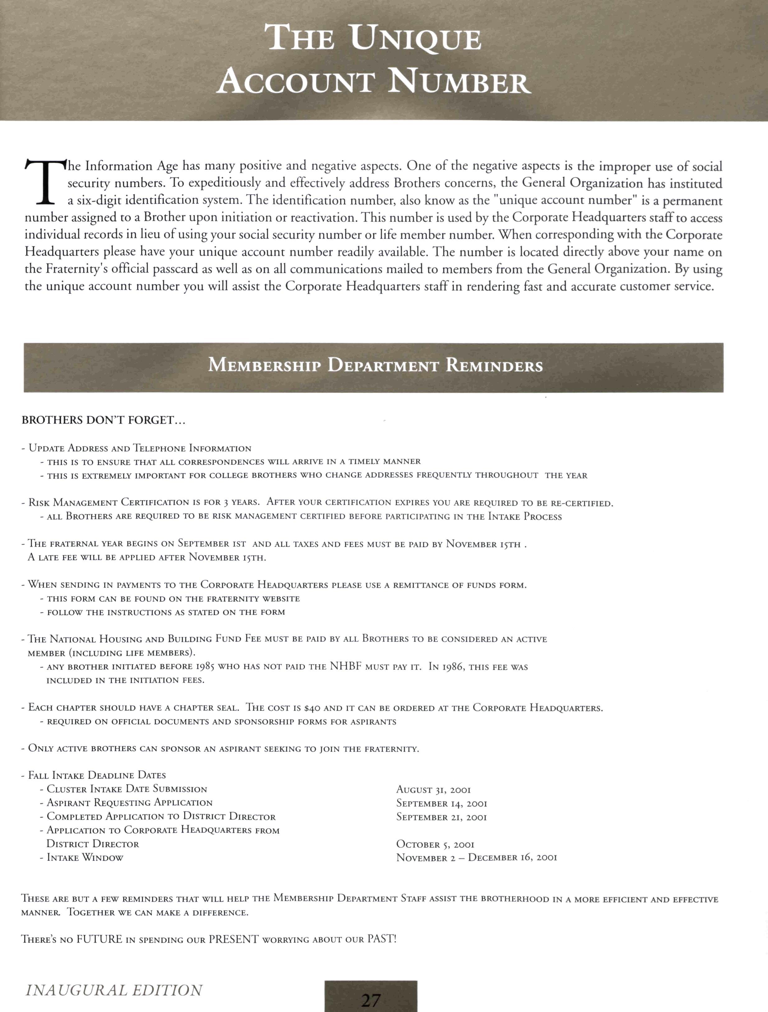 Contrary topopular belief, Iampleased to report toyouthat "all is well"atthe Fraternity's Corporate Office. Asthe designated leader tasked with the day-to-day operations of our headquarters, it is myprivilege to inform you of the following improvements: