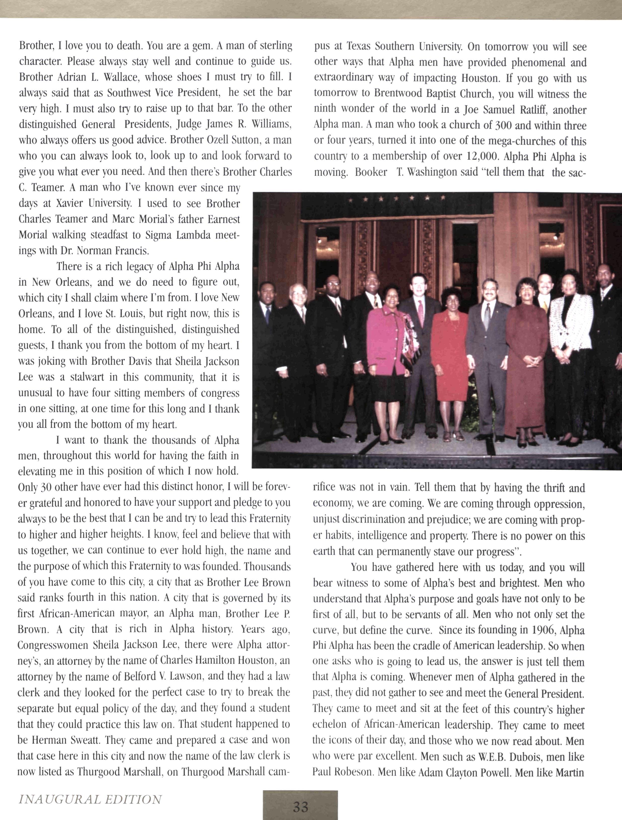 Brothers and guests present in Houston, Texas received a sneak preview of the Alpha Attitude during the inauguration ceremonies for the General President. A first classweekend of programs, activities and festivities showed all in attendance the true meaning of Southern Hospitality