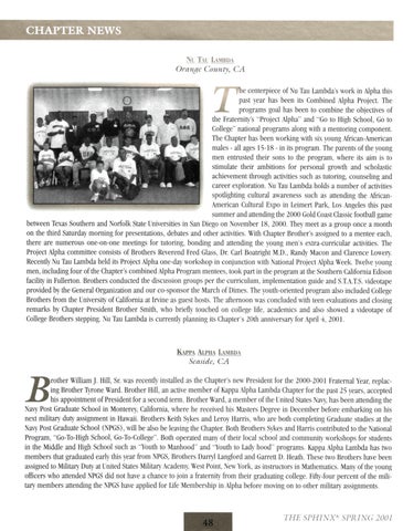 Tfte SPHINX® (USPS 510-440) is published quarterly for $40 a year by Alpha Phi Alpha Fraternity, Inc.® 2313 St Paul Street, Baltimore, MD21218-5234 Periodical postage paid at Baltimore, MD Postmaster: send address changes to The SPHINX®. 2313 St Paul Street, Baltimore, MD 21218-5234