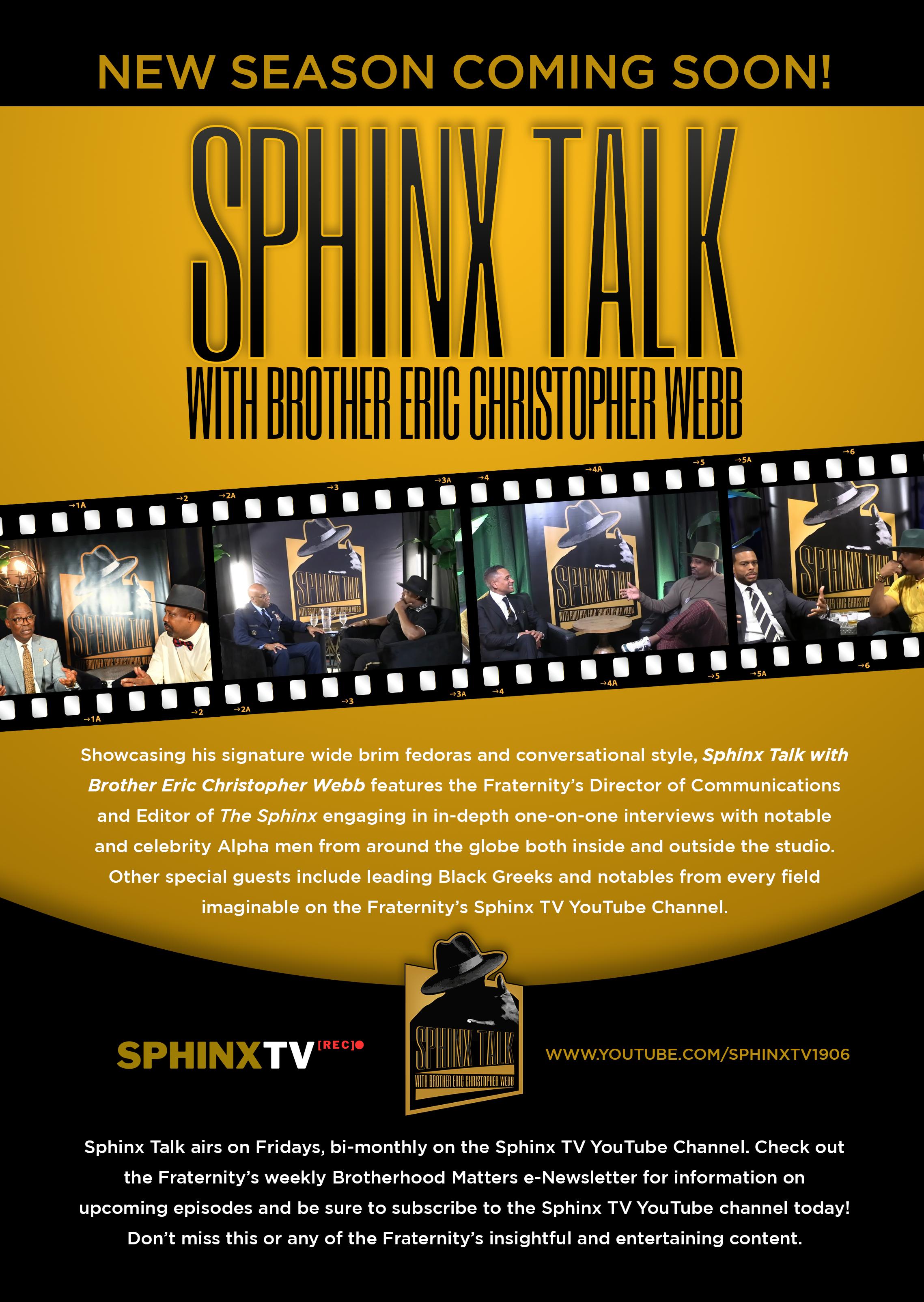Wow, Brother Webb. The current issue, Fall 2024 is one of the best issues of The Sphinx Magazine that I have received during my almost 34 years (1991 through Present, 2025) in the House. Your hard work, dedication and love for our Fraternity exudes throughout each page of our revered, The Sphinx Magazine.