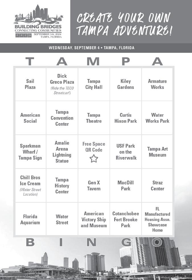 Our Tuesday workshops and sessions will get the week started with a full day of learning, including discussions on neighborhood and housing designs for all ages and abilities and how local governments can better serve their citizens. One session will be led by Florida State Sen. Bobby Powell, AICP, and will discuss how planners can become involved in politics. Receptions will include a “Create Your Own Tampa Adventure” BINGO card game designed to explore Tampa’s thriving downtown, and the underwater wonders of the Florida Aquarium.