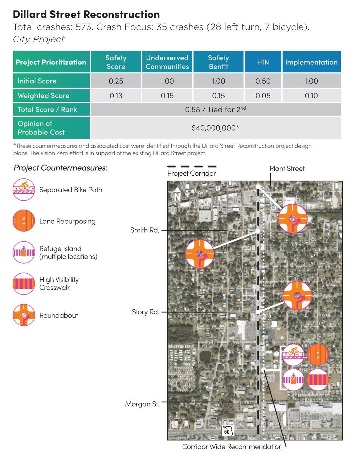 One such project identified in the Plan is Dillard Street Reconstruction. Project Countermeasure Recommendations include: