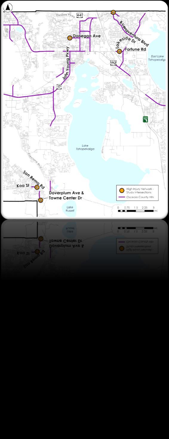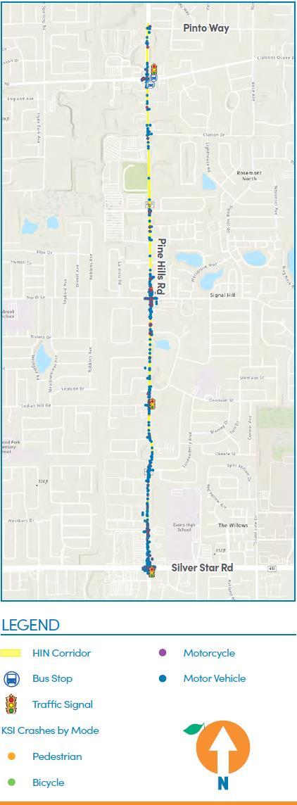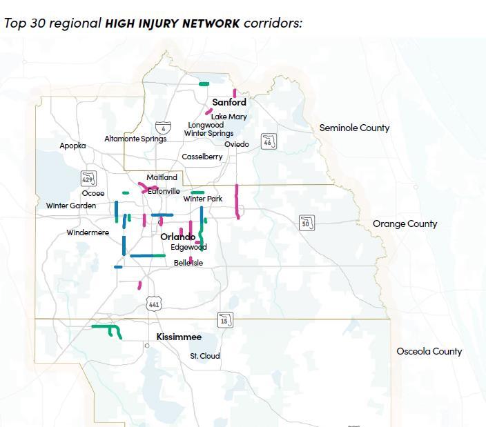 • Identifies corridors and intersections with the highest rates of fatal and serious injury crashes.