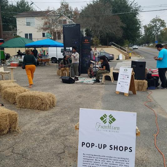 East Palatka has multiple opportunity areas to implement space activation. Space activation takes underutilized areas in a place; such as vacant lots, right of ways, trails, parks etc. to enhance them with temporary to permanent installations that create a sense of community and commerce. This can range from as temporary as sidewalk art and pop-up markets to something more permanent like community signage and shade structures along trails.