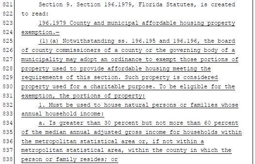 New option for local governments to provide tax exemptions for projects with at least 50 units, and at least 20% are affordable, to households at or below 60% AMI