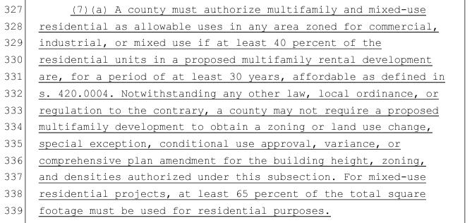 For example, the zoning would allow commercial, industrial, or mixed uses, but the Comprehensive Plan is still zoned agriculture and was never updated. The zoning is nonconforming. Is affordable housing mandated?