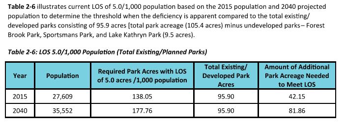 • Maintain current LOS standard of 5.0 acres / 1,000 population