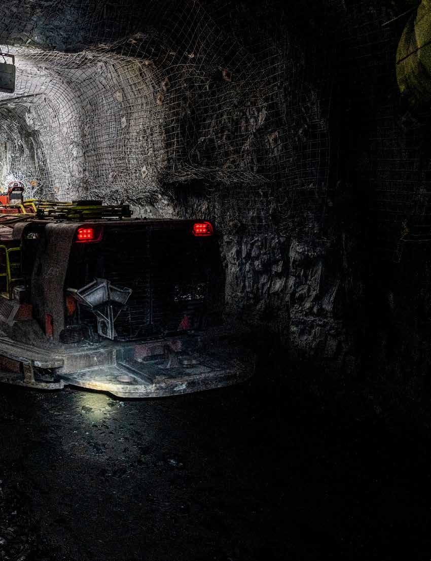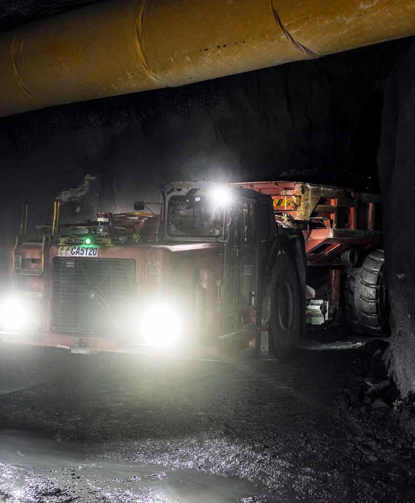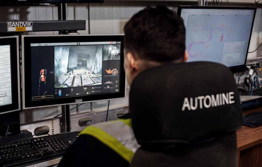 THE BENEFITS THE mine has seen extend beyond increased daily tonnage. “By using AutoMine to muck development ramps or to transport the ore out of the site, you remove miners from these potentially more hazardous areas,” he says.