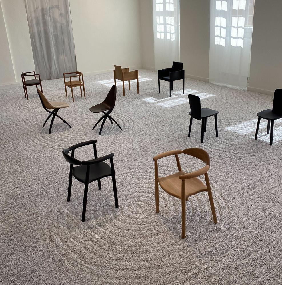 A kiállítóteret a nagyra becsült Ronan & Erwan Bouroullec és GamFratesi által tervezett székek és asztalok lenyűgöző kollekciója díszítette, majd ezeket a funkcionális termékeket lenyűgöző faszobrokká alakították át. Az installáció célja egy olyan magával ragadó élmény megteremtése volt, amely a nyugalom, a meditáció és a harmónia érzetét kelti. További érdekességeket megosztva; a résztvevők betekintést nyerhettek a tervezési folyamatba és a kivételes kollekció mögötti inspirációkba, ill. a bemutatót kellemes tea- és édességkínálat kísérte. Ezek az elemek segítették a nyugodt légkör megteremtését. A teremről készült képek pedig magukért beszélnek, az elrendezés, az egymást követő körkörös vonalak és a színvilág együttesen teremtik meg a „béke szigete” hangulatát.