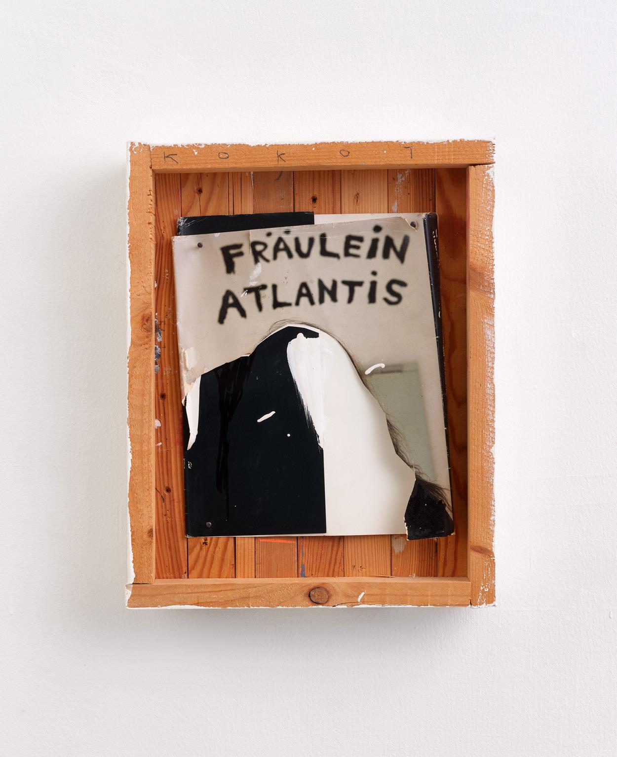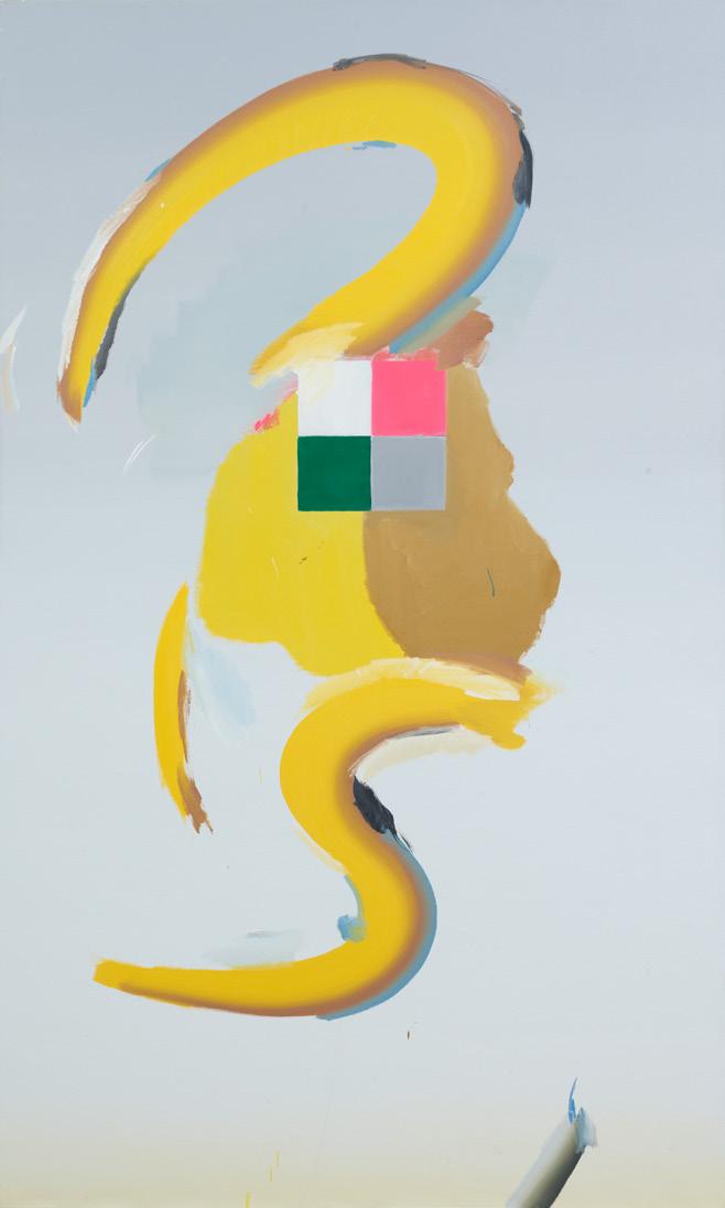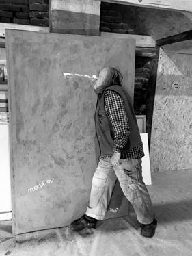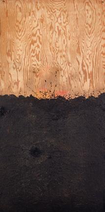 asambláž, kombinovaná technika, plátno, 170 × 155 cm sign. na rubu JIŘÍ DAVID „POMÍJIVÝ VZDECH“