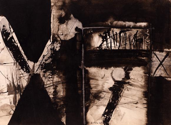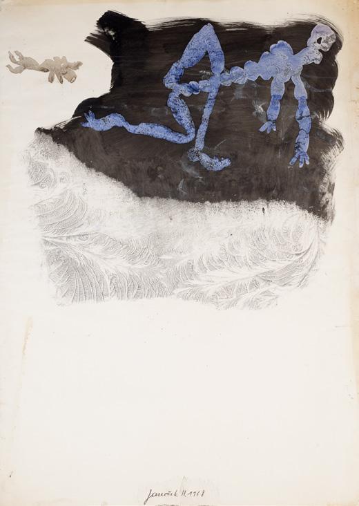 kombinovaná technika, papír, 45,5 × 32 cm značeno 17. 5. 67., na rubu razítko autora