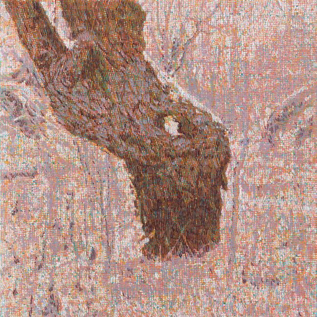 výšivka, akryl, plátno, 65 × 65 cm sign. na rubu autorskou značkou 2021