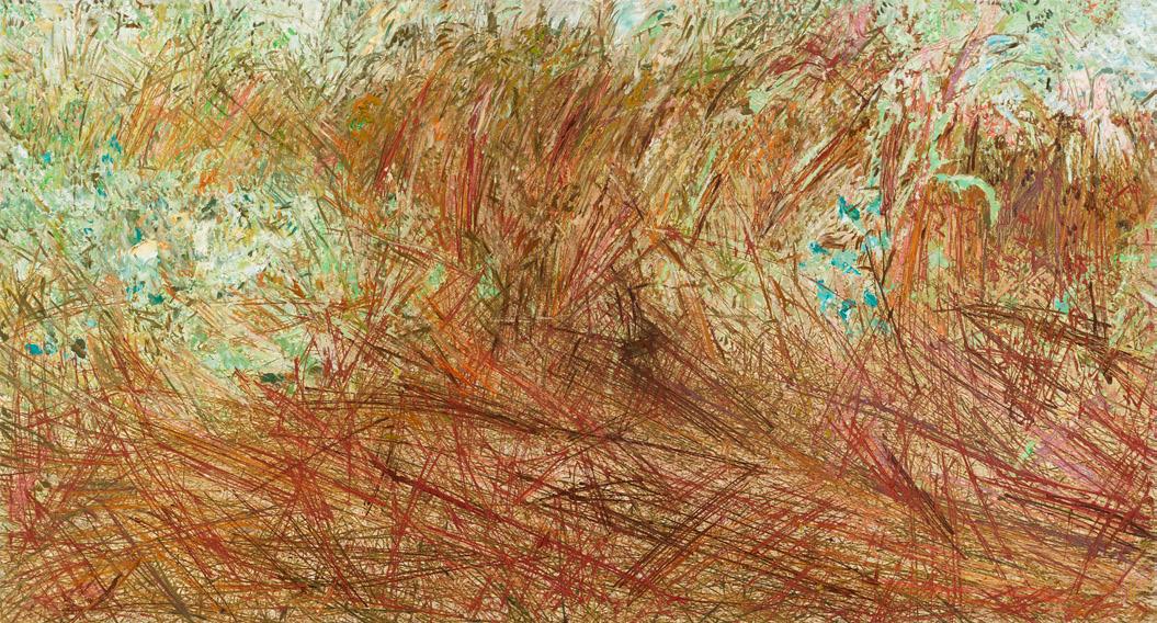 olej, plátno, 70 × 130 cm sign. JIŘÍ DAVID „V POLÍCH BEZ SETBY“ 2019